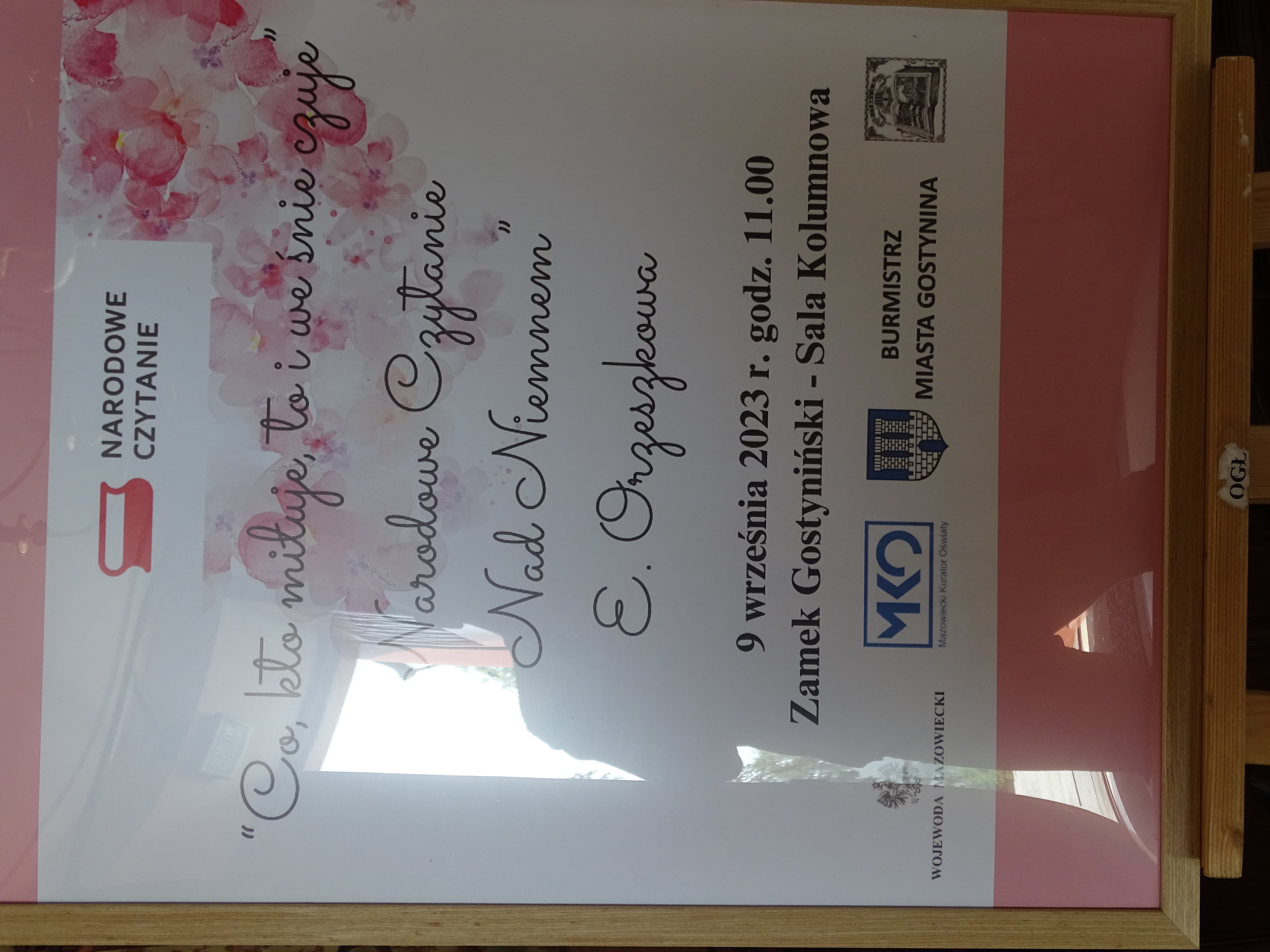 9 września br. Kierownik Delegatury Mazowieckiego Urzędu Wojewódzkiego w Płocku wzięła udział w 12. Narodowym Czytaniu. W tym roku, w Zamku Gostynińskim mieszkańcy oraz zaproszeni goście czytali powieść Elizy Orzeszkowej „Nad Niemnem”.