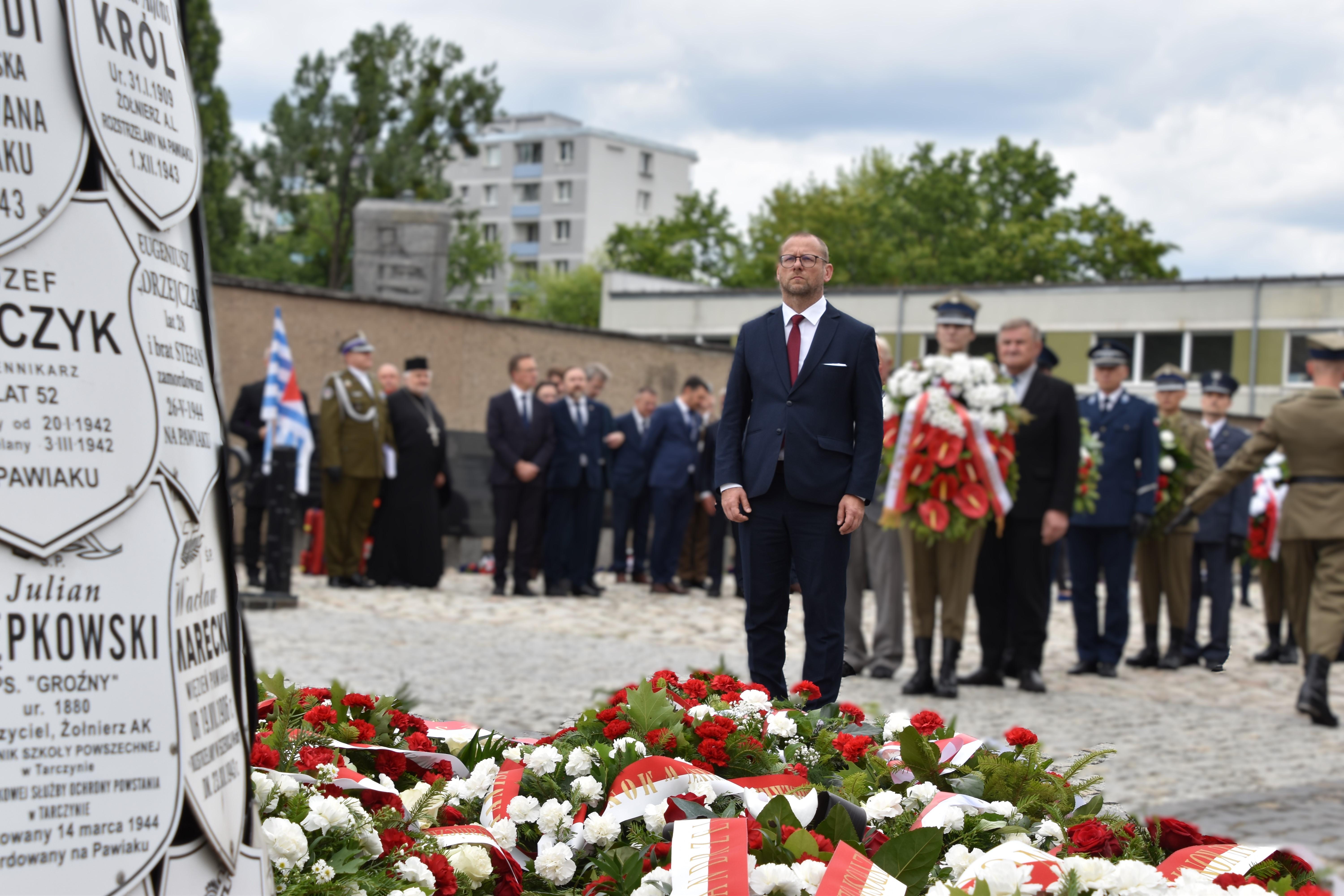 14 czerwca br. obchodzony jest Narodowy Dzień Pamięci Ofiar Niemieckich Nazistowskich Obozów Koncentracyjnych i Obozów Zagłady. Z tej okazji dzisiaj w Muzeum Więzienia Pawiaka Wicewojewoda Mazowiecki Robert Sitnik uczestniczył w obchodach tej rocznicy. W uroczystości wzięli udział również m.in.: Podsekretarz Stanu Ministerstwa Obrony Narodowej Stanisław Wziątek, Podsekretarz Ministerstwa Rodziny i Polityki Społecznej dr hab. Sebastian Gajewski i Szef Urzędu do Spraw Kombatantów i Osób Represjonowanych Lech Parell.