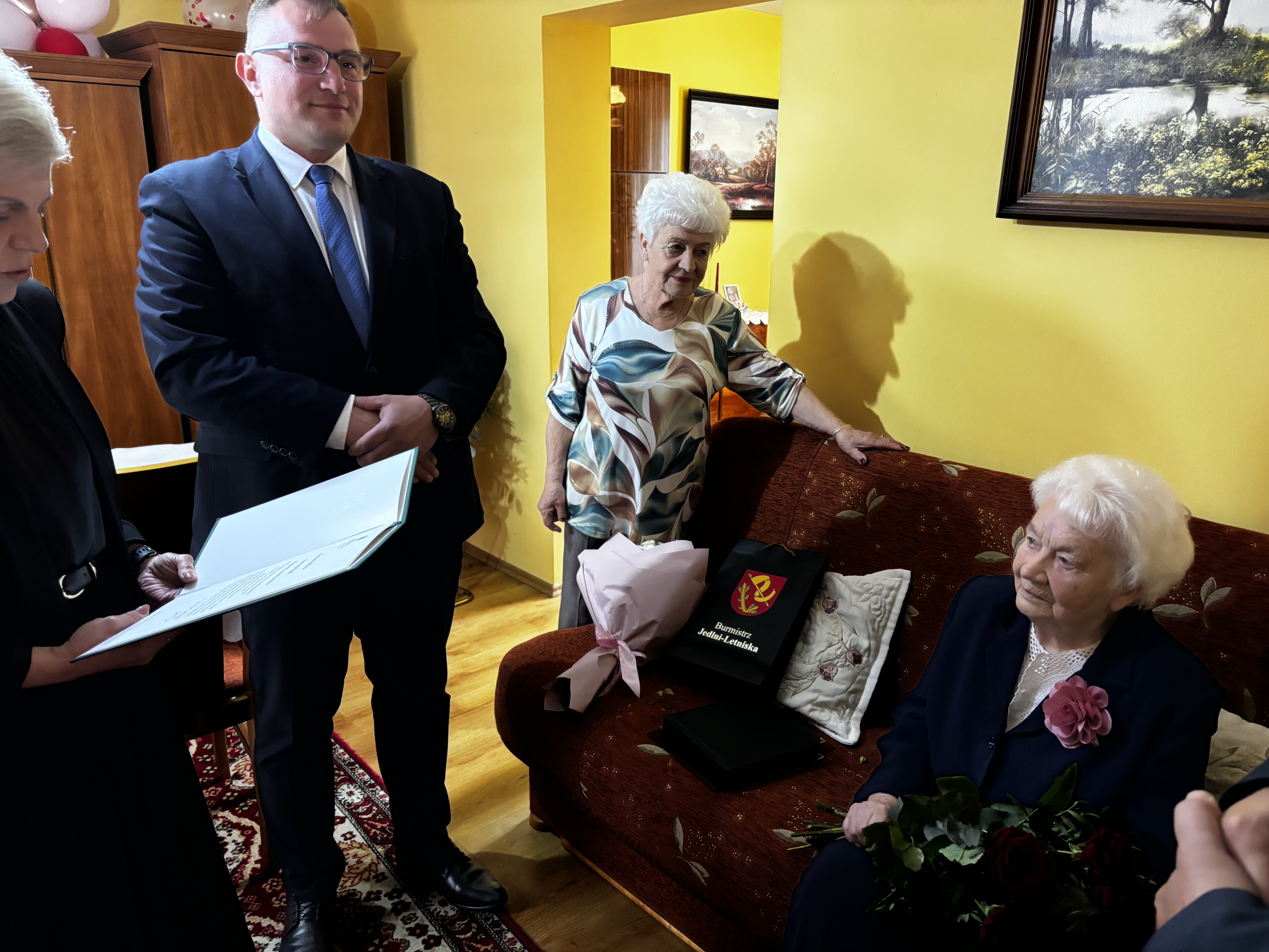 W tym wyjątkowym dniu Jubilatkę odwiedzili również burmistrz Jedlni-Letnisko Rafał Kornat, wiceburmistrz Tomasz Siczek i kierownik Urzędu Stanu Cywilnego Klaudia Ćwil.