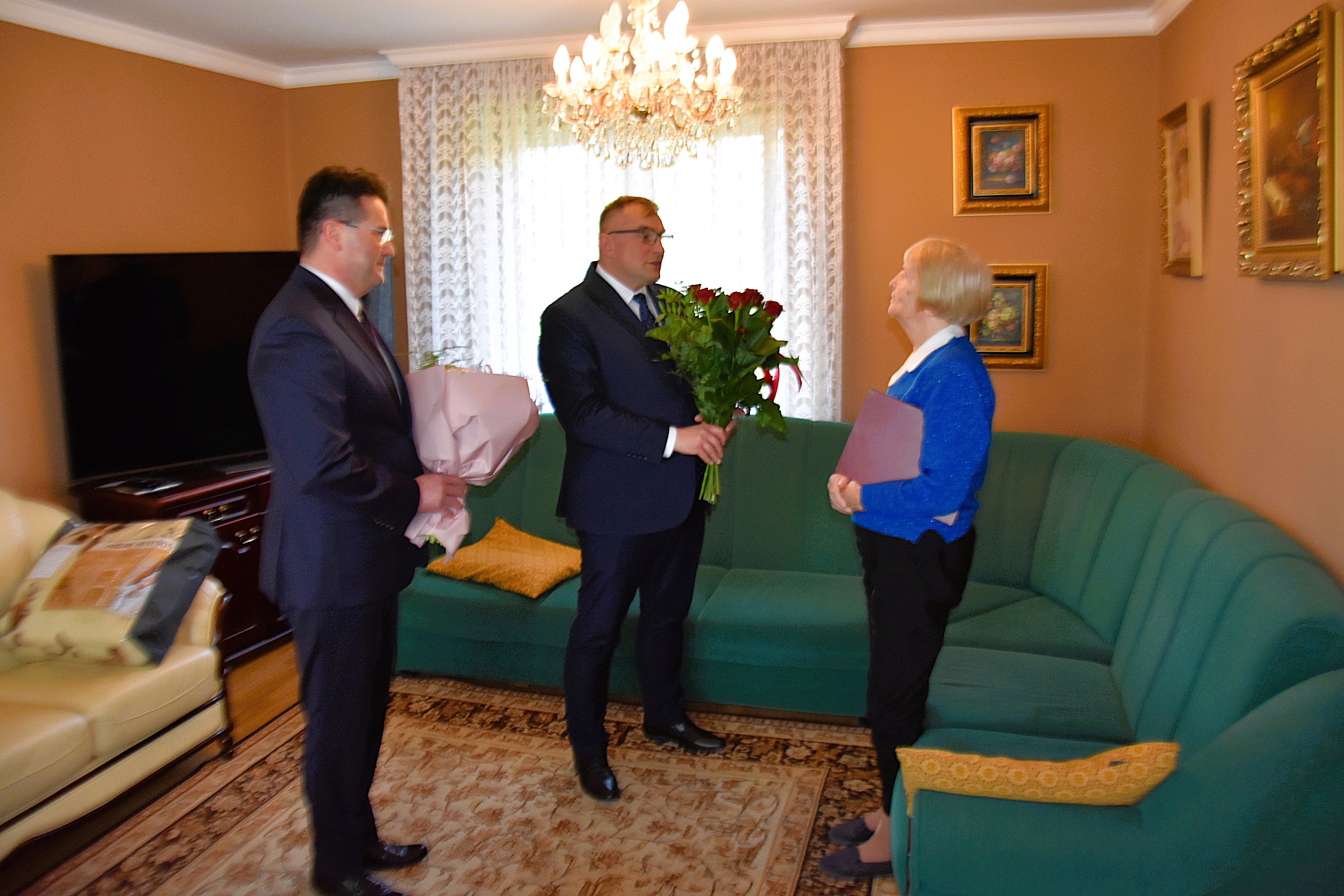 List od Prezesa Rady Ministrów odczytał kierownik Rafał Molga, który wręczył również kwiaty i przekazał życzenia w imieniu wojewody mazowieckiego Mariusza Frankowskiego.