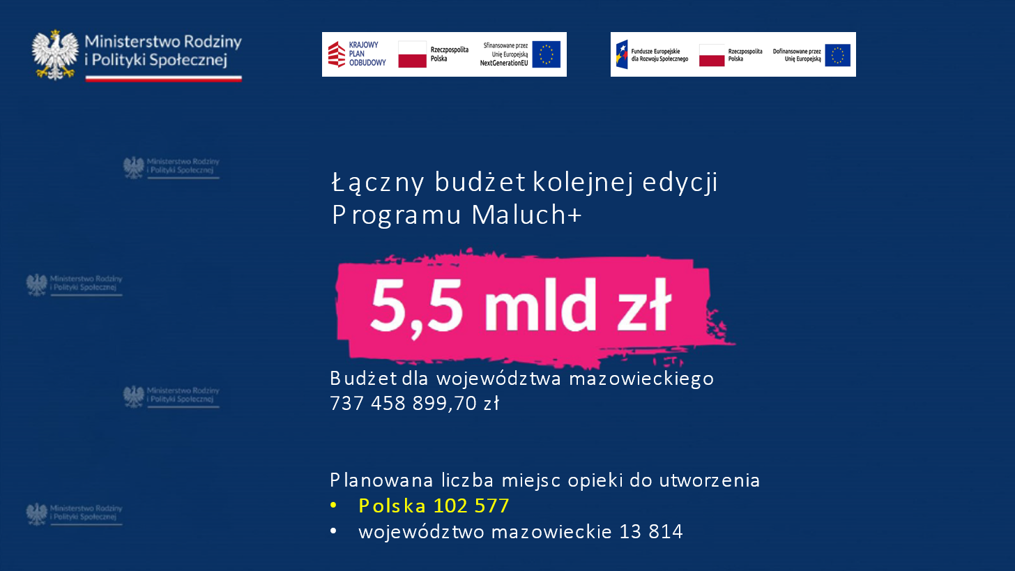Dotychczas program Maluch+ funkcjonował w formule rocznej, teraz będzie miał długofalowy charakter. Jego budżet w ramach nowej edycji zaplanowano na 5,5 mld zł. Dzięki temu liczba miejsc dla najmłodszych dzieci zwiększy się w kraju o dodatkowe 102 tys. miejsc.