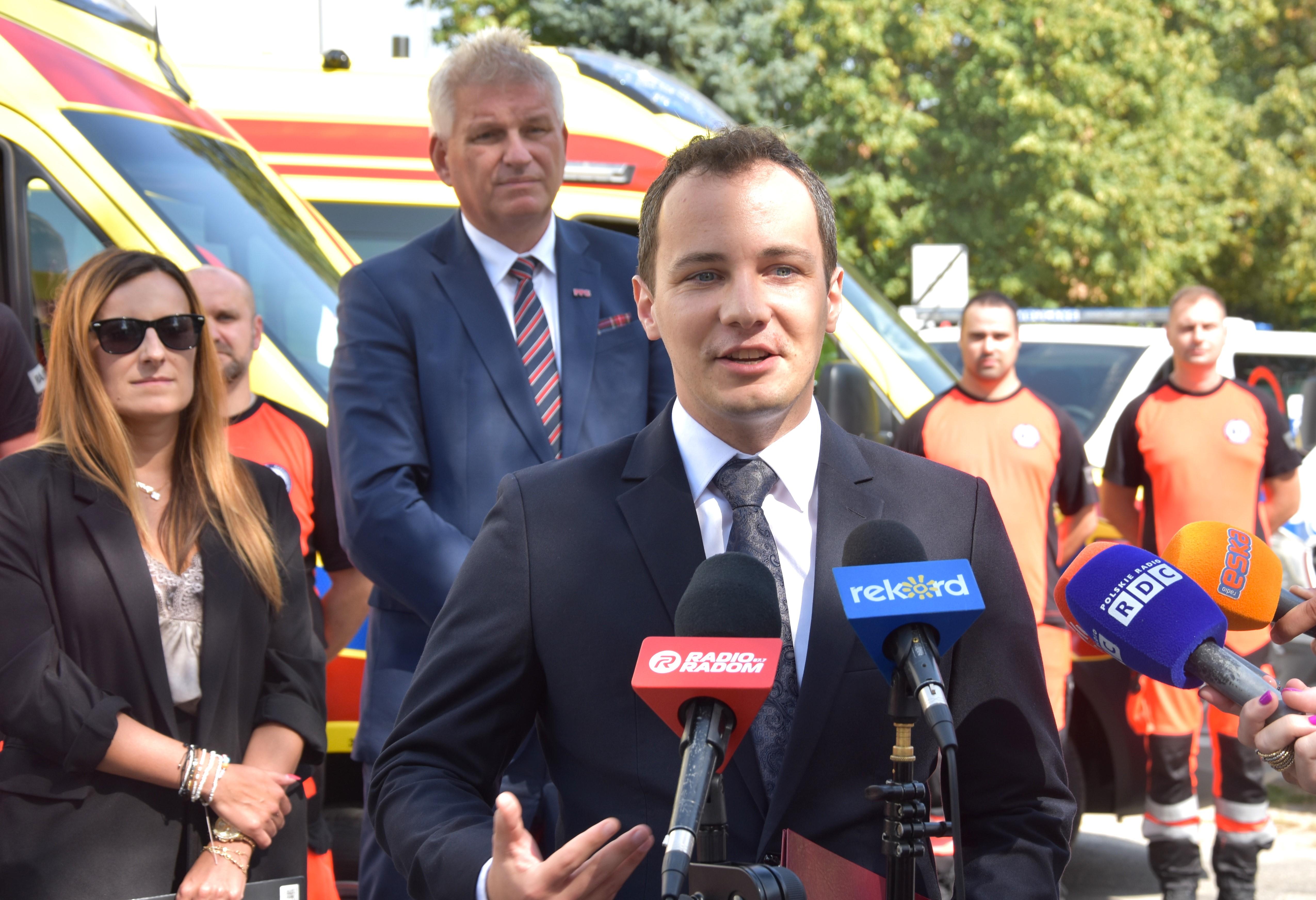 Uroczyste przekazanie ambulansów odbyło się w siedzibie Radomskiej Stacji Pogotowia Ratunkowego w Radomiu z udziałem m.in. Wiceministra Zdroiwia Wojciecha Koniecznego, Wicewojewody Mazowieckiego Patryka Fajdka, Zastępcy Prezydenta Radomia Marty Michalskiej-Wilk oraz Dyrektora Wydziału Państwowego Ratownictwa Medycznego Mazowieckiego Urzędu Wojewódzkiego w Warszawie Macieja Maślanki.
