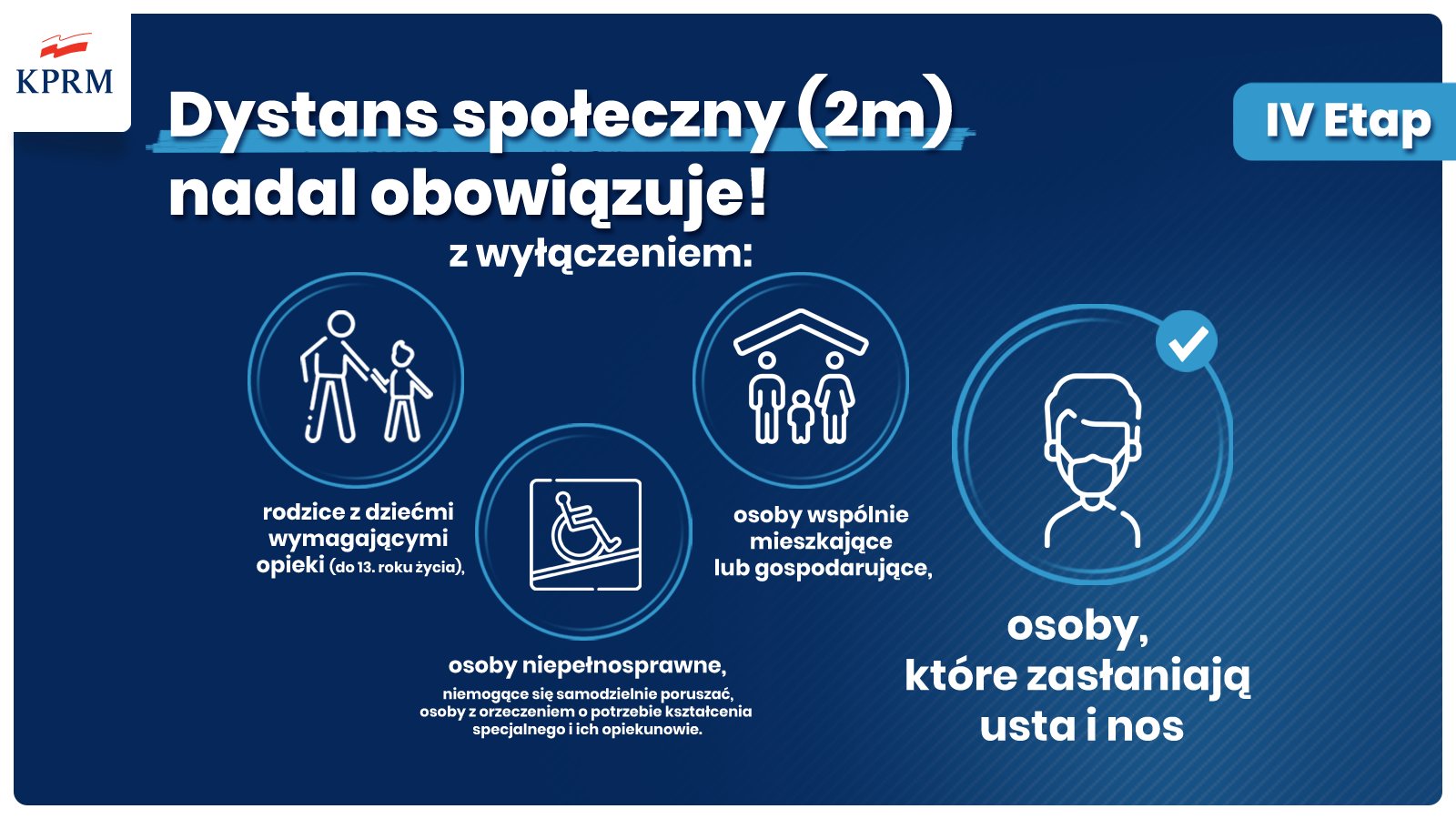 Pamiętajmy! Z obowiązku utrzymania 2-metrowego dystansu społecznego wyłączeni są rodzice z dziećmi wymagającymi opieki (do 13. roku życia), osoby wspólnie mieszkające, osoby niepełnosprawne, osoby, które zasłaniają usta i nos.