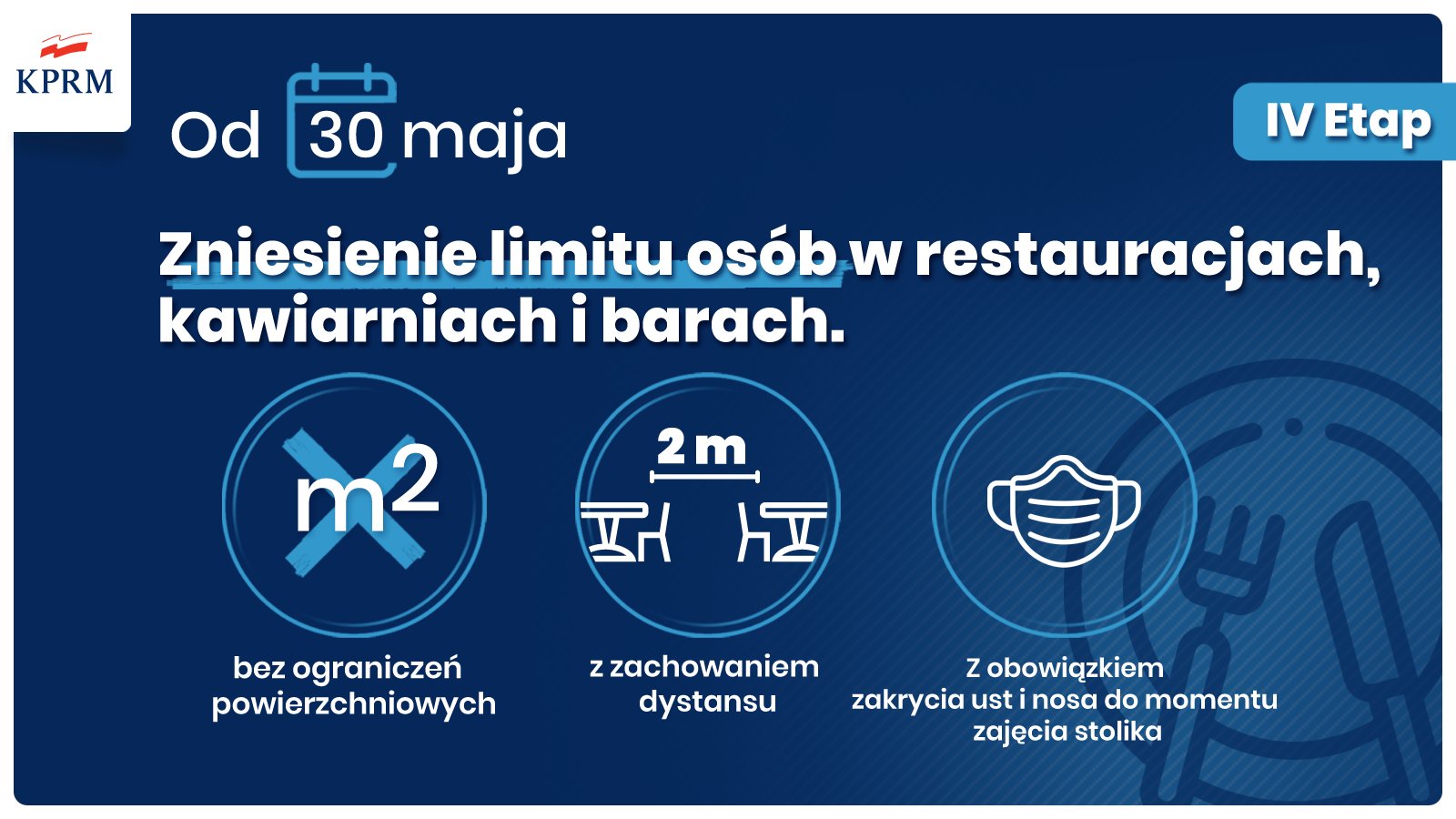 Znosimy limity osób w branży handlowej i gastronomicznej. Do tej pory w sklepie, restauracji, na targu, w punkcie usługowym czy na poczcie na 1 osobę musiała przypadać określona powierzchnia lub liczba okienek. Od 30 maja ta zasada przestaje obowiązywać.