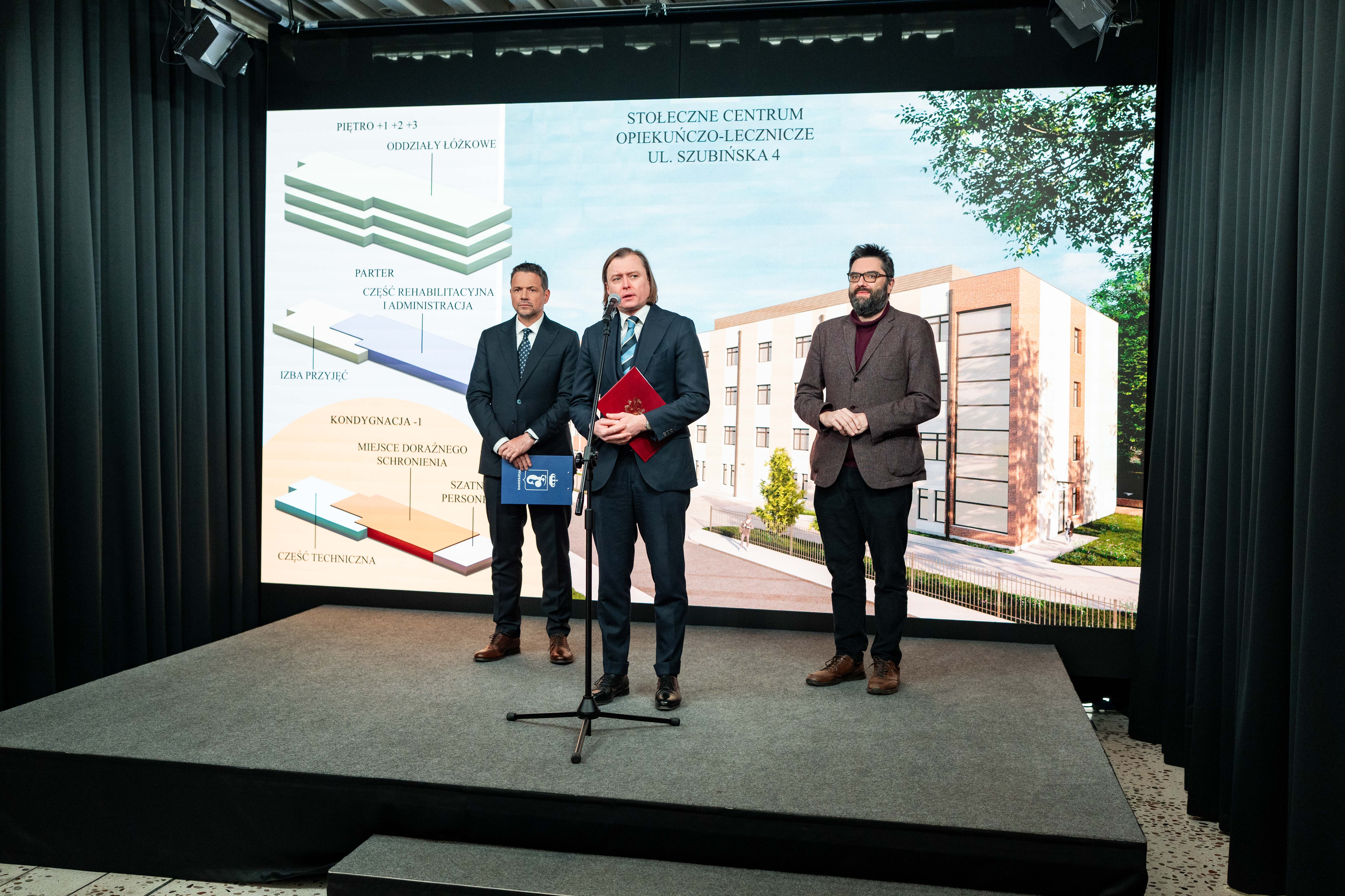 Miasto stołeczne Warszawa podpisało umowę na budowę nowego Pawilonu Medycznego w Zakładzie Opiekuńczo-Leczniczym przy ul. Szubińskiej 4. Budynek, oprócz zapewnienia opieki senioralnej, będzie pełnić funkcję miejsca doraźnego schronienia dla blisko 600 osób w sytuacjach kryzysowych. Inwestycja wpisuje się w szersze działania na rzecz poprawy bezpieczeństwa i rozwoju infrastruktury ochrony zdrowia, co pozwala nadrobić wieloletnie zaległości w zakresie ochrony ludności i obrony cywilnej. W uroczystości podpisania umowy wziął udział wojewoda mazowiecki Mariusz Frankowski.
