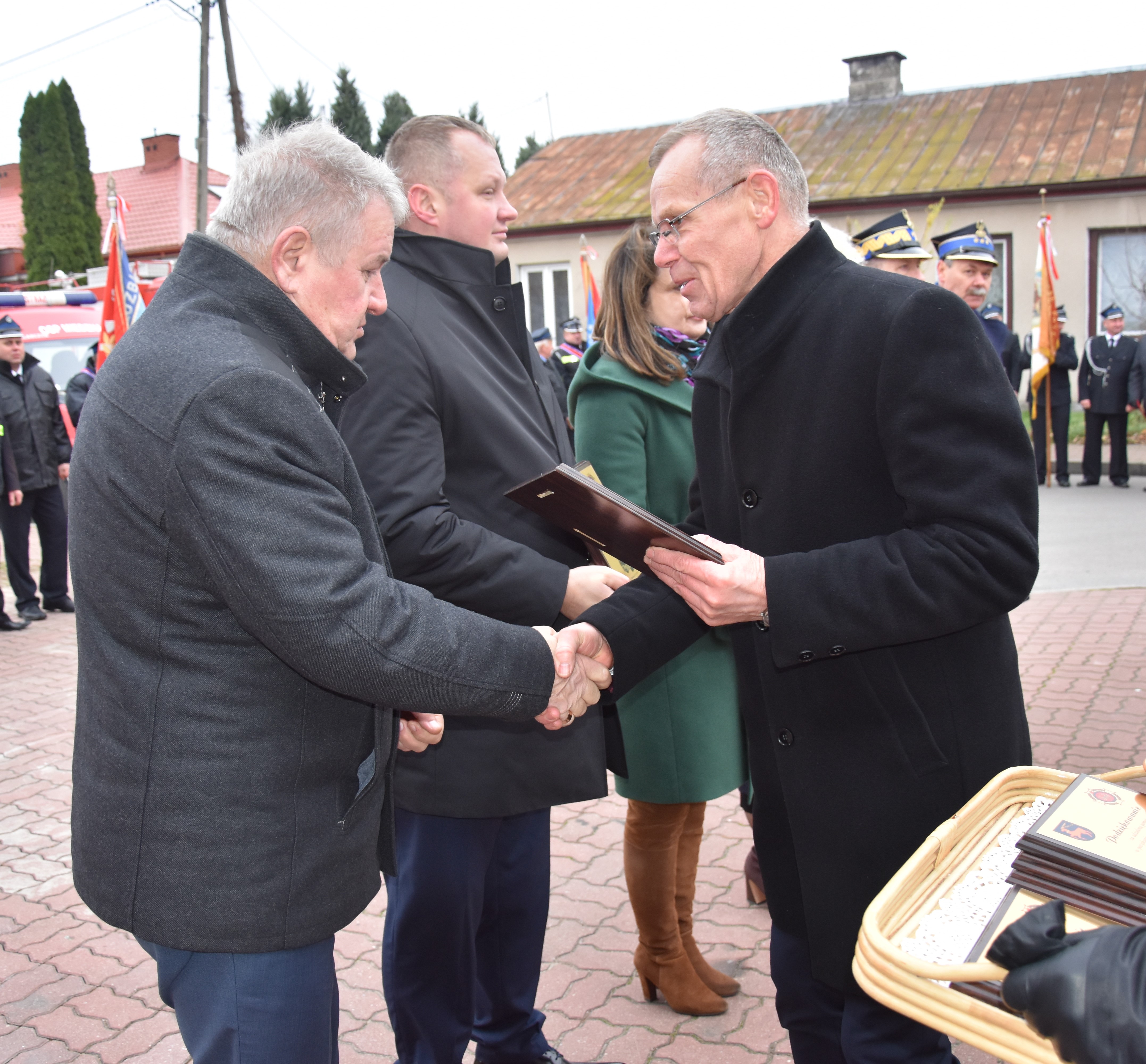 Podczas oficjalnej części przekazania nowego samochodu Wicewojewoda Sylwester Dąbrowski pogratulował strażakom miejscowej jednostki Ochotniczej Straży Pożarnej nowego pojazdu, podziękował za poświęcenie, zaangażowanie w służbę oraz życzył zadowolenia z użytkowania nowego samochodu.