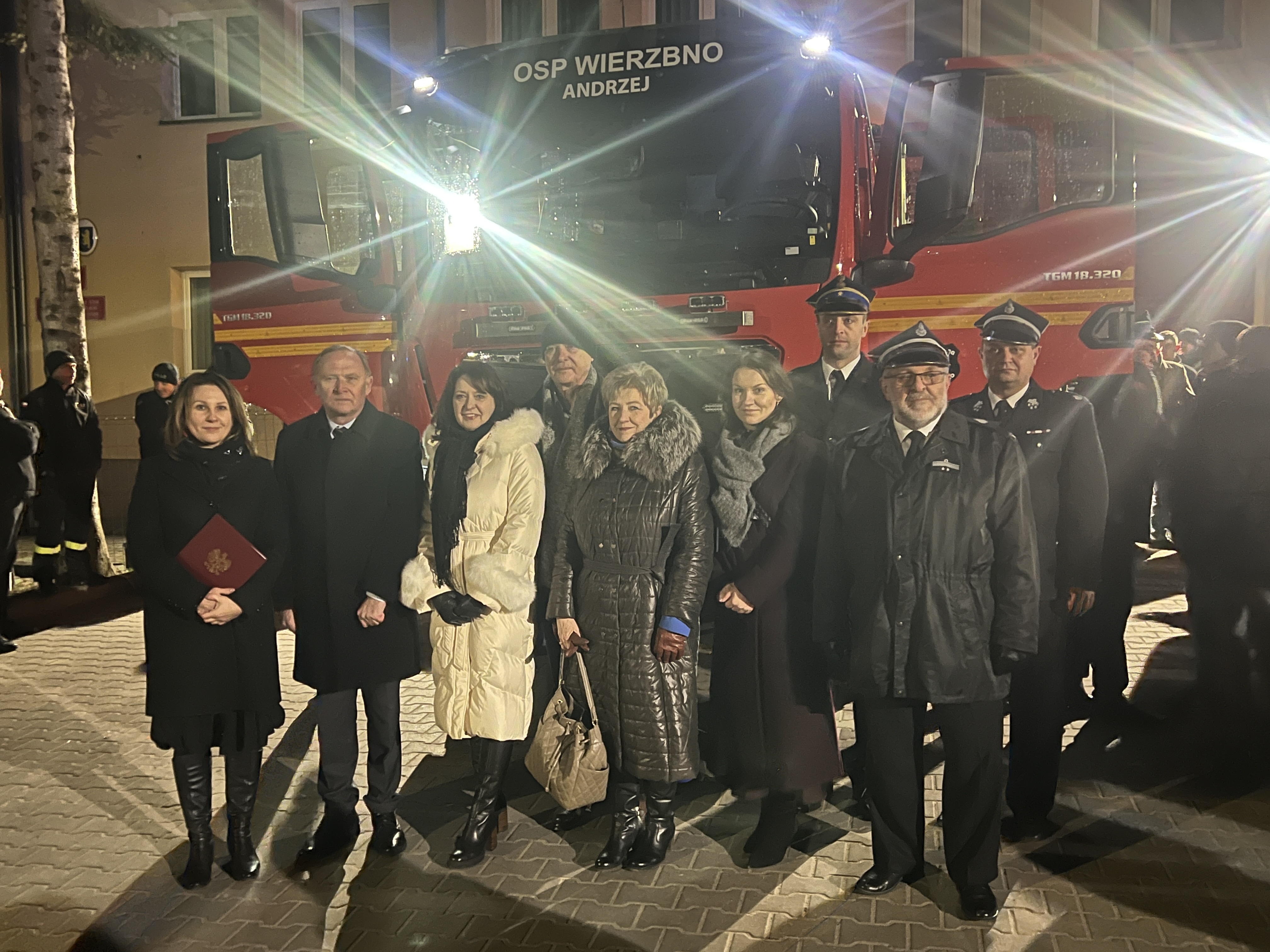 Społeczność gminy Wierzbno zebrała się przy strażnicy Ochotniczej Straży Pożarnej, by wspólnie z druhnami i druhami oraz zaproszonymi gośćmi świętować przekazanie nowego wozu strażackiego. Uroczystość odbyła się 2 lutego.