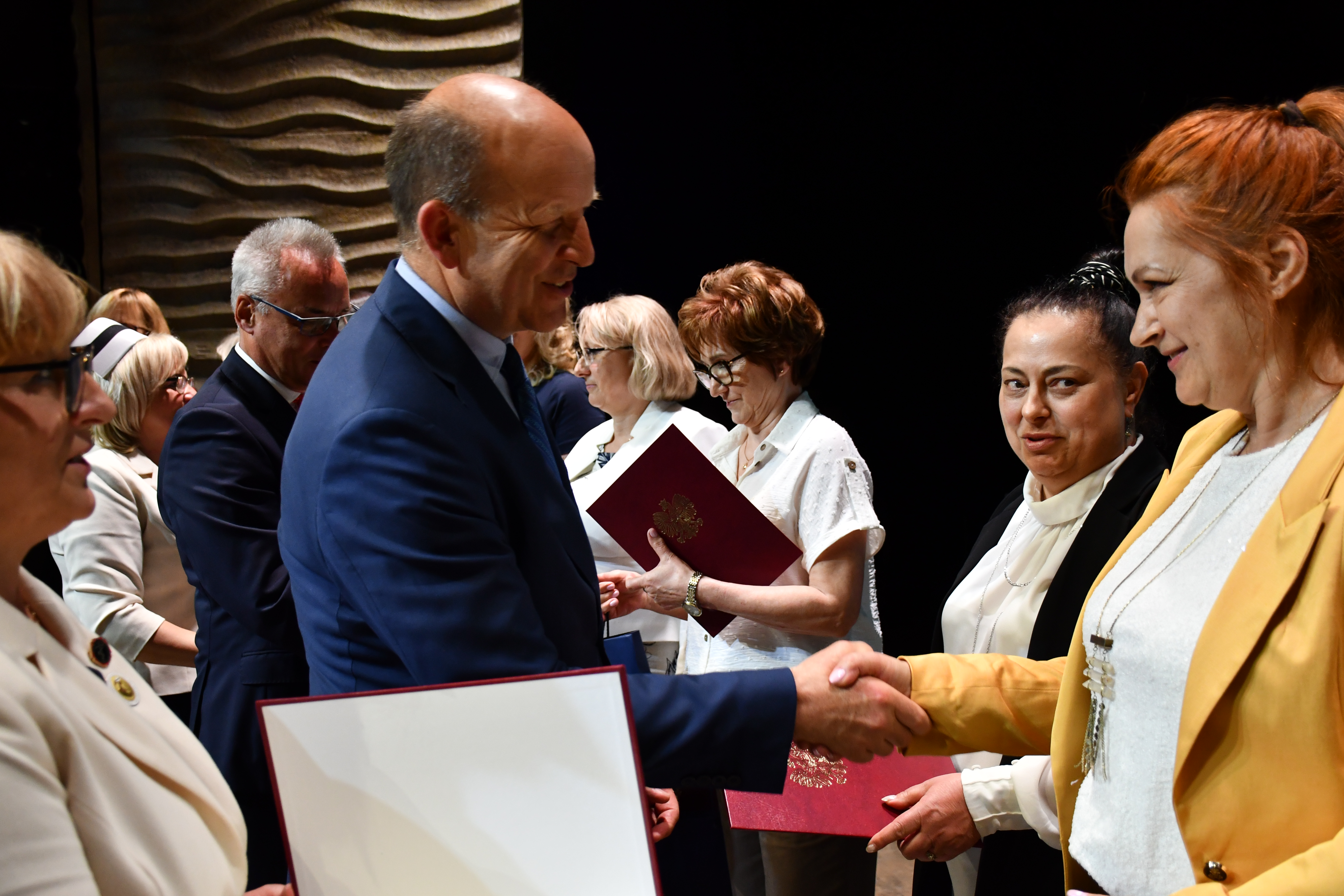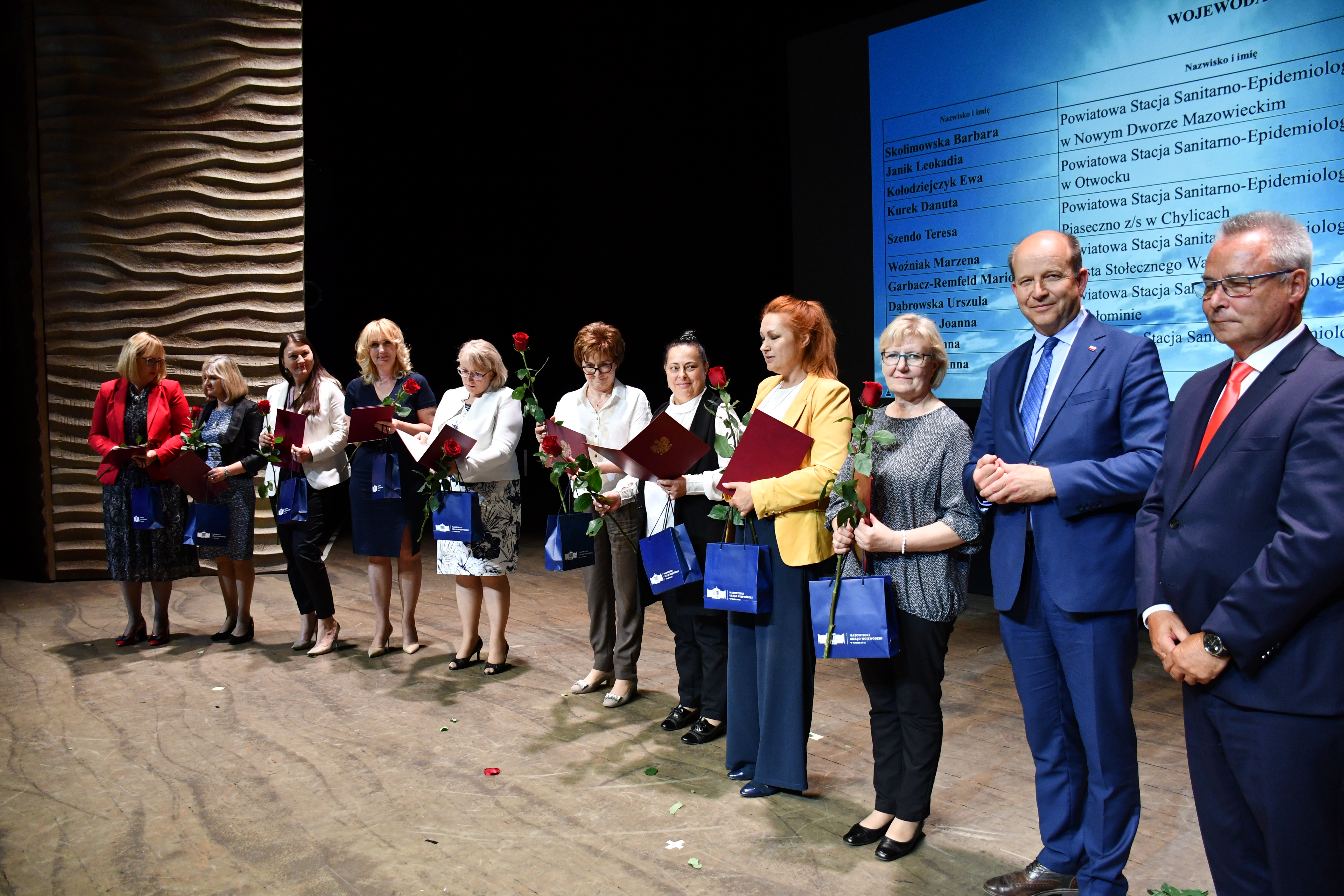 Następnie rozpoczęła się uroczystość wręczenia odznaczeń resortowych i samorządowych wyróżnionym pielęgniarkom i położnym. Wyróżnione osoby otrzymały odznaczenia „Za Zasługi dla Warszawskiej Okręgowej Izby Pielęgniarek i Położnych” z rąk Przewodniczącej Okręgowej Rady Anny Dudzińskiej. Odznaczenia Naczelnej Rady Pielęgniarek i Położnych – „Zasłużony dla samorządu Pielęgniarek i Położnych” wręczyła Prezes Naczelnej Rady Pielęgniarek i Położnych Zofia Małas. Wojewoda Mazowiecki Konstanty Radziwiłł wręczył 9 wyróżnień laureatom wskazanym przez Powiatowe Stacje Sanitarno-Epidemiologiczne oraz Wojewódzką Stację Sanitarno-Epidemiologiczną.