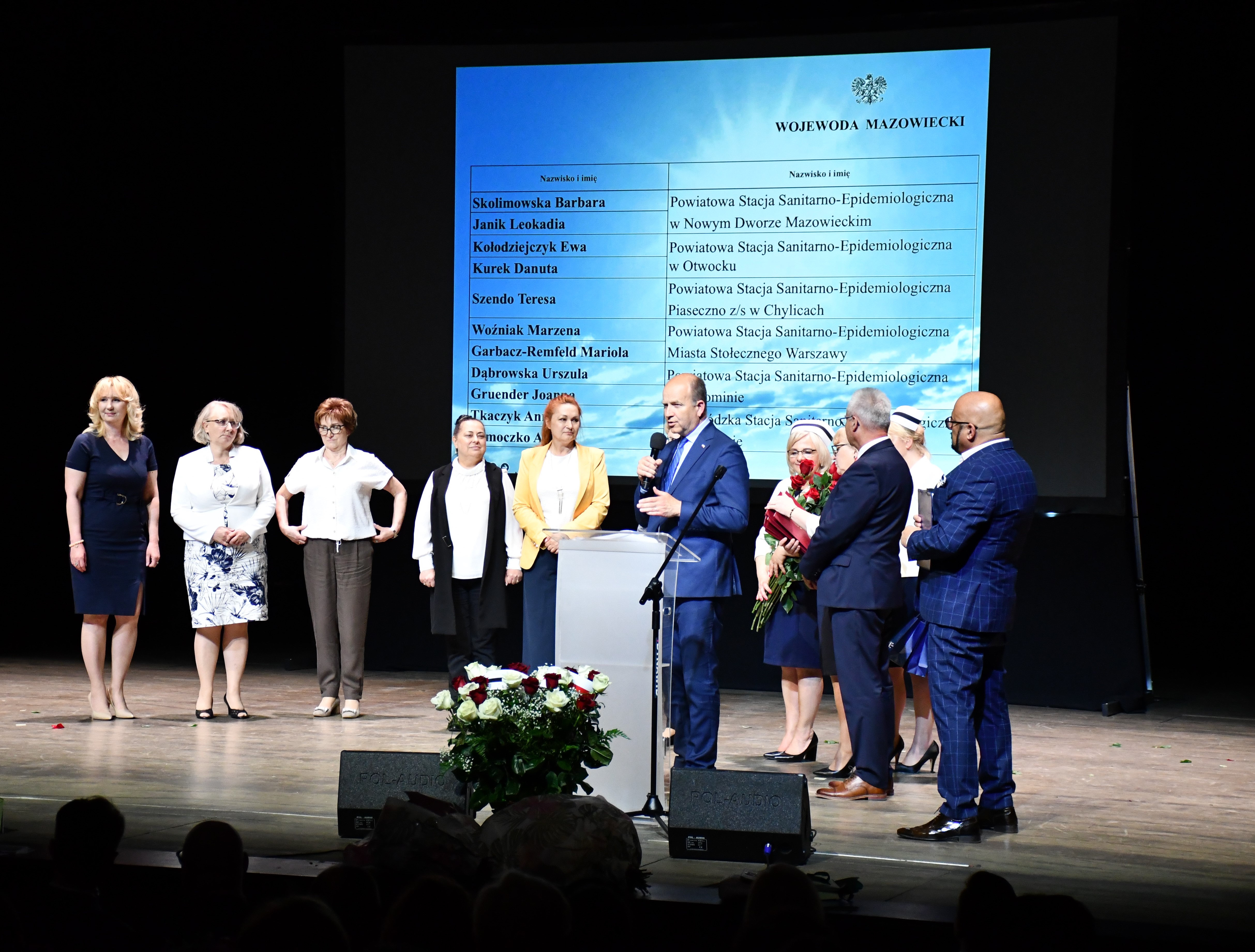 Dzisiejsze święto jest niezwykłe, ponieważ niezwykłe są zawody, które Państwo wykonują. Zawody pielęgniarki i położnej to zawody absolutnie wyjątkowe, które wymagają niezwykłego profesjonalizmu. Zwłaszcza w dzisiejszych czasach. Ogromna wiedza, perfekcyjnie opanowane umiejętności do wykonywania wielu zadań. No i wreszcie, co niezwykle ważne to umiejętności komunikacyjne i refleksja etyczna. Dziękuje za to wszystko Paniom i Panom, którzy wykonują te dwa bardzo wymagające zawody. Dziękuje, że tak wielu z Państwa odpowiedziało na wyzwanie, które zresztą wybrzmiewa w Państwa hymnie i mówi o tym, że są takie sytuacje kiedy trzeba zapomnieć o sobie i swoim bezpieczeństwie. I z całą pewnością z taką okolicznością mieliśmy do czynienia w ciągu ostatnich dwóch lat w czasie pandemii, gdzie wielu z Państwa było w stanie oddać się służbie drugiemu człowiekowi. To zasługuje na wdzięczność i bardzo nisko z tego powodu Państwu się kłaniam i życzę wszystkiego co najlepsze. – powiedział Wojewoda Mazowiecki, Konstanty Radziwiłł.