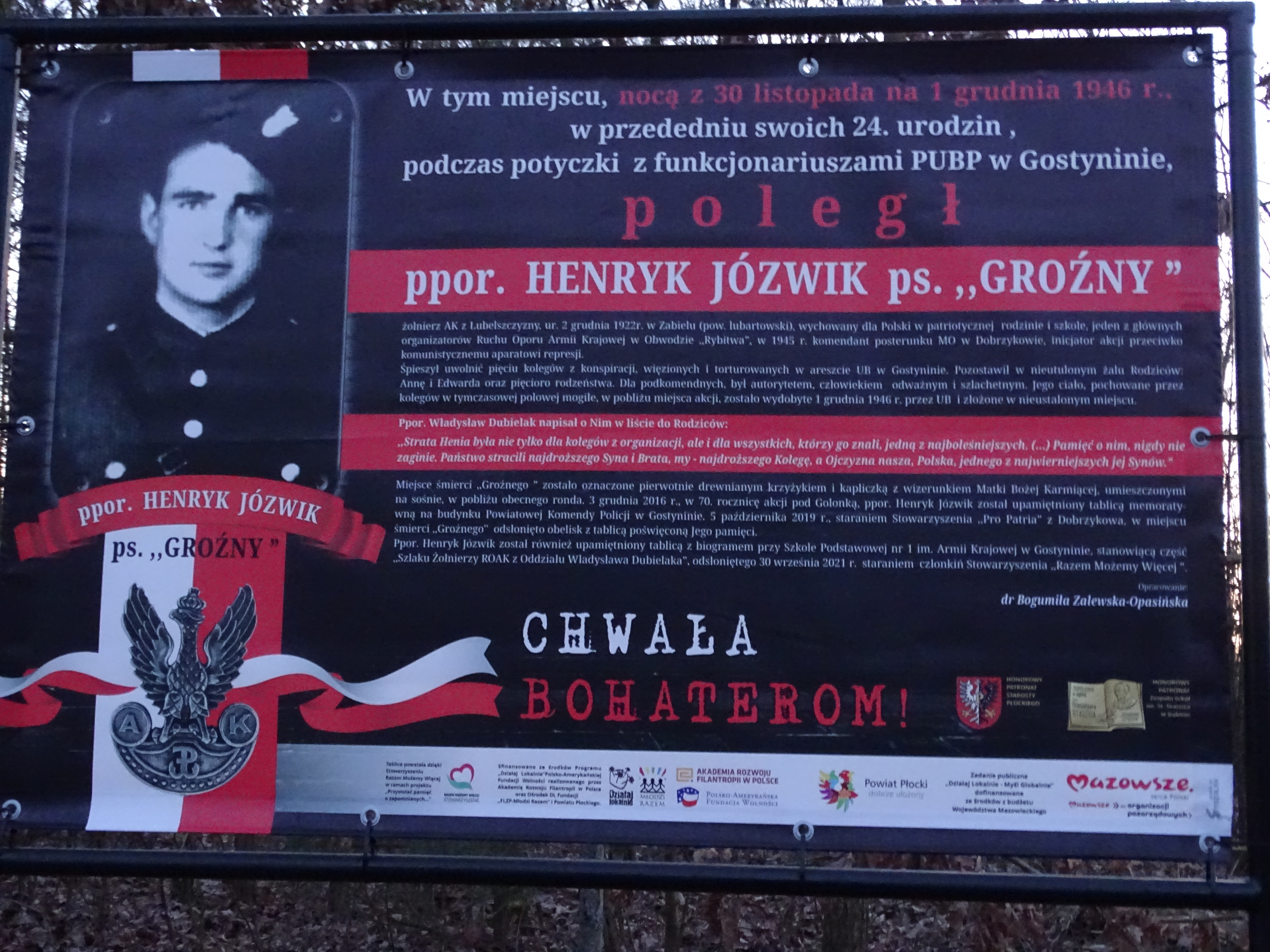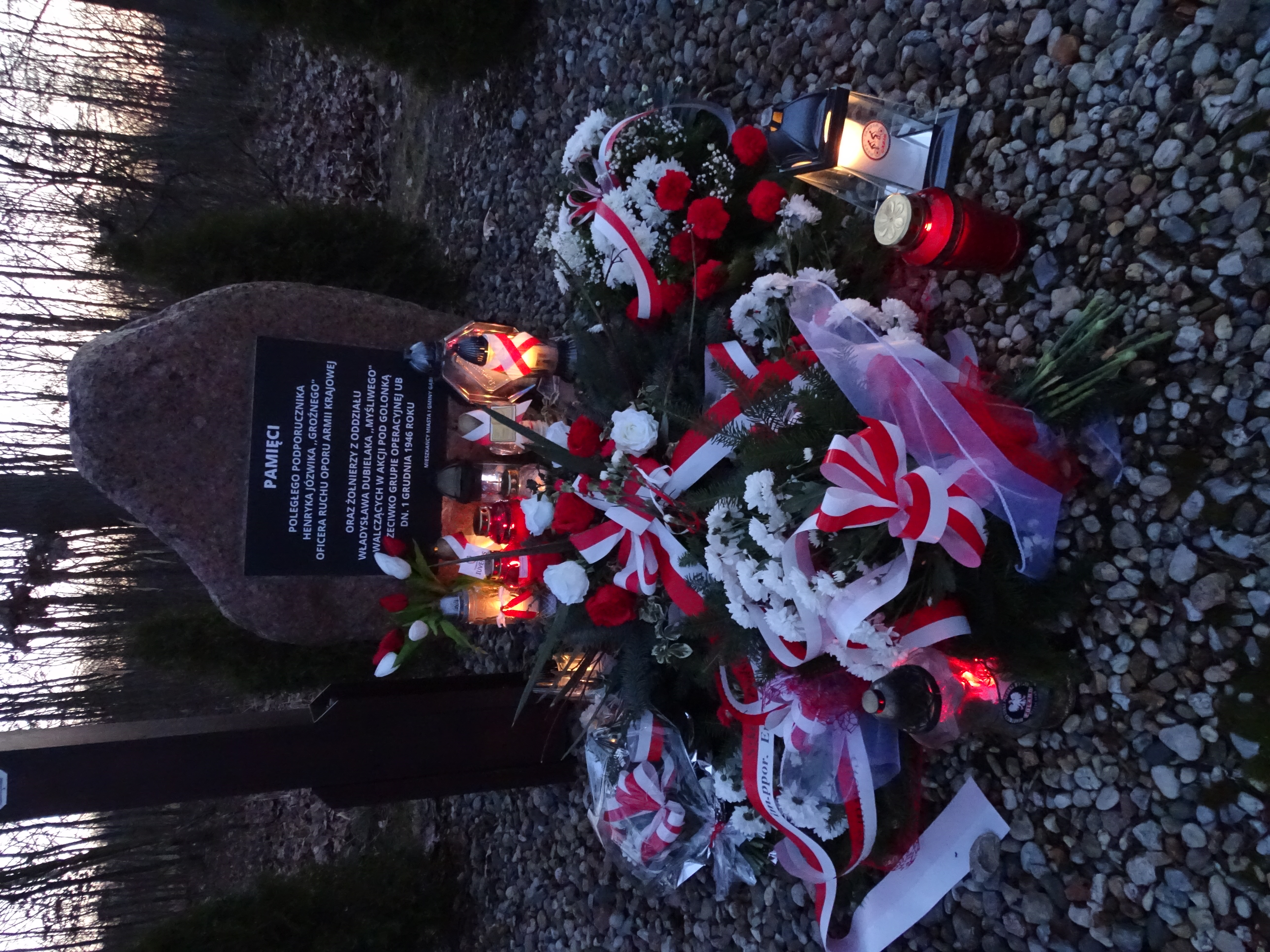 Kwiaty zostały złożone przed Panteonem Żołnierzy Wyklętych Mazowsza, będącym częścią odnowionego rodzinnego grobu por. Stefana Bronarskiego (1916-1951) ps. „Liść”, żołnierza AK i NSZ, aresztowanego przez UB i straconego w 1951 r. oraz przy pomniku ku czci Henryka Jóźwiaka „Groźnego” – członka Wojewódzkiego Sztabu Ruchu Oporu Armii Krajowej Obwód „Rybitwa” w Gąbinie.