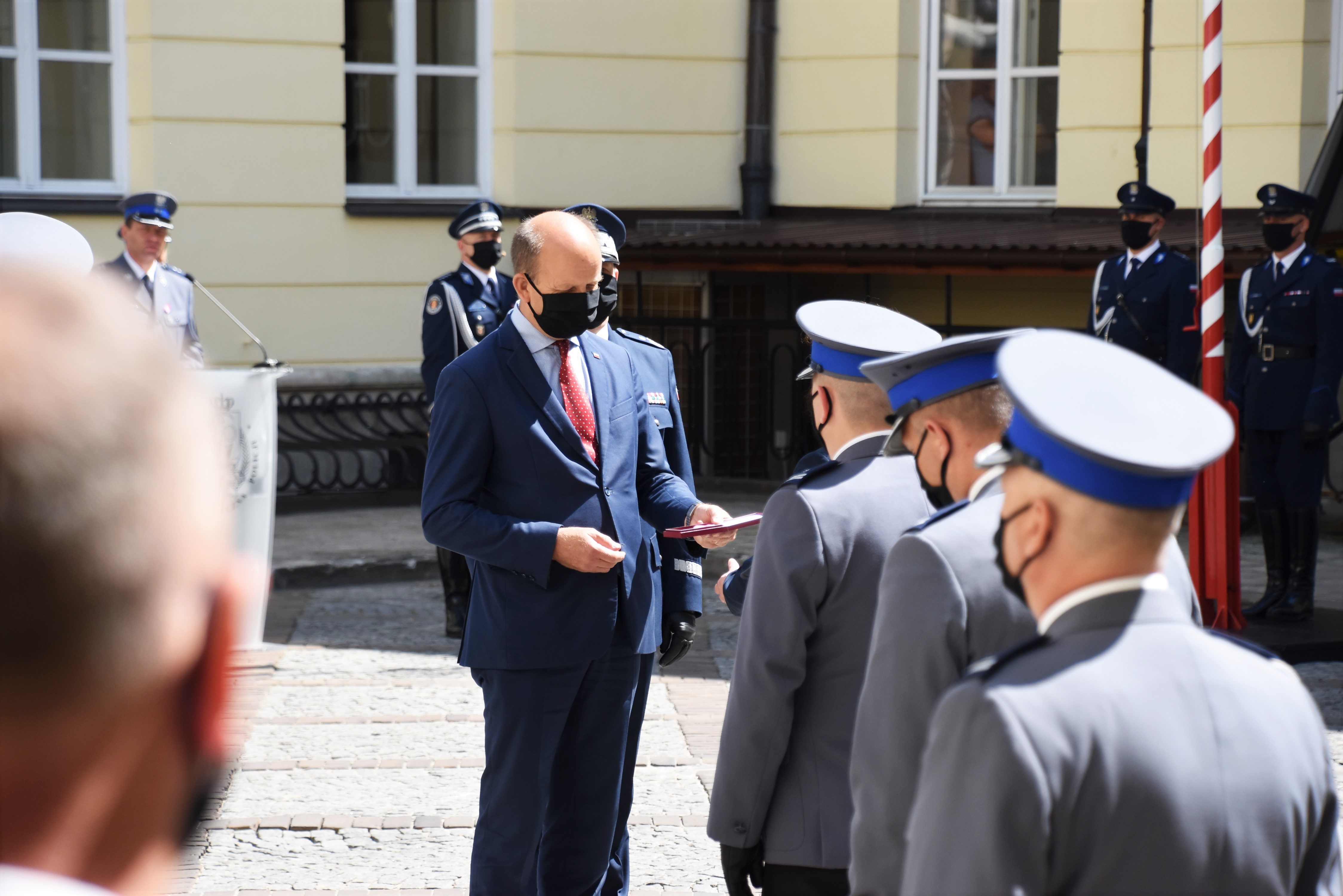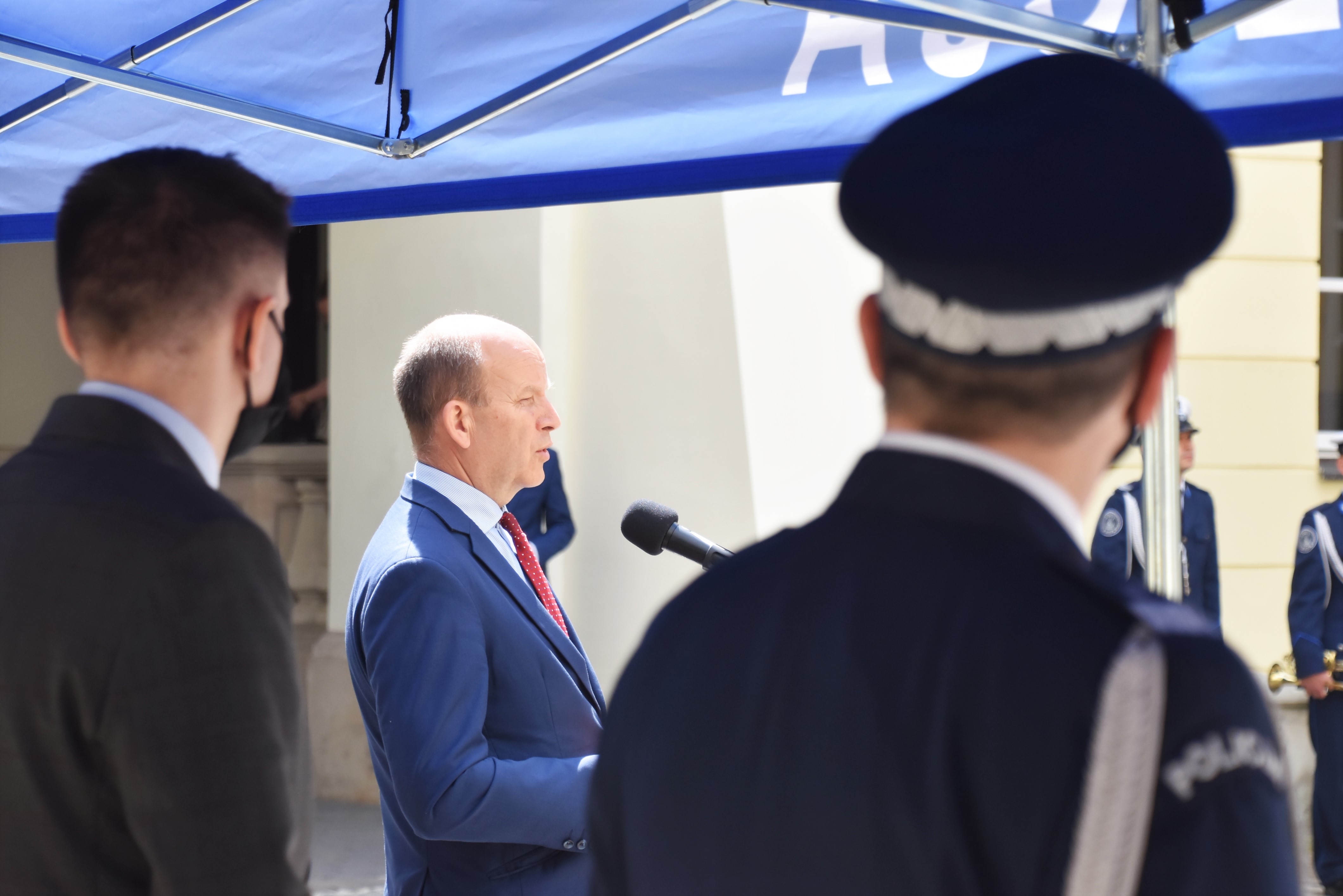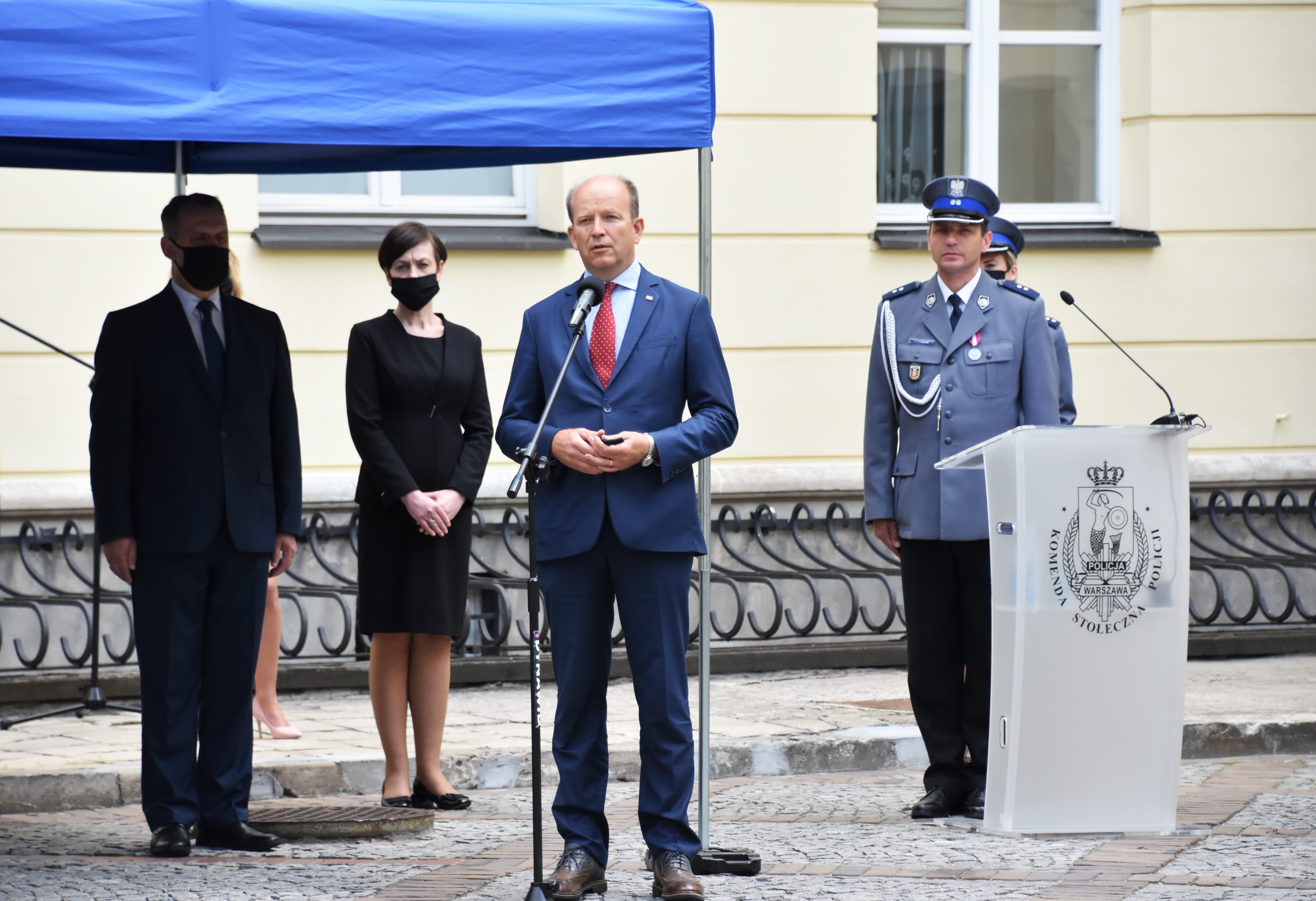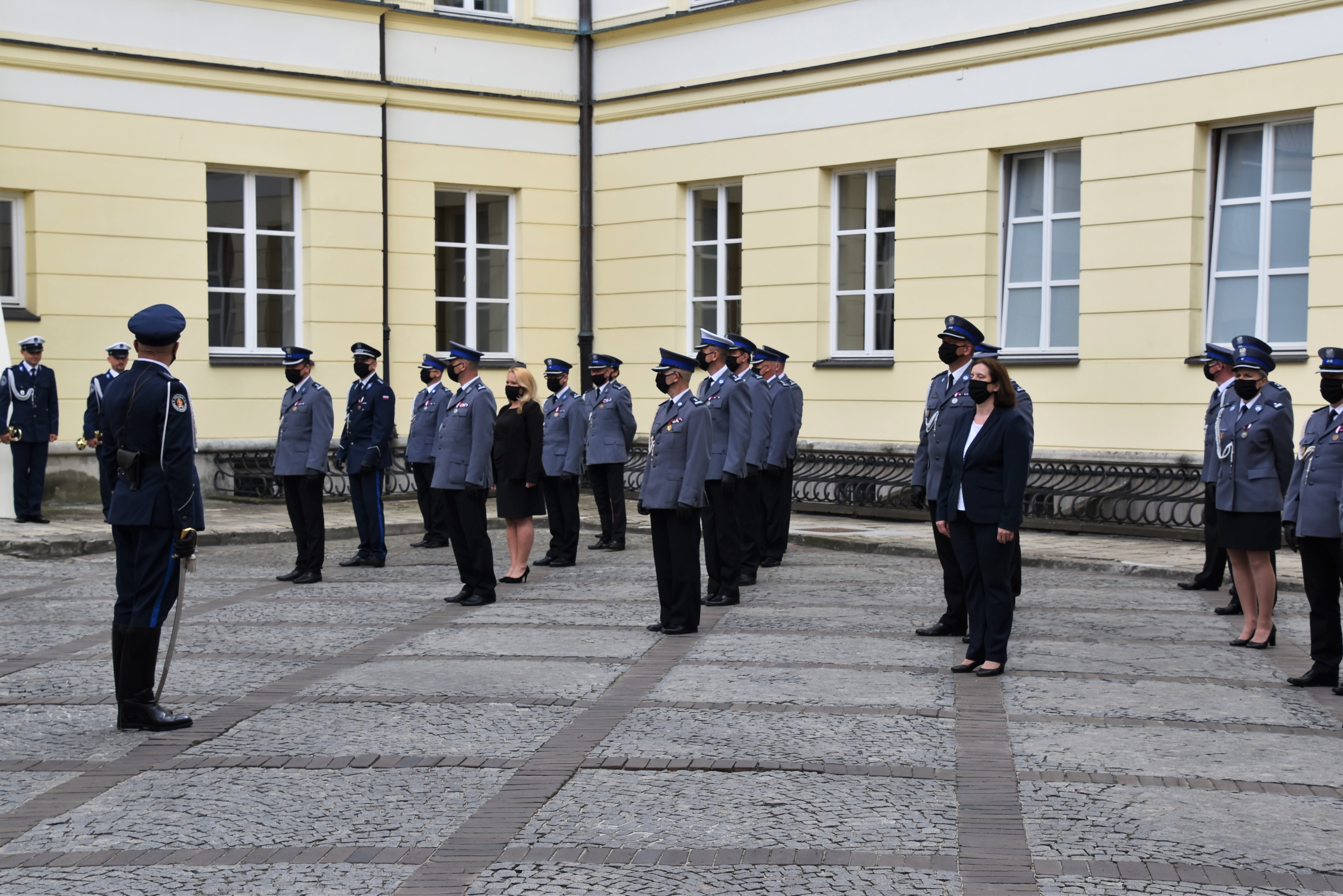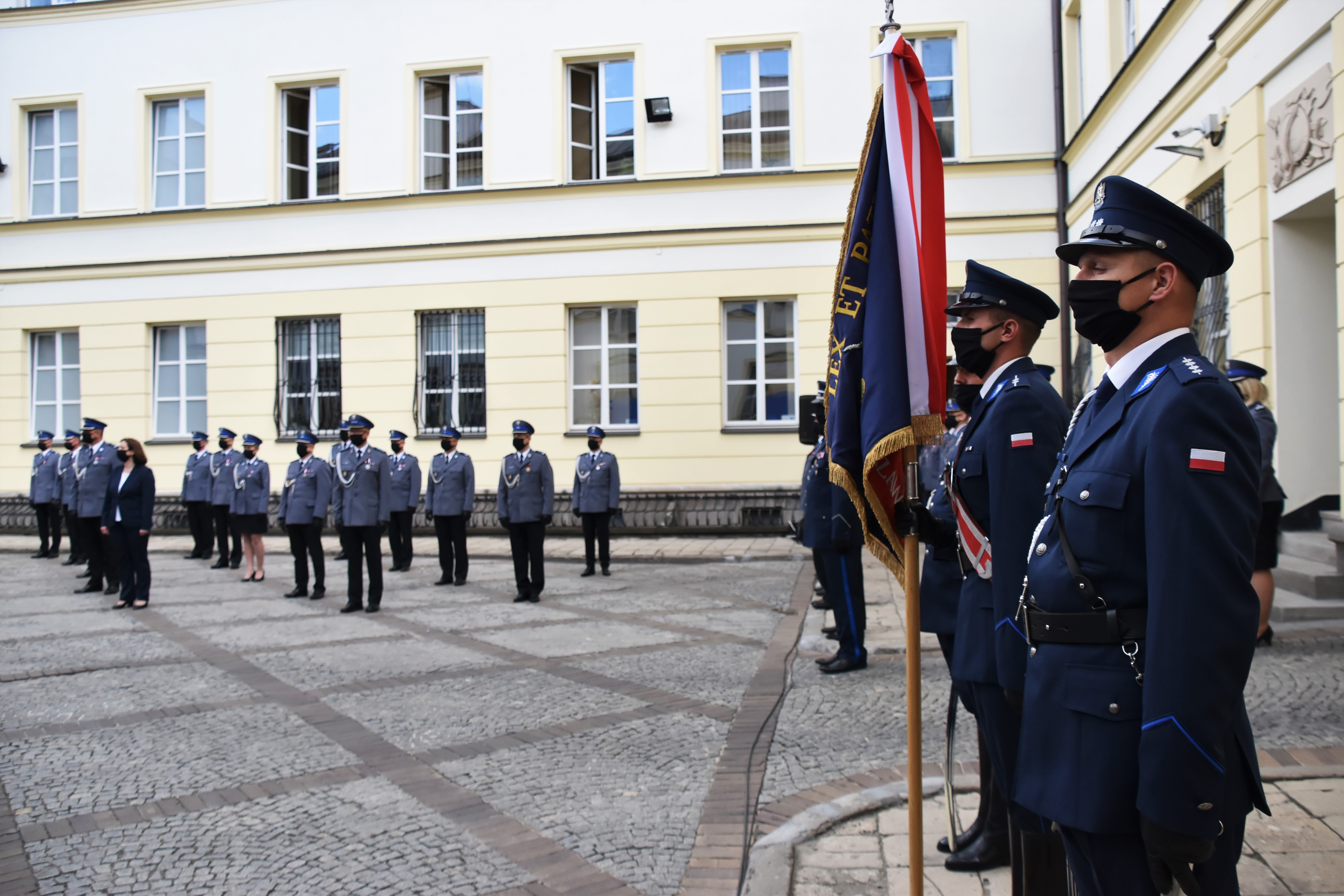 Uroczystości kontynuowano na dziedzińcu przy Pałacu Mostowskich w Warszawie. Rozpoczęły się wprowadzeniem sztandaru Komendy Stołecznej Policji, odśpiewano hymn, a następnie powitano zgromadzonych gości.