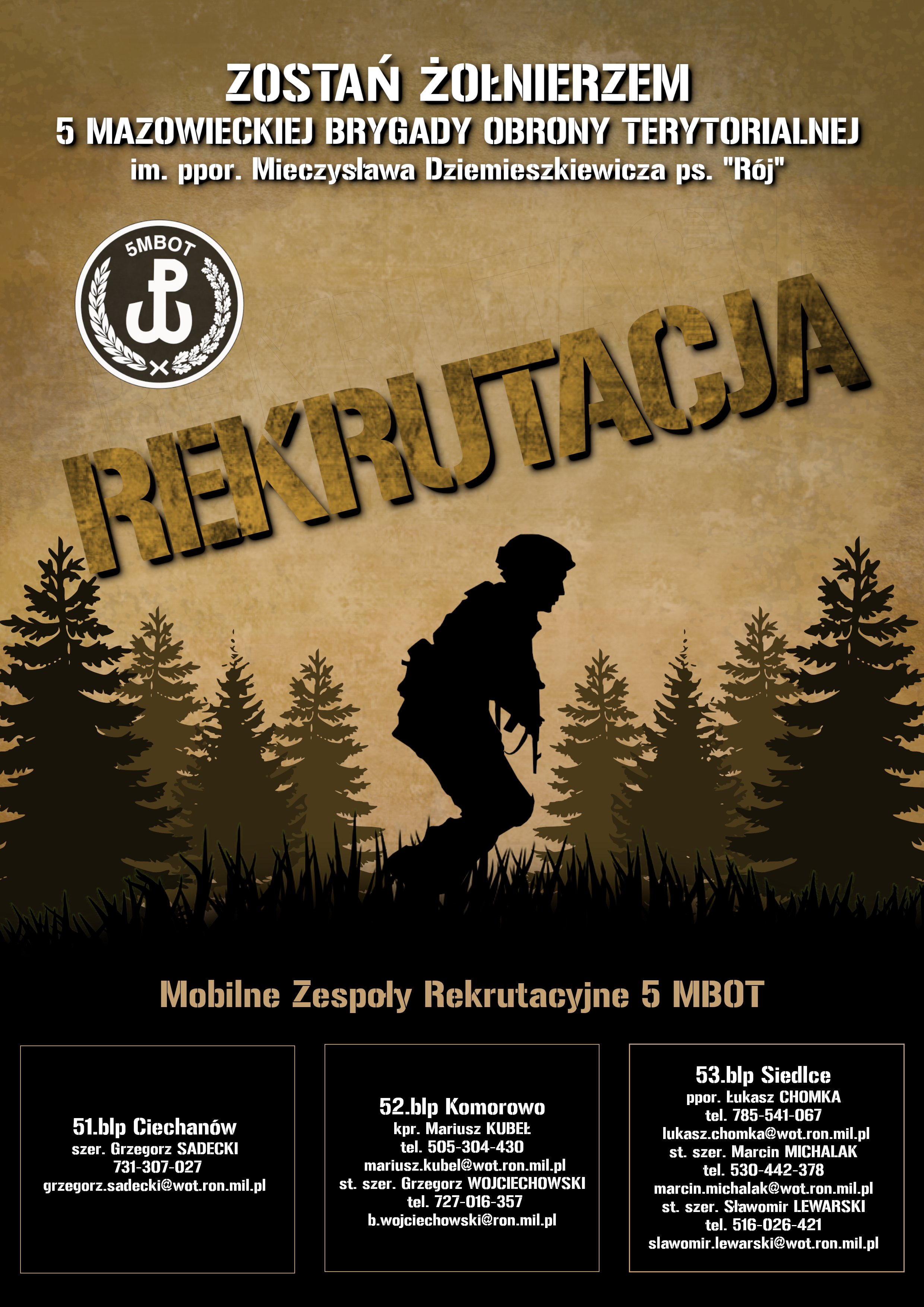 W Mazowieckich Brygadach Obrony Terytorialnej rozpoczęły działalność Mobilne Zespoły Rekrutacyjne. Zadaniem rekruterów z WOT jest wsparcie procesu naboru kandydatów do służby. Rekruterzy udzielą wszystkich informacji dotyczących służby oraz pomogą osobom zainteresowanym wypełnić wniosek o powołanie do terytorialnej służby wojskowej.