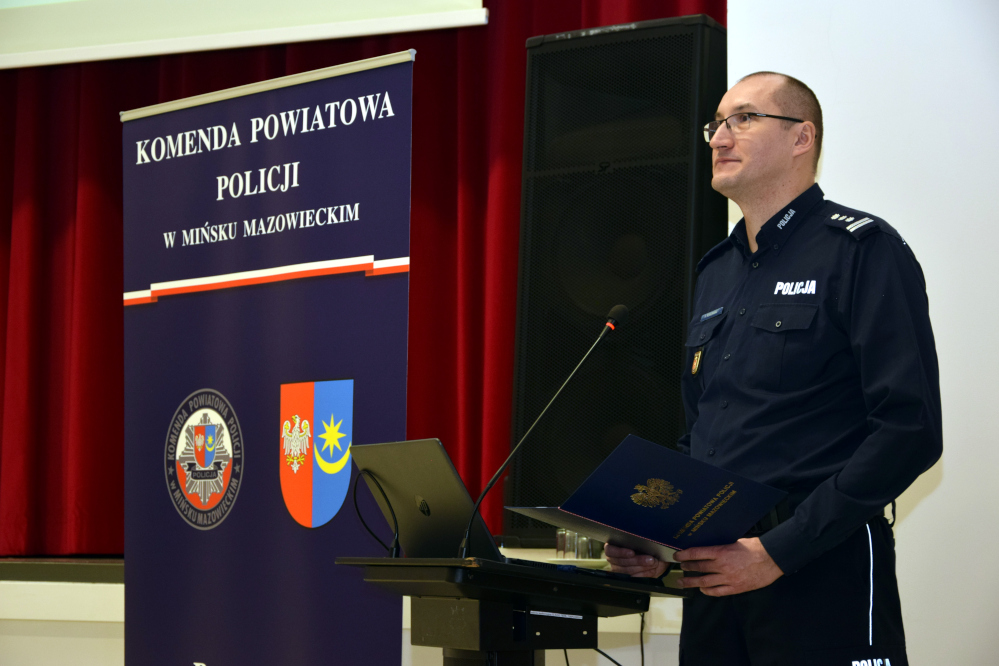 Na zakończenie Komendant Powiatowy Policji w Mińsku Mazowieckim insp. Sławomir Rogowski podziękował zgromadzonym gościom za przybycie na odprawę roczną.