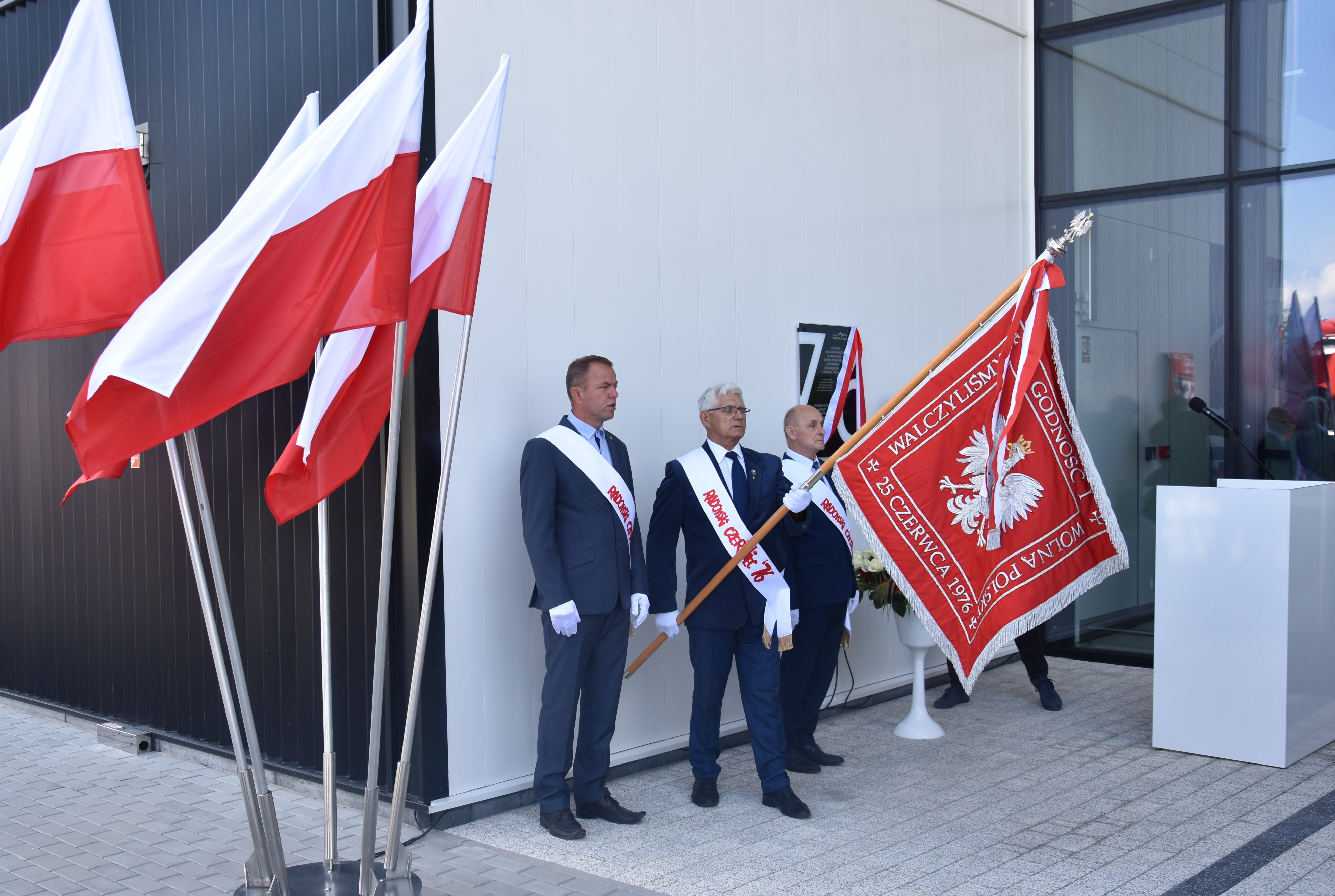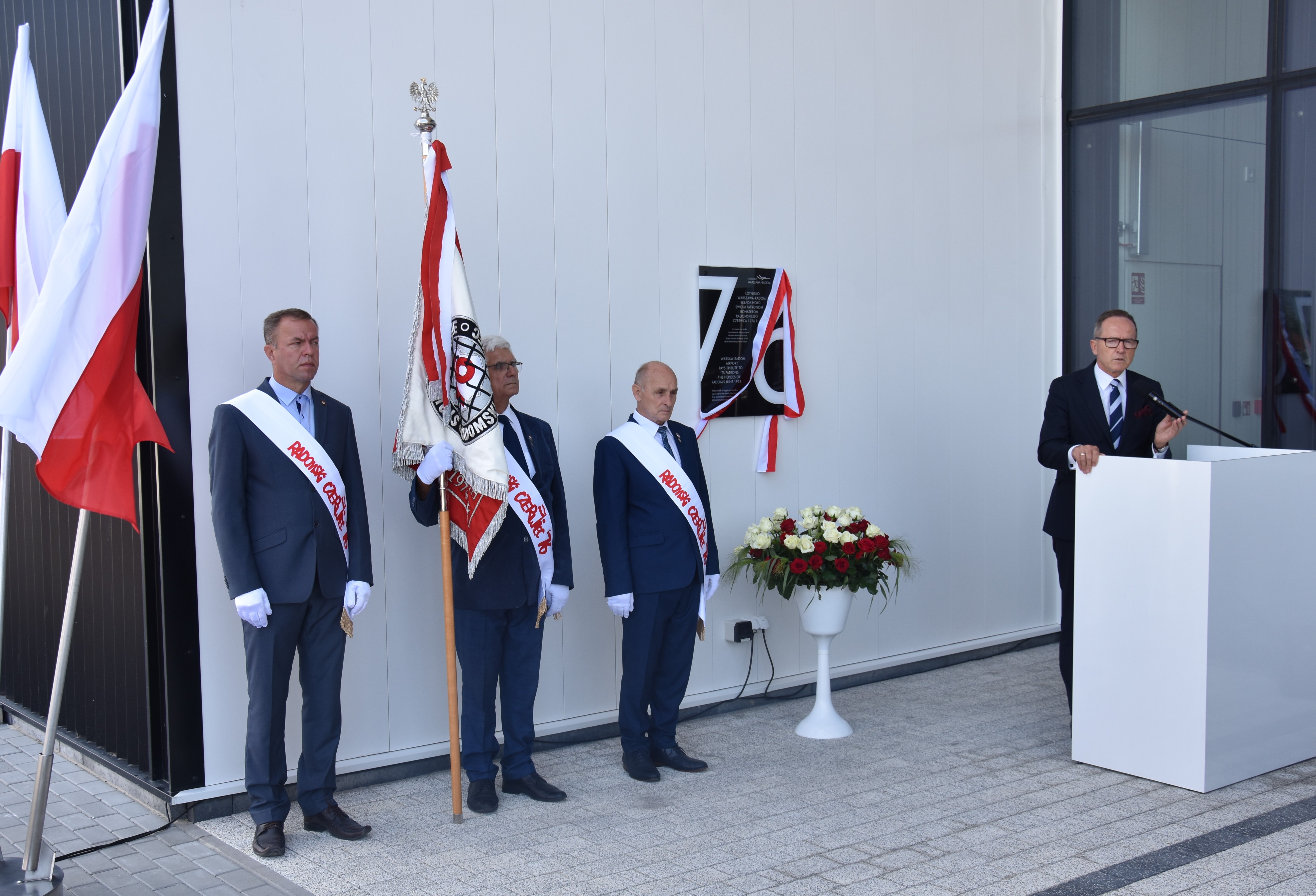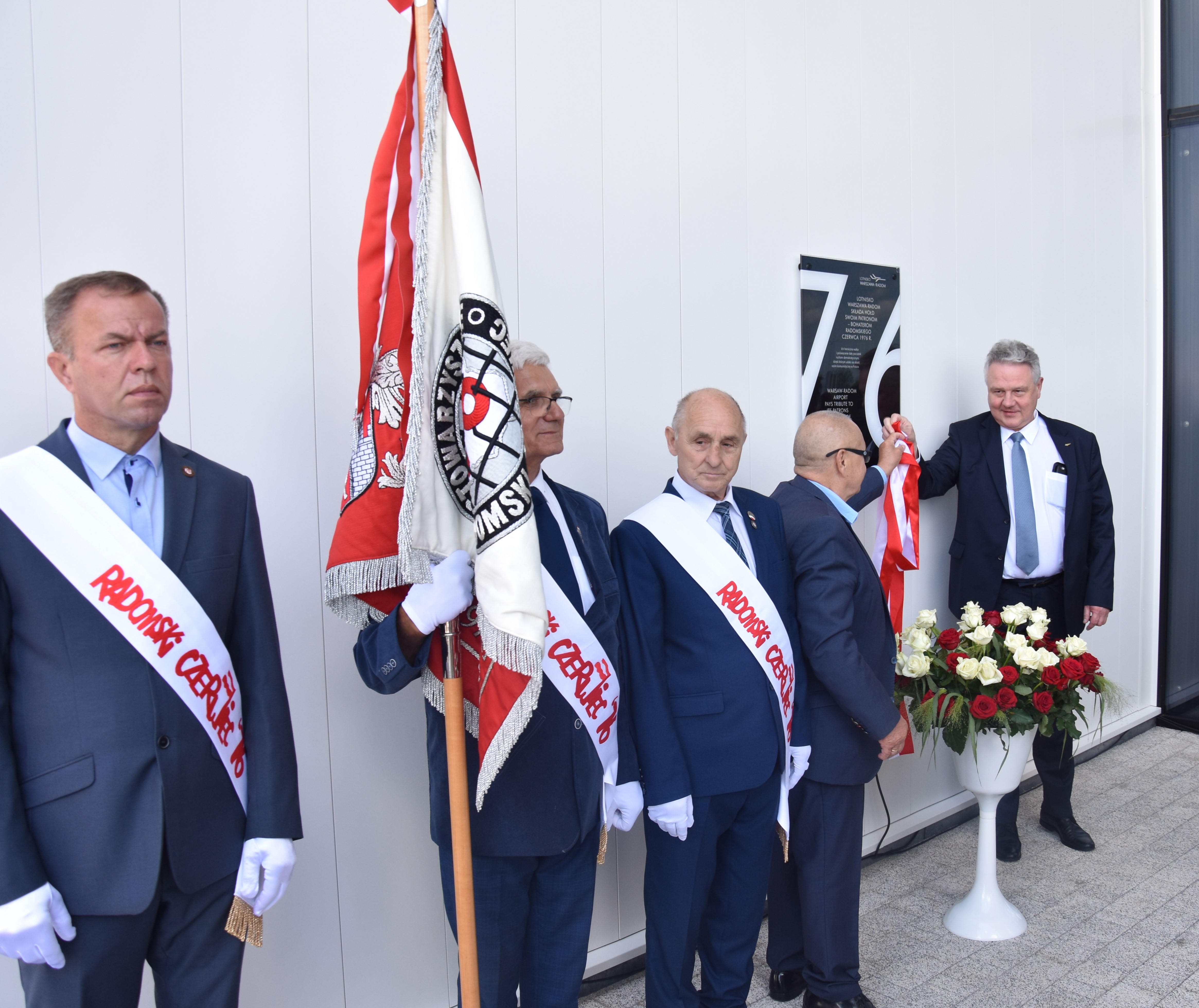 W czwartek, 29 czerwca br. na terenie Portu Lotniczego Warszawa-Radom uroczyście odsłonięto tablicę pamiątkową poświęconą Bohaterom Radomskiego Protestu Robotniczego z czerwca 1976 roku. Na zaproszenie władz Przedsiębiorstwa Polskie Porty Lotnicze S.A. w uroczystości uczestniczyli m.in. Posłowie na Sejm RP: Marek Suski, Andrzej Kosztowniak, Anna Kwiecień, Agnieszka Górska i Dariusz Bąk, Prezes Stowarzyszenia Radomski Czerwiec ‘76 Stanisław Kowalski oraz uczestnicy tamtych strajków. Wojewodę Mazowieckiego Tobiasza Bocheńskiego reprezentował Kierownik Delegatury Mazowieckiego Urzędu Wojewódzkiego w Radomiu Krzysztof Murawski.