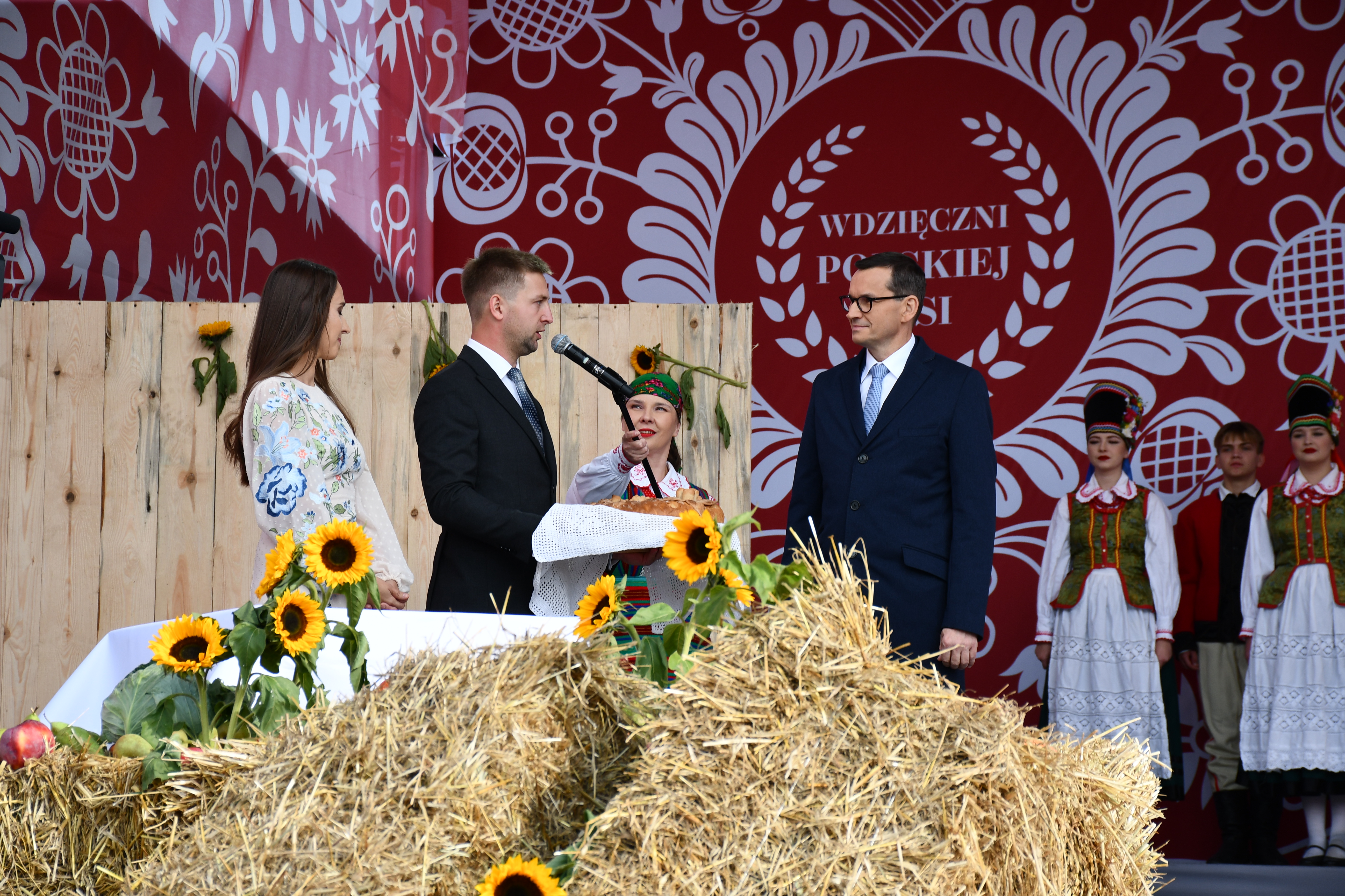 W dalszej części uroczystości odbył się obrzęd żniwny w wykonaniu Regionalnego Zespołu Pieśni i Tańca Wisła, z udziałem Premiera Mateusza Morawieckiego i Starostów Ogólnopolskiego Święta Wdzięczni Polskiej Wsi – Anny i Andrzeja Drewnowskiego. Starostowie przekazali Premierowi chleb dożynkowy, jeden z najważniejszych symboli Święta Plonów.