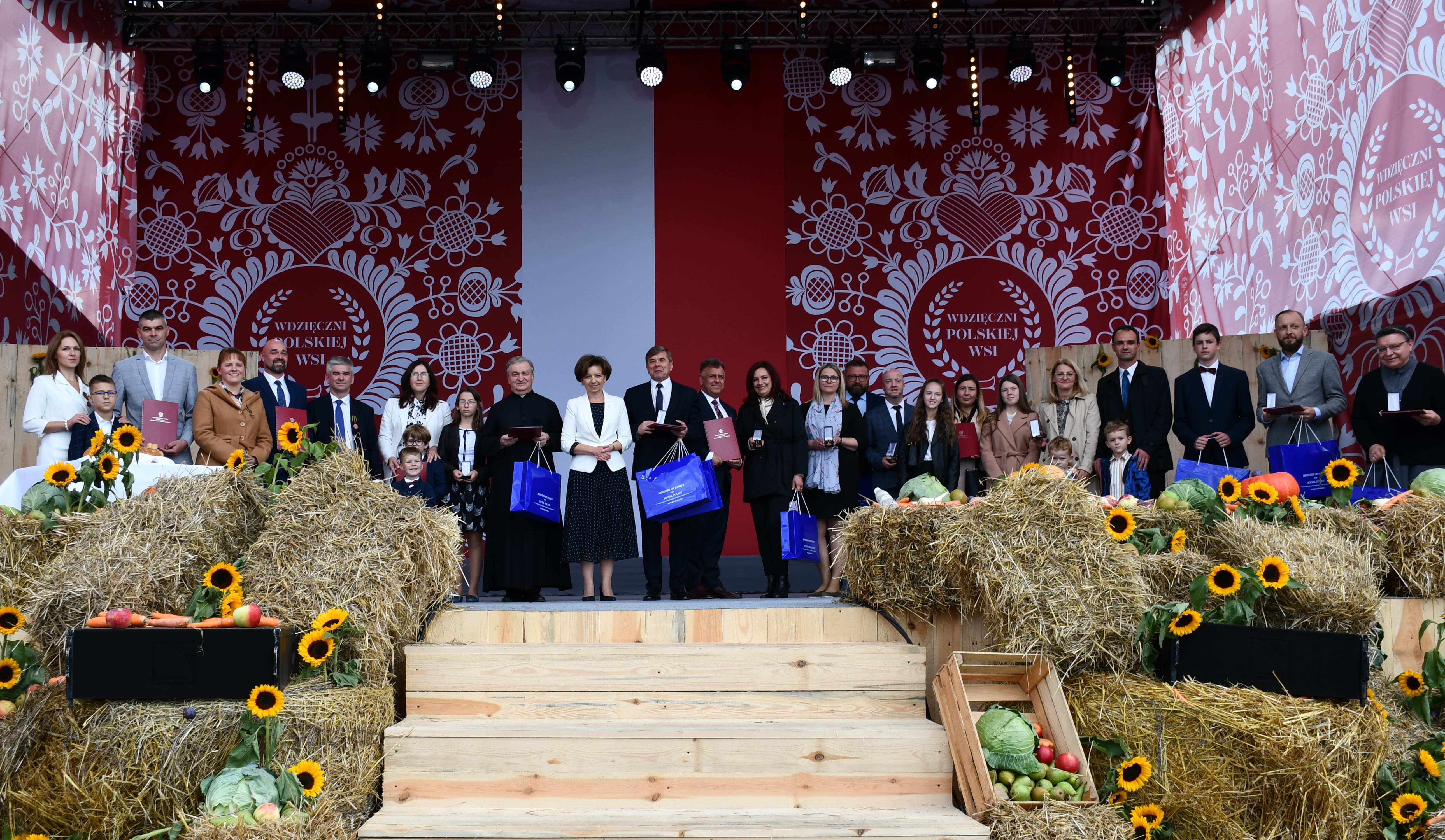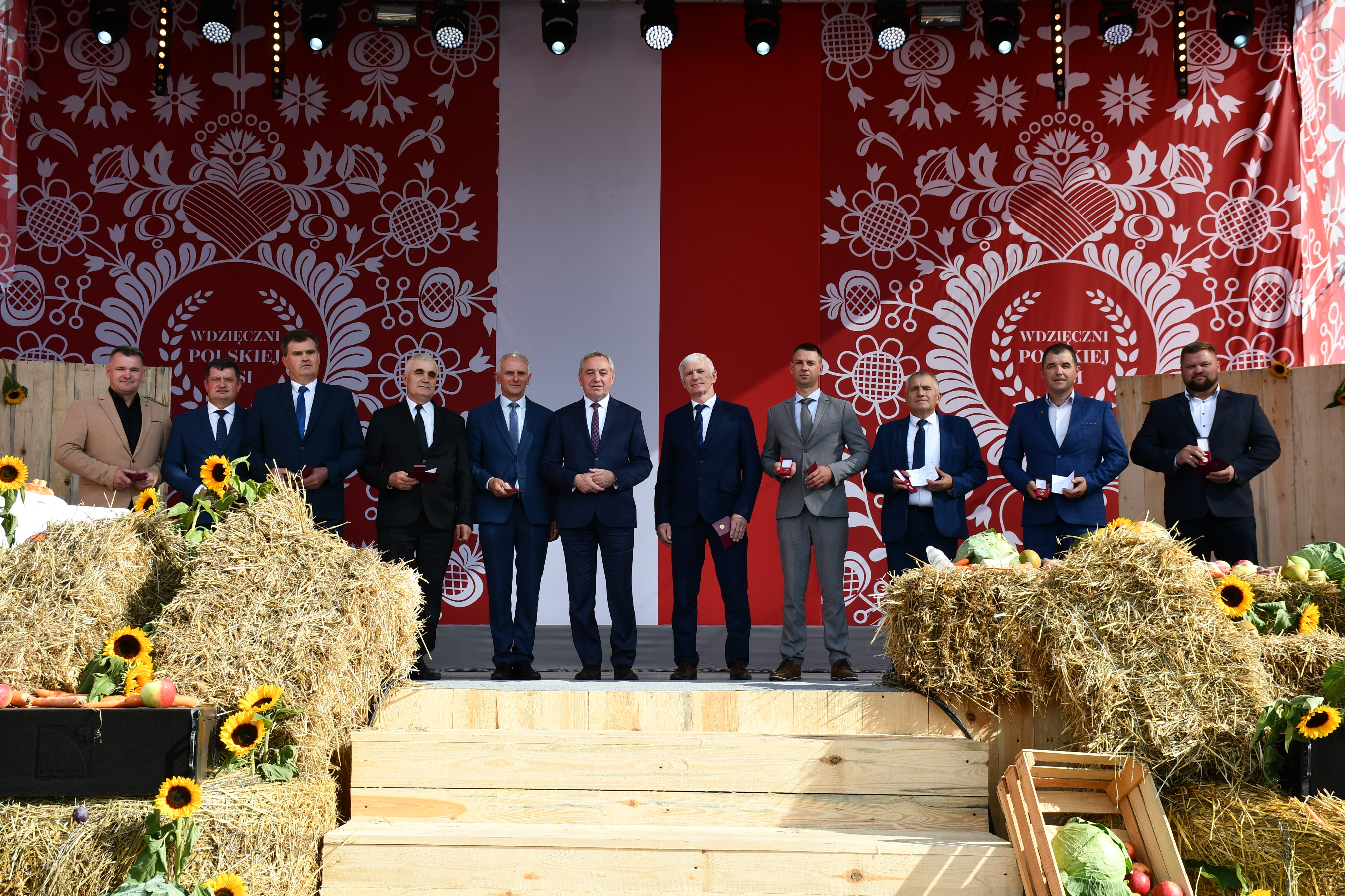 Dożynki to okazja do licznych wyróżnień i podziękowań tym, którzy aktywnie działają na rzecz rozwoju polskiej wsi. Medale z rąk Premiera Mateusza Morawieckiego otrzymało 10 Kół Gospodyń Wiejskich, natomiast odznaczenia „Zasłużony dla Rolnictwa” przekazał 10 wyróżnionym rolnikom Minister Rolnictwa i Rozwoju Wsi, Henryk Kowalczyk. Odznaczone zostały również osoby i rodziny zaangażowane w prace lokalnej społeczności w komitetach parafialnych, kołach gospodyń czy szkołach. Z rąk Ministra Rodziny i Polityki Społecznej Marleny Maląg honorową odznakę „Meritis pro Familia” odebrało 12 wyróżnionych.