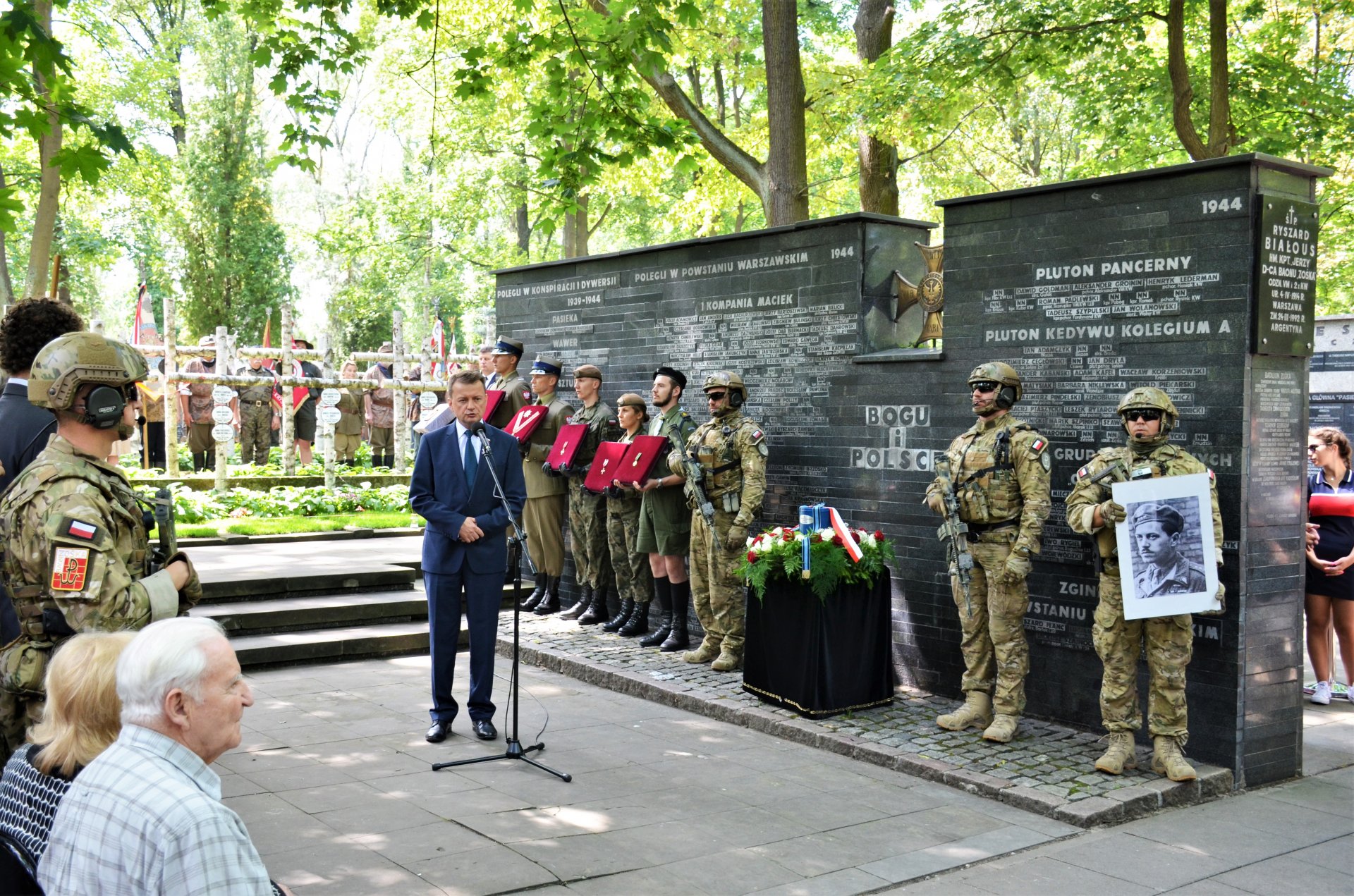 - Postawa pułkownika jest wzorem dla dzisiejszych żołnierzy Wojska Polskiego. Pan pułkownik dobrze zasłużył się Polsce. Chwała bohaterom! - powiedział Mariusz Błaszczak, minister obrony narodowej podczas uroczystości pogrzebowych uczestnika Powstania Warszawskiego, dowódcy Batalionu „Zośka” – płk. Ryszarda Białousa ps. „Jerzy”.