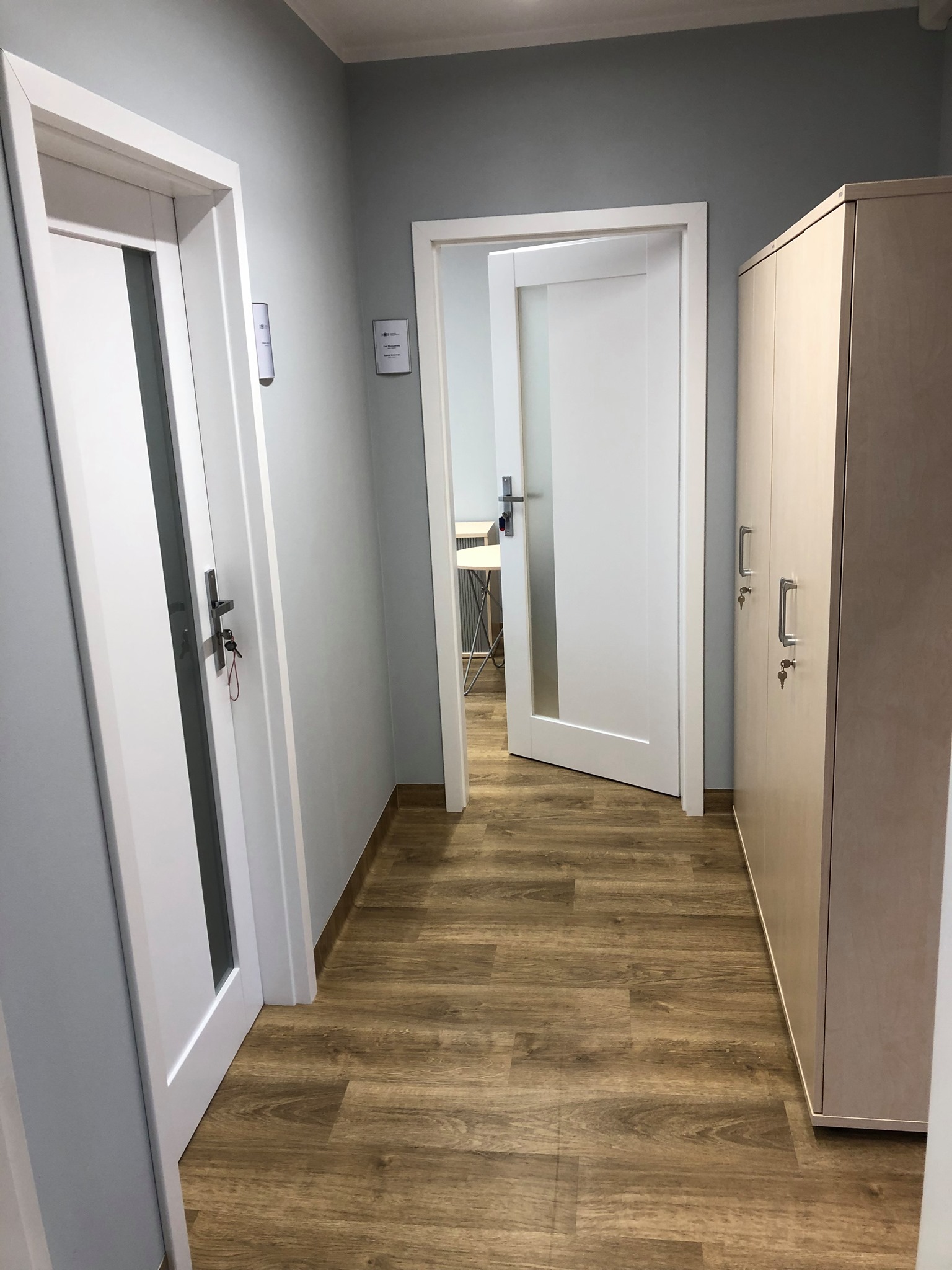 W ramach I etapu prac zmieniono aranżację pomieszczeń m.in. ustawienie ścianek działowych. Wymieniono posadzki oraz przeprowadzono prace malarskie, a także wymieniono sieć teleinformatyczną.