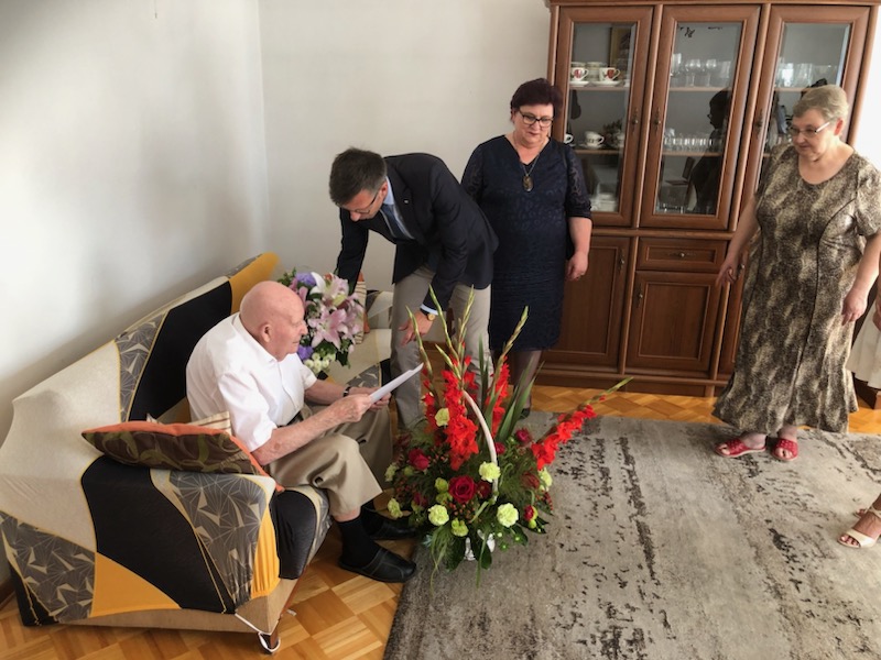 W środę, 16 sierpnia br., Pan Ryszard Karwacki mieszkaniec Ostrołęki obchodził swoje setne urodziny. Jubilata odwiedził Kierownik Delegatury Mazowieckiego Urzędu Wojewódzkiego w Ostrołęce Marcin Grabowski, który przekazał list gratulacyjny od Premiera RP Mateusza Morawieckiego oraz życzenia i kwiaty od Wojewody Mazowieckiego Tobiasza Bocheńskiego.