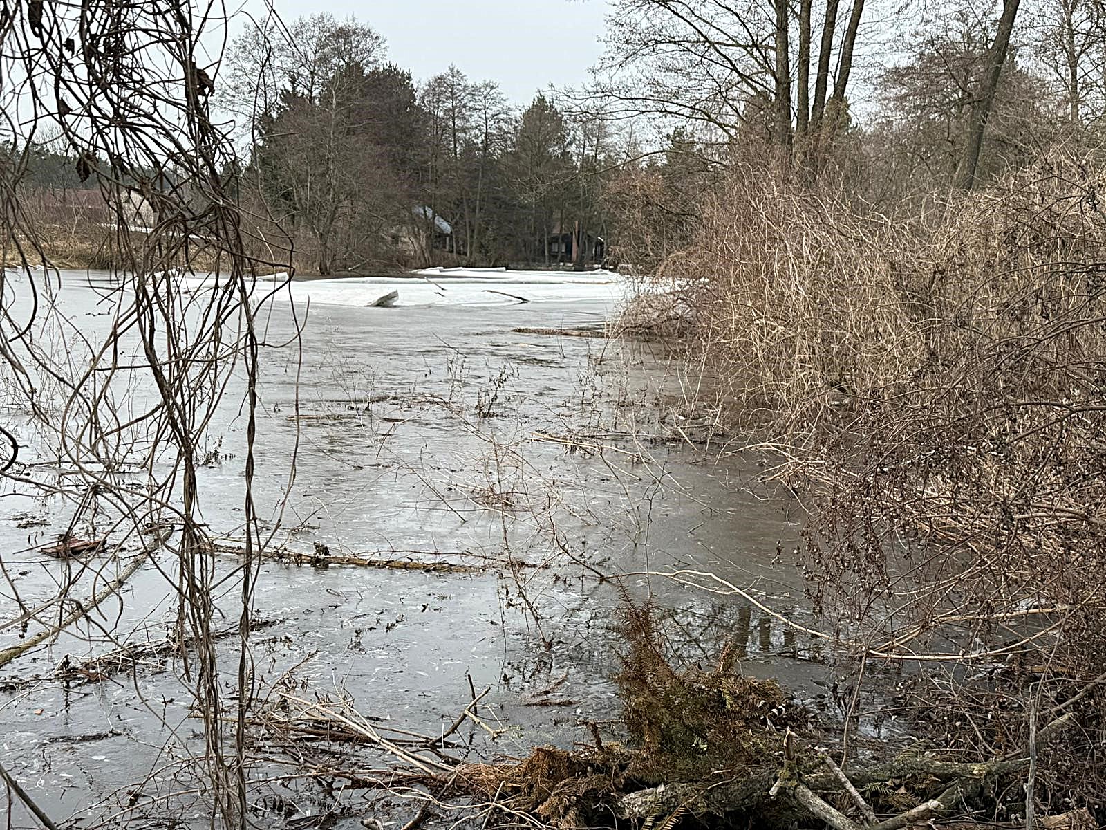 W miejscowościach Trzciniec i Borkowo na rzece Wkra obowiązują stany ostrzegawcze. W Borkowie stan wody wynosi obecnie 267 cm. Zator lodowy zatrzymał się ostatecznie w miejscowości Szczypiorno. Sytuacja w korycie rzeki jest stabilna, brak podpierzeń. Tereny przyległe w miejscu zatoru to tereny zielone, brak budynków mieszkalnych w bezpośrednim sąsiedztwie rzeki.