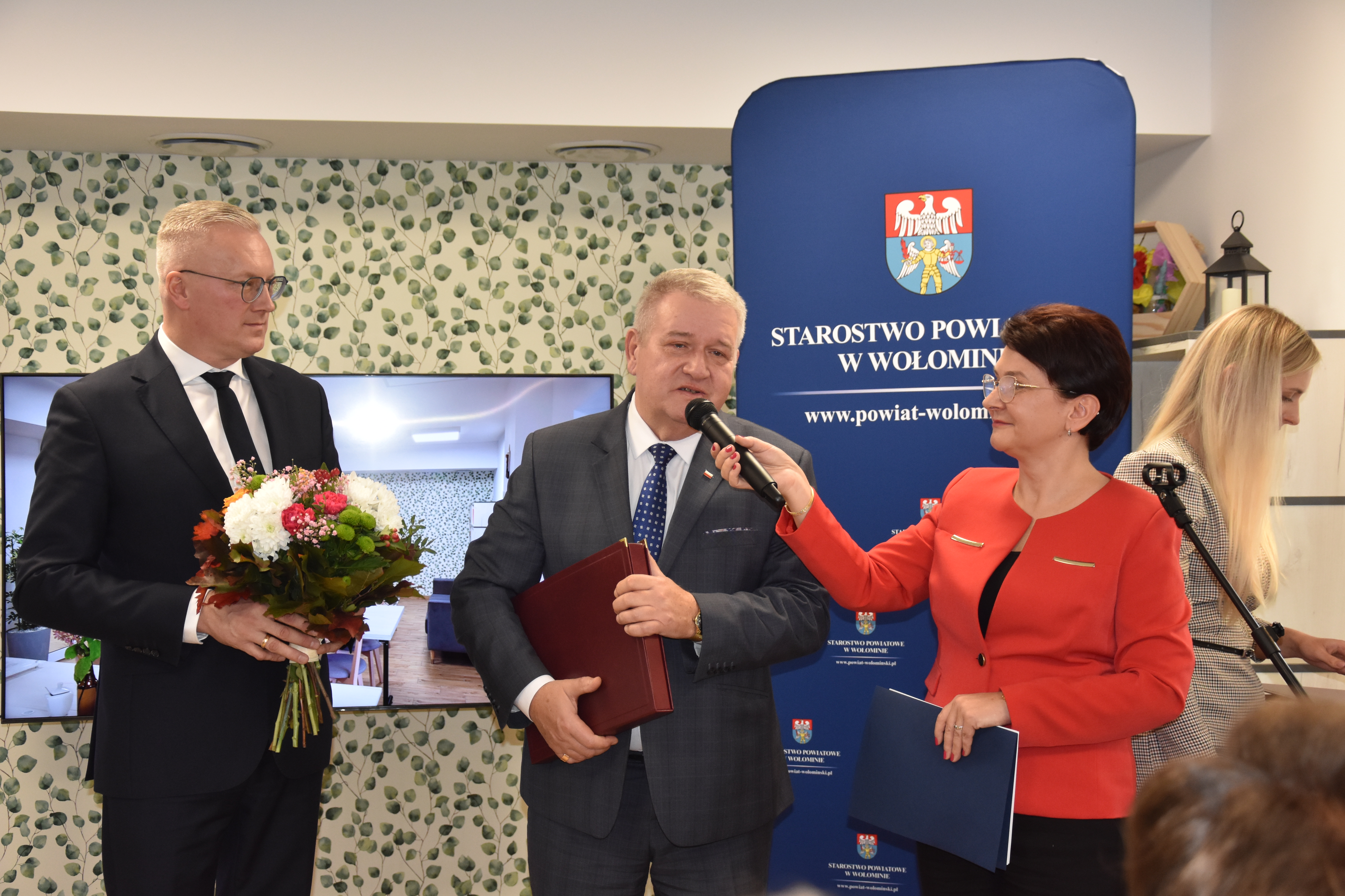 28 października br. Wicewojewoda Mazowiecki Sylwester Dąbrowski wziął udział w uroczystości otwarcia Centrum Opiekuńczo-Mieszkalnego w Kobyłce. W wydarzeniu udział wzięła Minister Rodziny i Polityki Społecznej Marlena Maląg, Wiceminister Rozwoju i Technologii Piotr Uściński oraz Starosta Wołomiński Adam Lubiak.