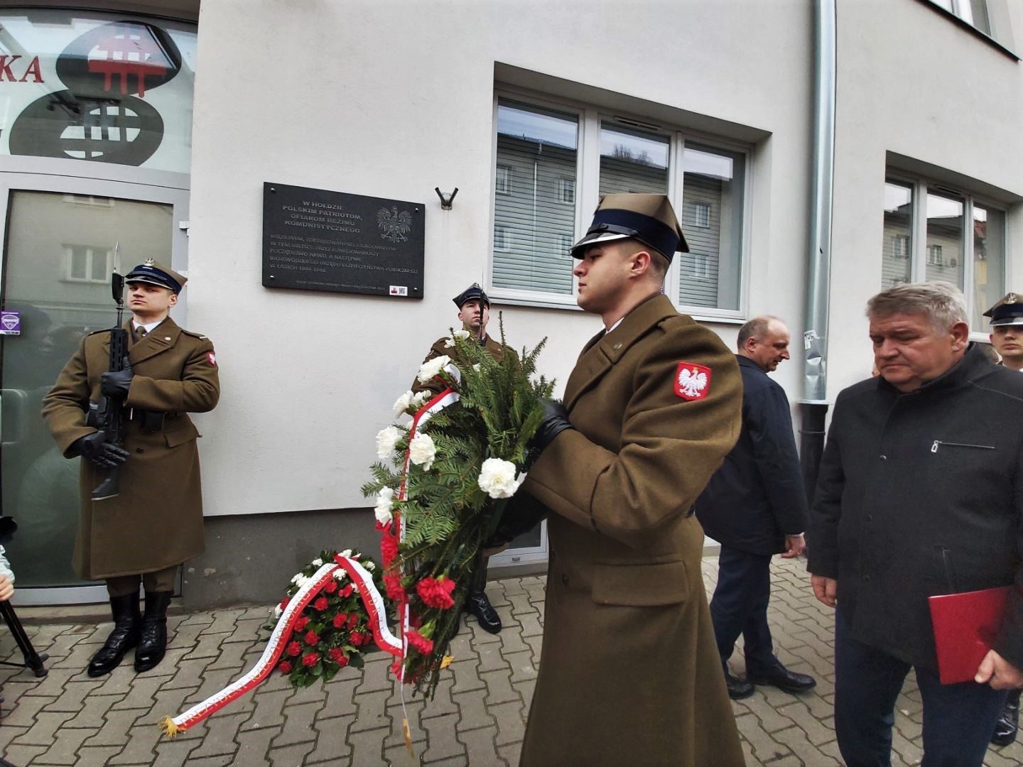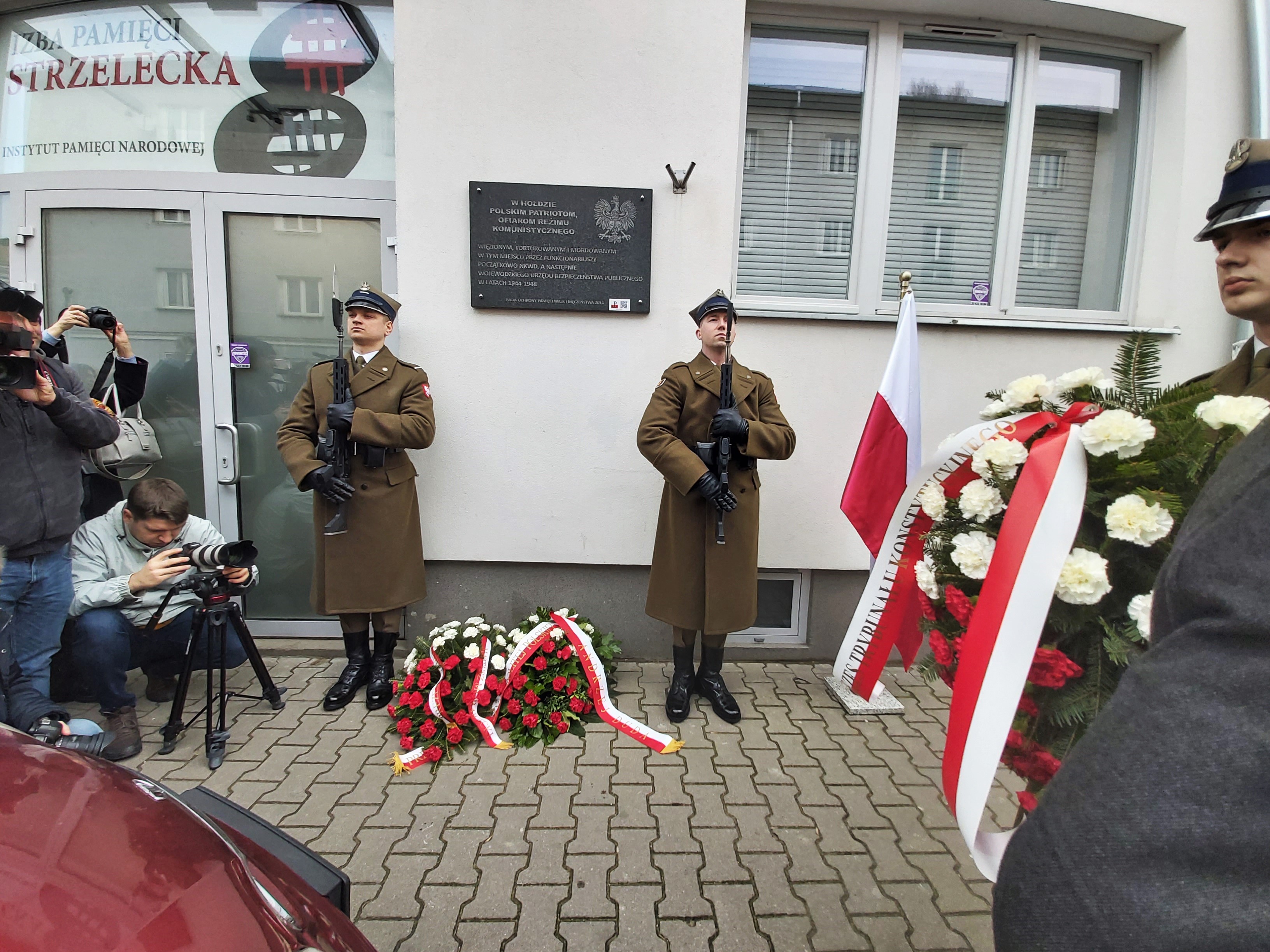 Inauguracja uroczystości rozpoczęła się od ceremonii złożenia kwiatów pod tablicą pamiątkową umieszczoną na fasadzie budynku. Placówka przy ulicy Strzeleckiej 8, składa się z wystawy stałej oraz Izby Pamięci.