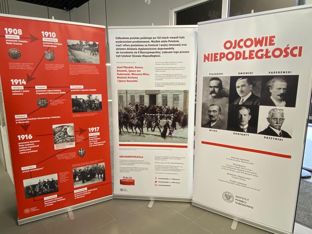 „Ojcowie Niepodległości” to mobilna wystawa prezentująca sylwetki najwybitniejszych działaczy niepodległościowych: Józefa Piłsudskiego, Romana Dmowskiego, Ignacego Jana Paderewskiego, Wincentego Witosa, Wojciecha Korfantego oraz Ignacego Daszyńskiego. Na planszach umieszczone zostały krótkie życiorysy ojców niepodległości oraz archiwalne fotografie, jak również: opis idei wystawy, mapa Polski z lat: 1918-1923, przedstawiająca kształtowanie się polskich granic, przekrój czasowy ukazujący kluczowe wydarzenia procesu odbudowy państwa, a także reprinty pierwszych strona Monitora Polskiego z listopada 1918 r.