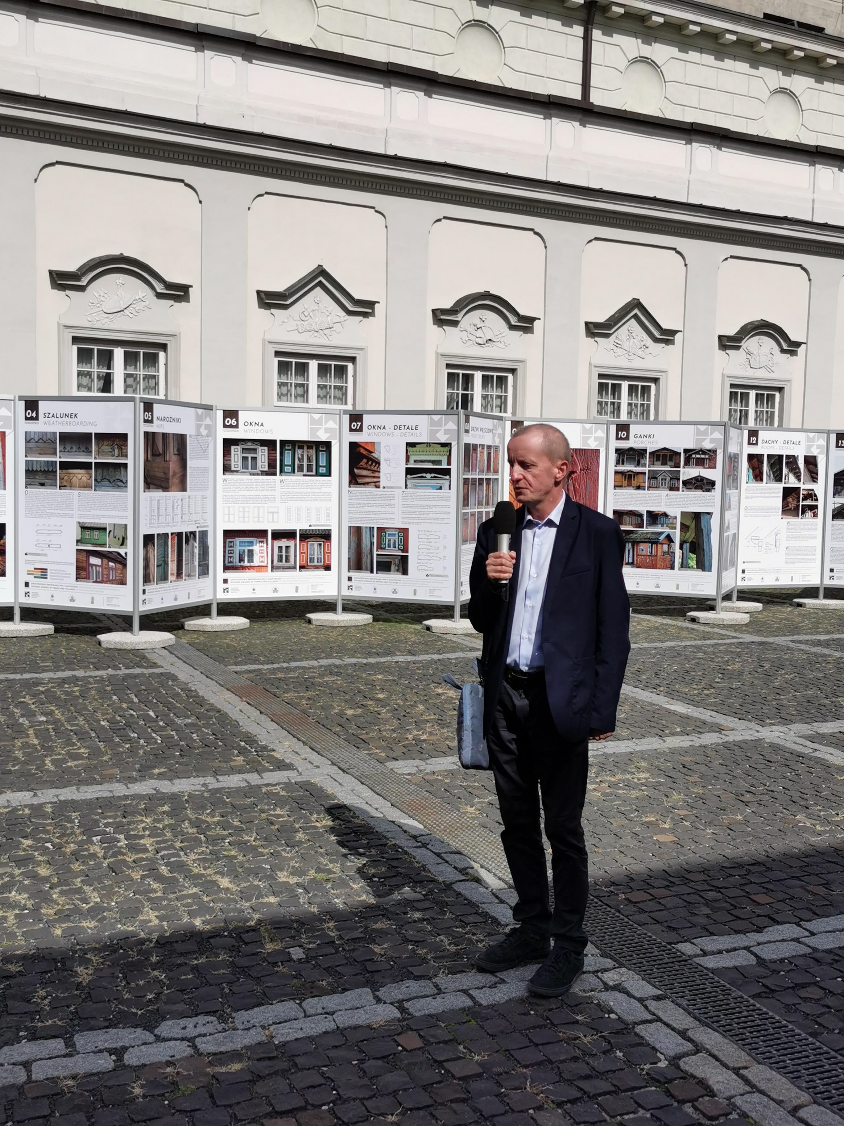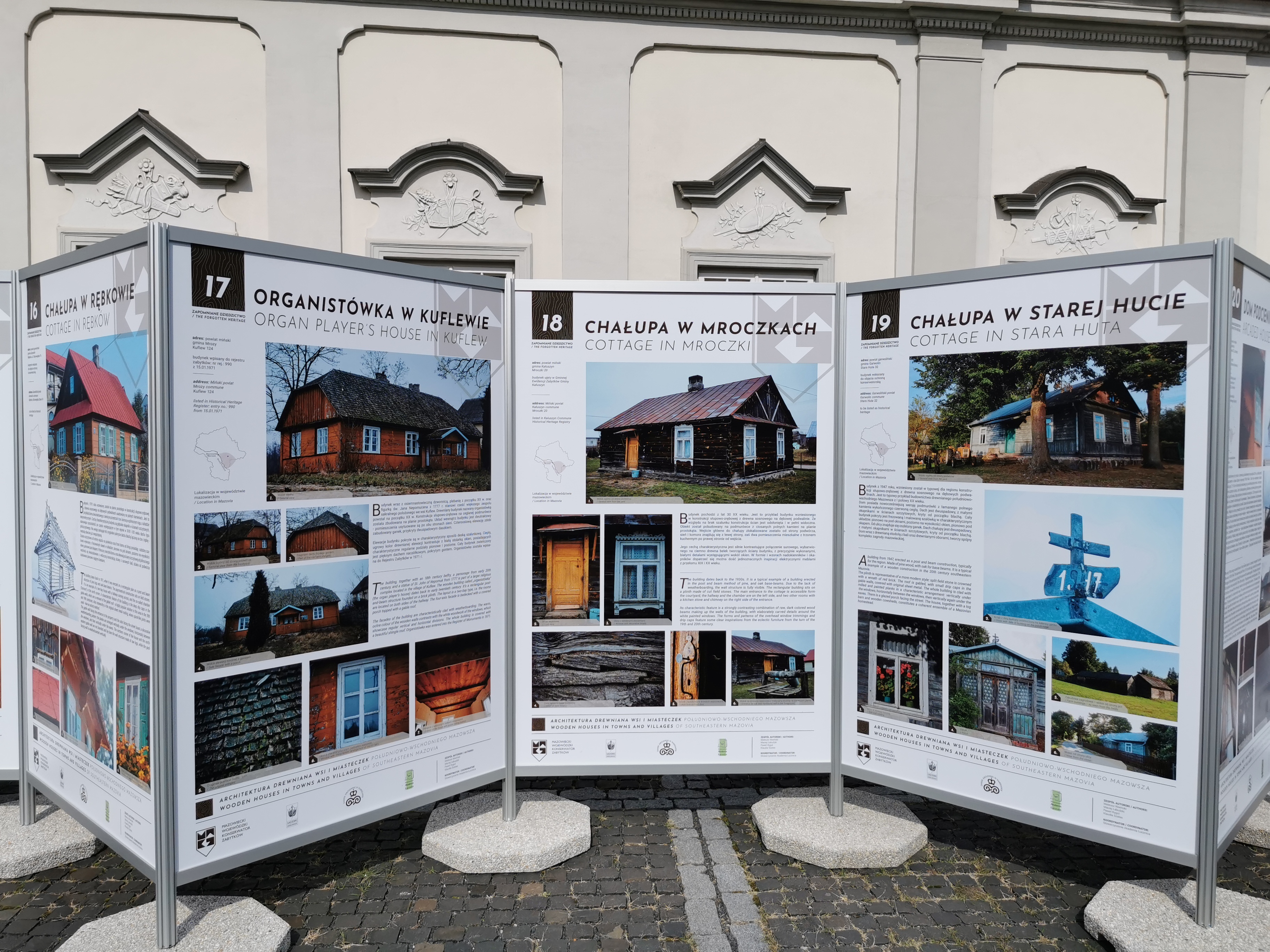 Architektura drewniana wsi i miasteczek południowo-wschodniego Mazowsza jest tematem wystawy zainaugurowanej w piątek, 11 września br. na dziedzińcu Pałacu Pod Blachą (Zamek Królewski). Ekspozycję, utworzoną w ramach Europejskich Dni Dziedzictwa otworzył prof. Jakub Lewicki, Mazowiecki Wojewódzki Konserwator Zabytków. Ekspozycja będzie dostępna dla zwiedzających do 30 października 2020 r. Jej organizatorem jest Mazowiecki Wojewódzki Konserwator Zabytków.
