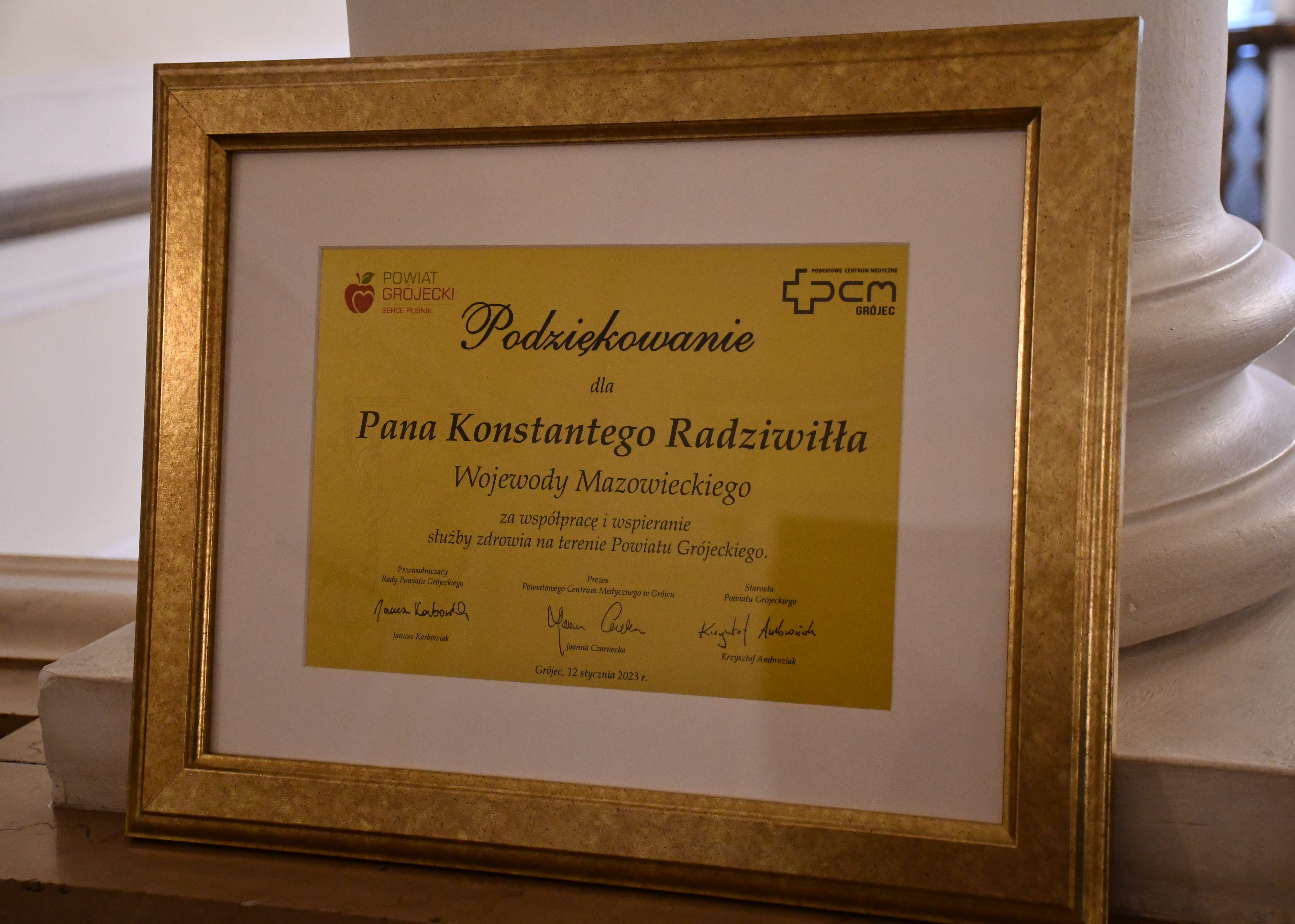 12 stycznia br. w Powiatowym Centrum Medycznym w Grójcu miało miejsce uroczyste otwarcie zmodernizowanego bloku operacyjnego. W wydarzeniu, w imieniu Wojewody Mazowieckiego Konstantego Radziwiłła, uczestniczył Dyrektor Wydziału Zdrowia w Mazowieckim Urzędzie Wojewódzkim w Warszawie Tomasz Sławatyniec, który odebrał podziękowania dla Wojewody za współpracę i wspieranie służby zdrowia na terenie Powiatu Grójeckiego.