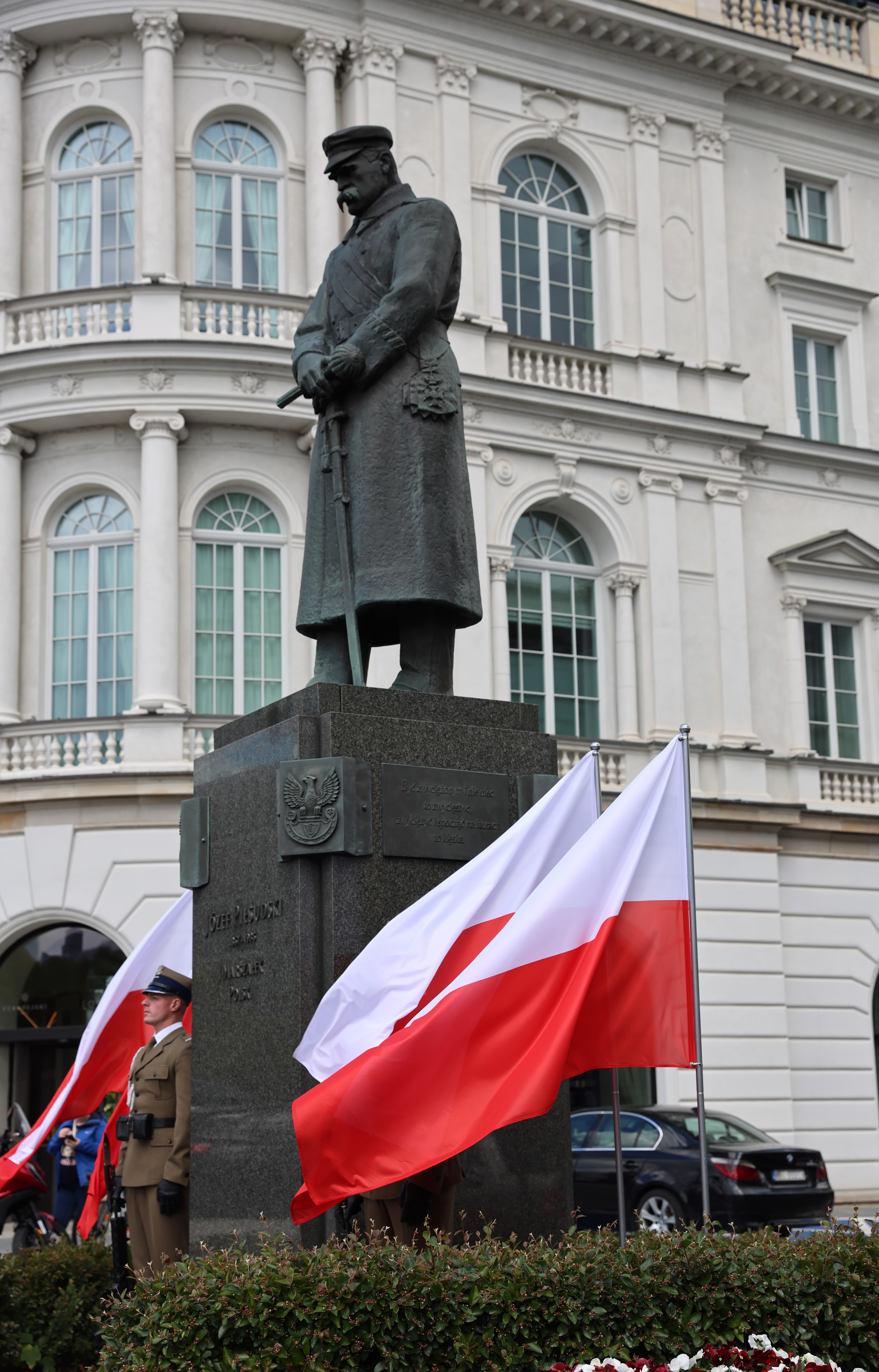 Na Placu Piłsudskiego, przed Grobem Nieznanego Żołnierza, odbyły się uroczystości upamiętniające Józefa Piłsudskiego – Pierwszego Marszałka Polski, którego działania w 1918 roku były fundamentem odzyskania niepodległości i budowy struktur młodego państwa. Po uroczystej zmianie posterunku honorowego, nastąpiła ceremonia złożenia wieńców na płycie Grobu Nieznanego Żołnierza oraz przed pomnikiem Marszałka Józefa Piłsudskiego, przy budynku Dowództwa Garnizonu Warszawa.