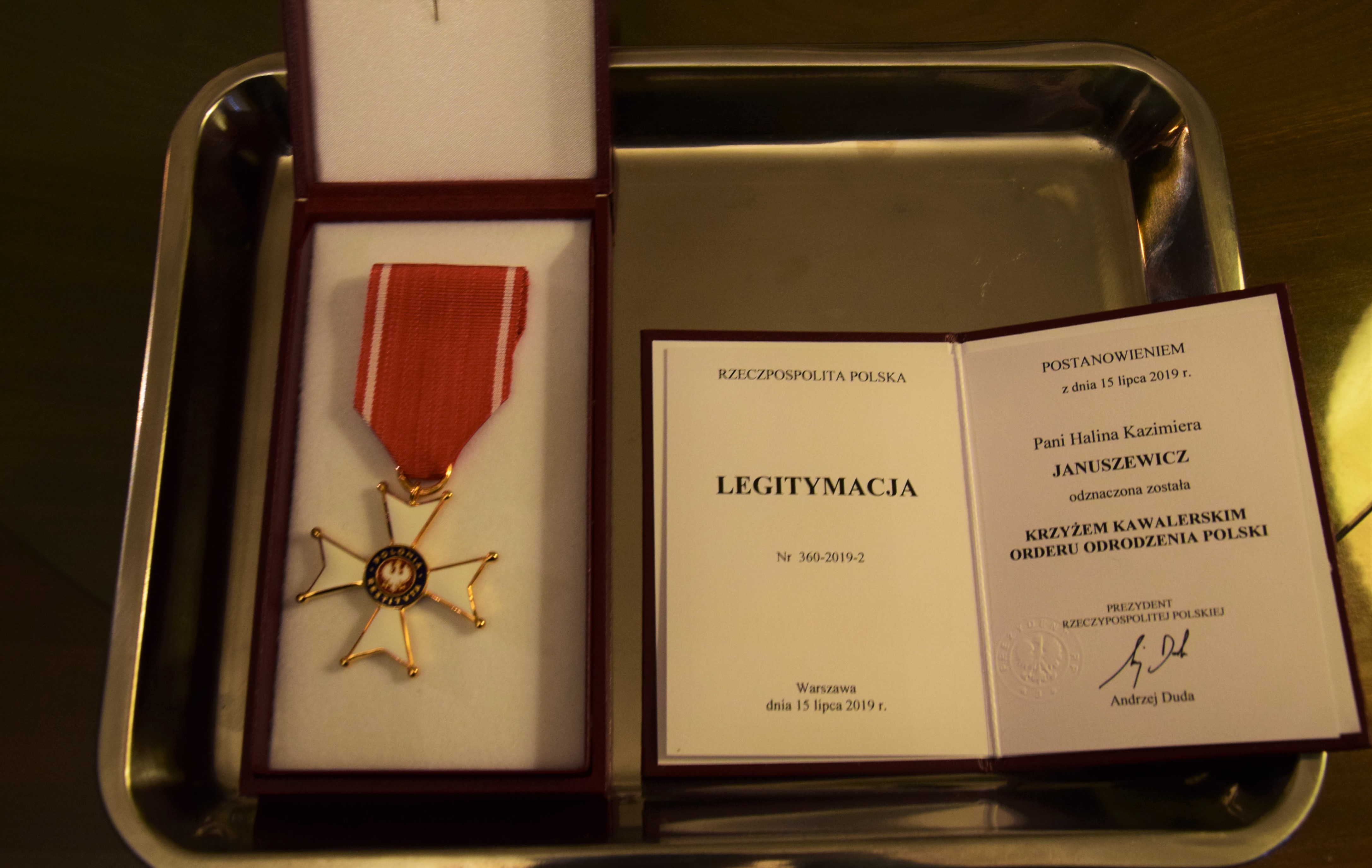 23 grudnia br. Wojewoda Mazowiecki Konstanty Radziwiłł na mocy Postanowienia Prezydenta Rzeczpospolitej Polskiej Pana Andrzeja Dudy uhonorował Panią Halinę Januszewicz Krzyżem Kawalerskim Orderu Odrodzenia Polski.