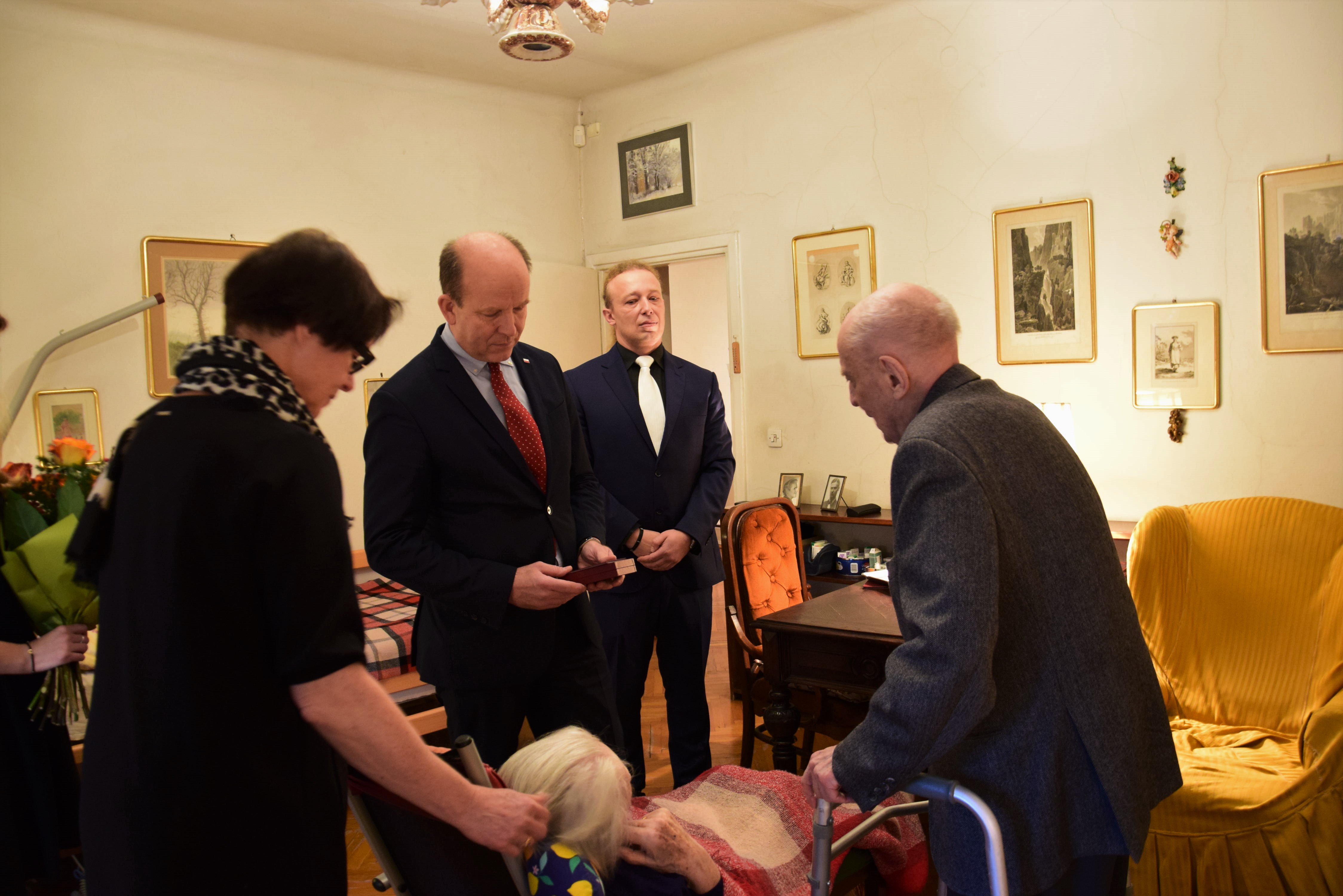 Wojewoda Mazowiecki Konstanty Radziwiłł 23 grudnia br. w imieniu Prezydenta Rzeczpospolitej Polskiej wręczył Krzyż Kawalerski Orderu Odrodzenia Polski za wybitne zasługi dla niepodległości Rzeczpospolitej Polskiej Pani Halinie Januszewicz. Pani Halina w czasach okupacji wykazała się bohaterstwem i patriotyczną postawą godną naśladowania. To bardzo wzruszający i ważny moment. Cieszę się, że mam możliwość wręczenia Orderu osobiście. - powiedział Wojewoda Mazowiecki Konstanty Radziwiłł podczas wręczenia Orderu. W uroczystościach wzięli udział mąż, syn oraz synowa Pani Haliny.