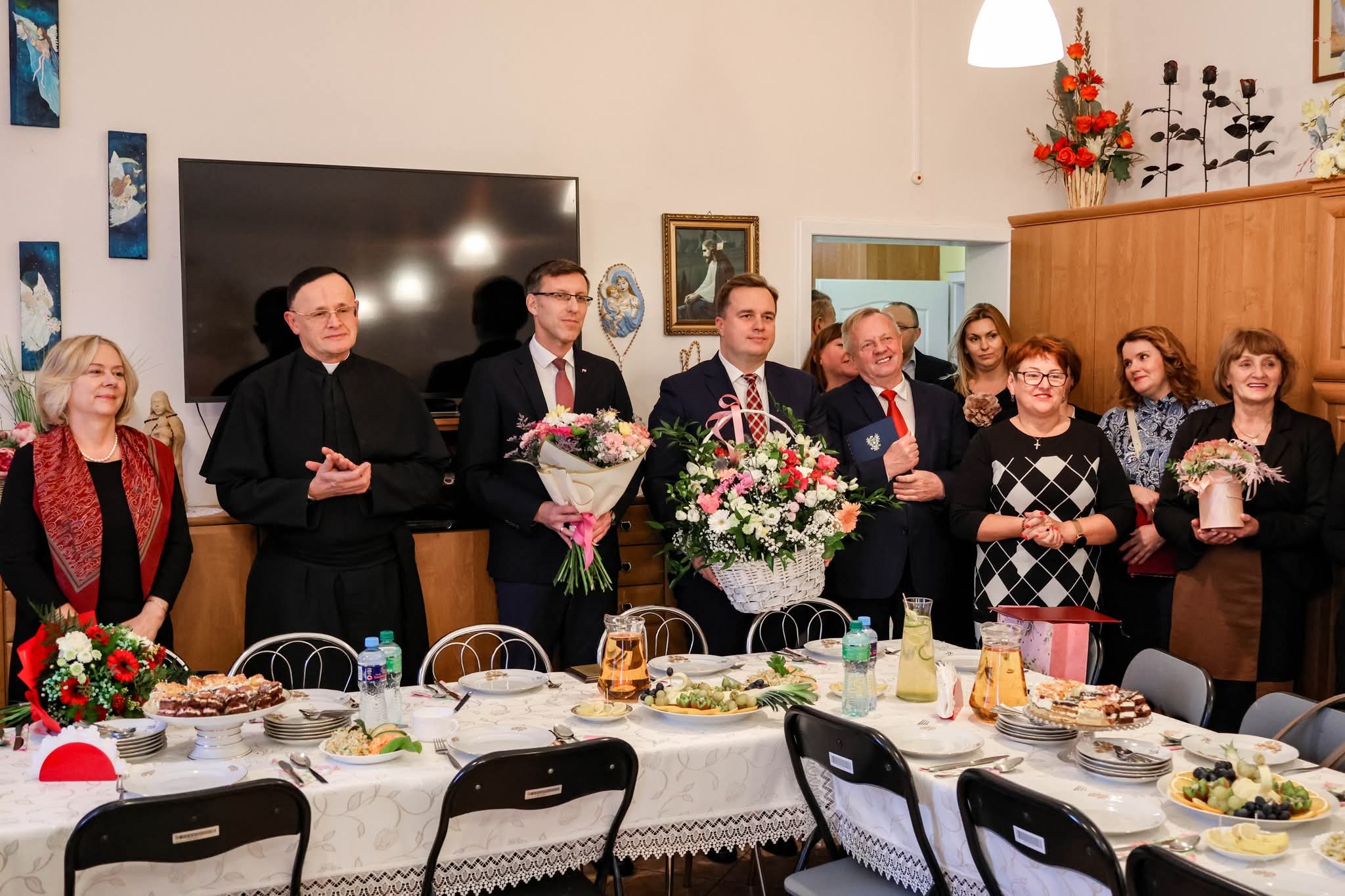 W uroczystości uczestniczyli także: Prezydent Ostrołęki Paweł Niewiadomski, kierownik Urzędu Stanu Cywilnego Hanna Kuć, Dyrektor DPS PCK Bożena Podbielska, licznie zaproszeni goście oraz rodzina jubilatki