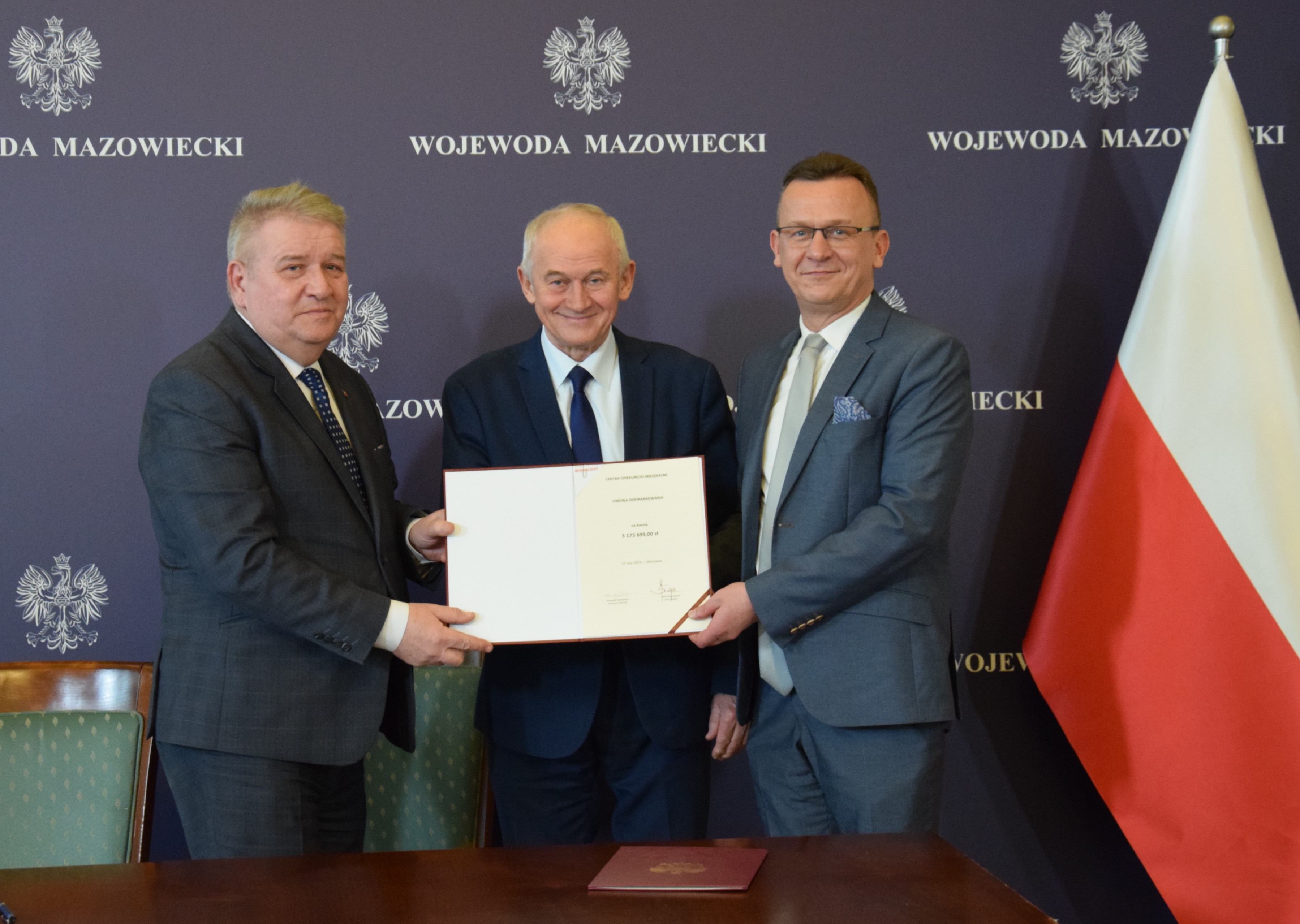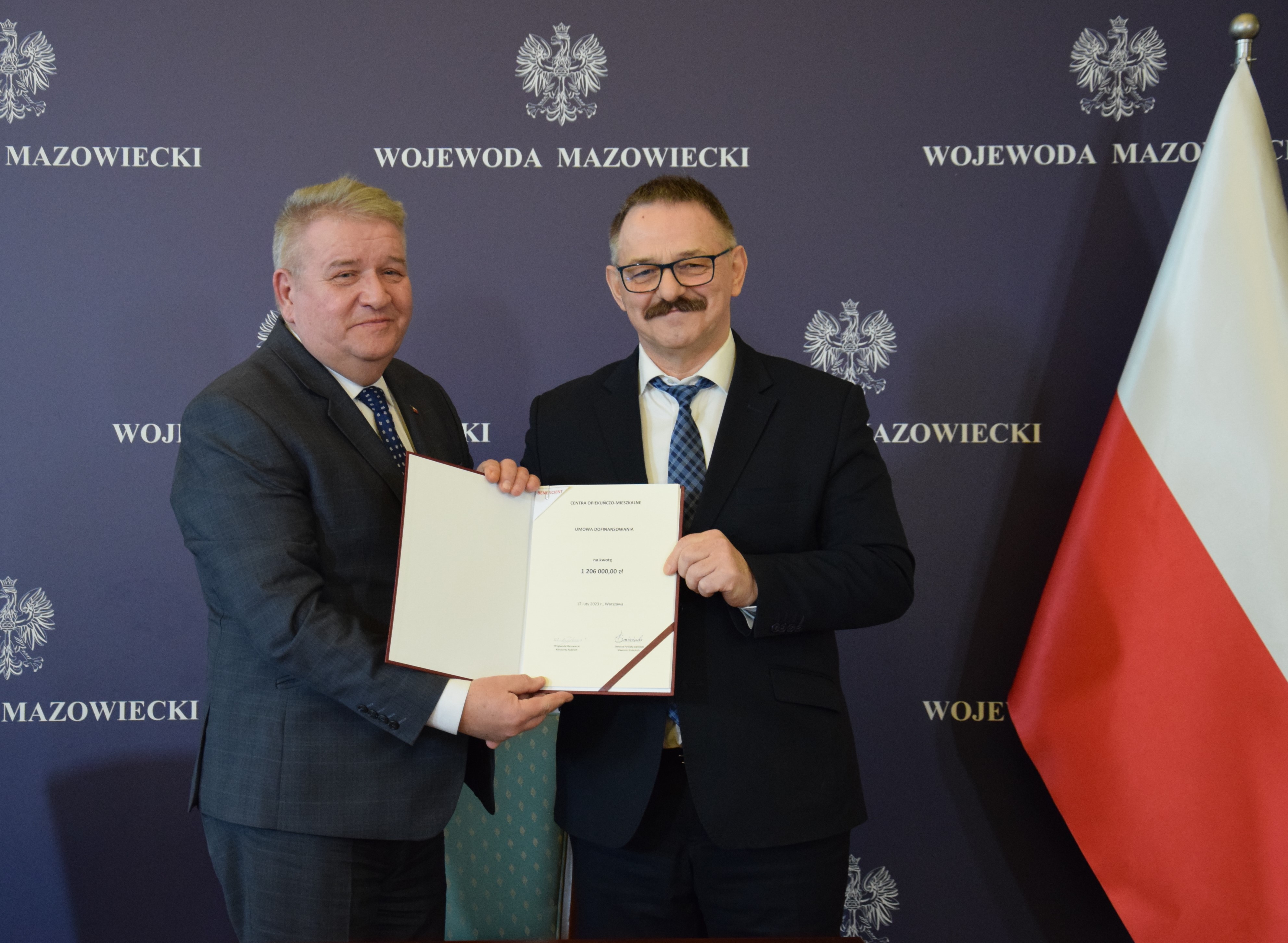 Wicewojewoda Mazowiecki Sylwester Dąbrowski 17 lutego br. podpisał trzy umowy z przedstawicielami Powiatów Mławskiego i Lipskiego oraz Gminy Zaręby Kościelne na funkcjonowanie Centrów opiekuńczo-mieszkalnych w 2023 roku, na łączną kwotę ponad 3,2 mln zł. Podczas uroczystości zostały podpisane także dwie umowy ze środków Funduszu Solidarnościowego w zakresie Modułu I, tj. na utworzenie centrów opiekuńczo-mieszkalnych, z Miastem Przasnysz oraz Gminą Skórzec na łączną kwotę ponad 6,4 mln zł. W wydarzeniu, które odbyło się w Mazowieckim Urzędzie Wojewódzkim w Warszawie, uczestniczył Poseł na Sejm RP Krzysztof Tchórzewski.