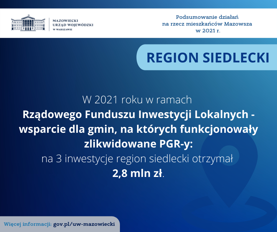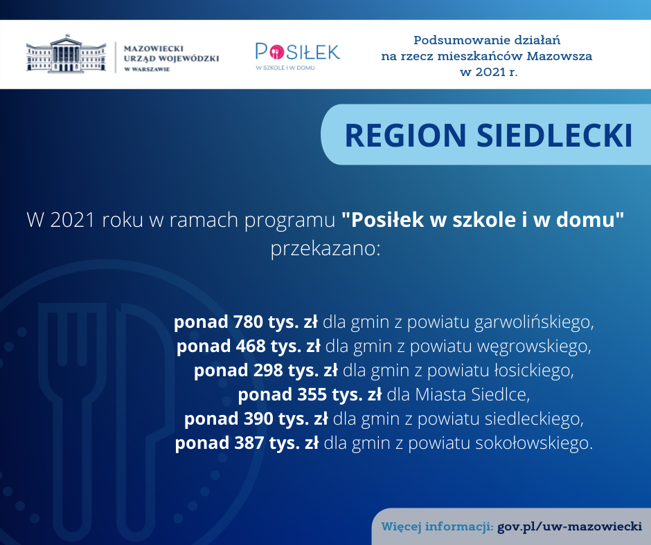 Podsumowanie działań na rzecz mieszkańców województwa mazowieckiego w 2021 roku – region siedlecki