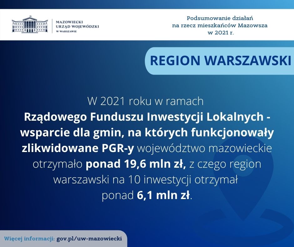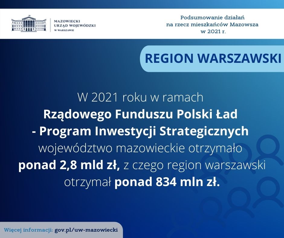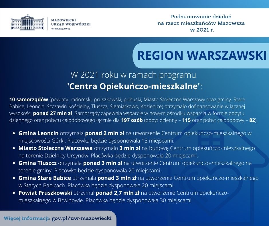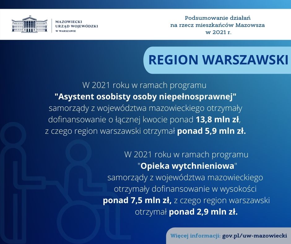 Podsumowanie działań na rzecz mieszkańców województwa mazowieckiego w 2021 roku – region warszawski