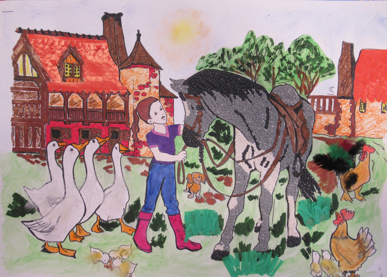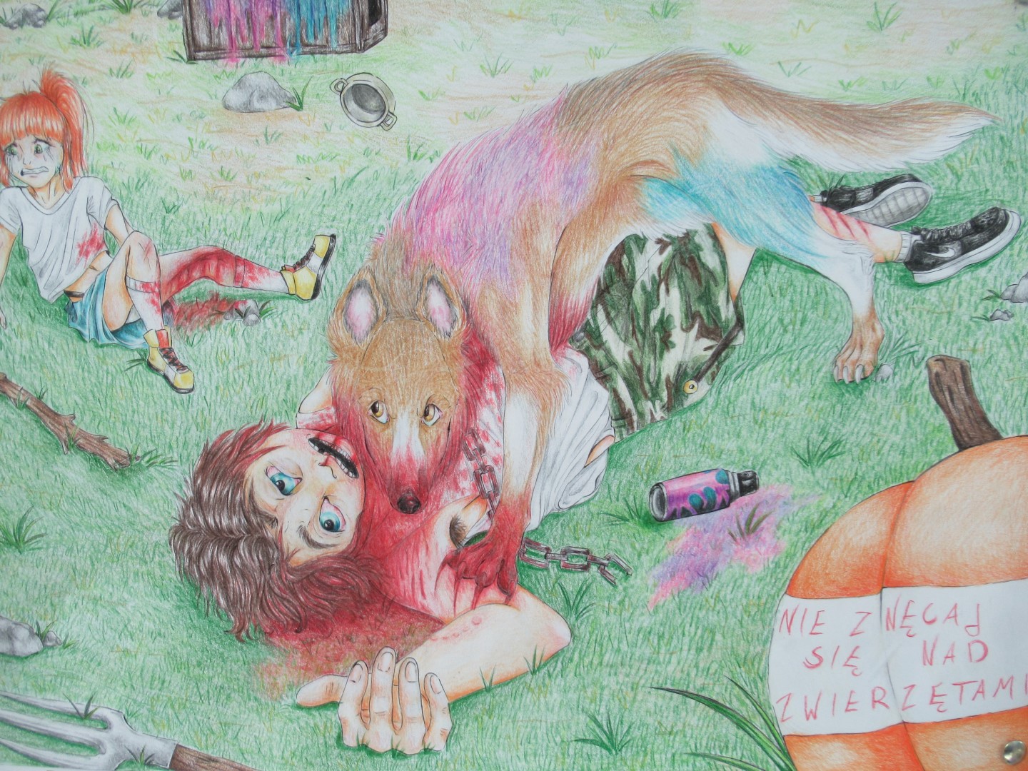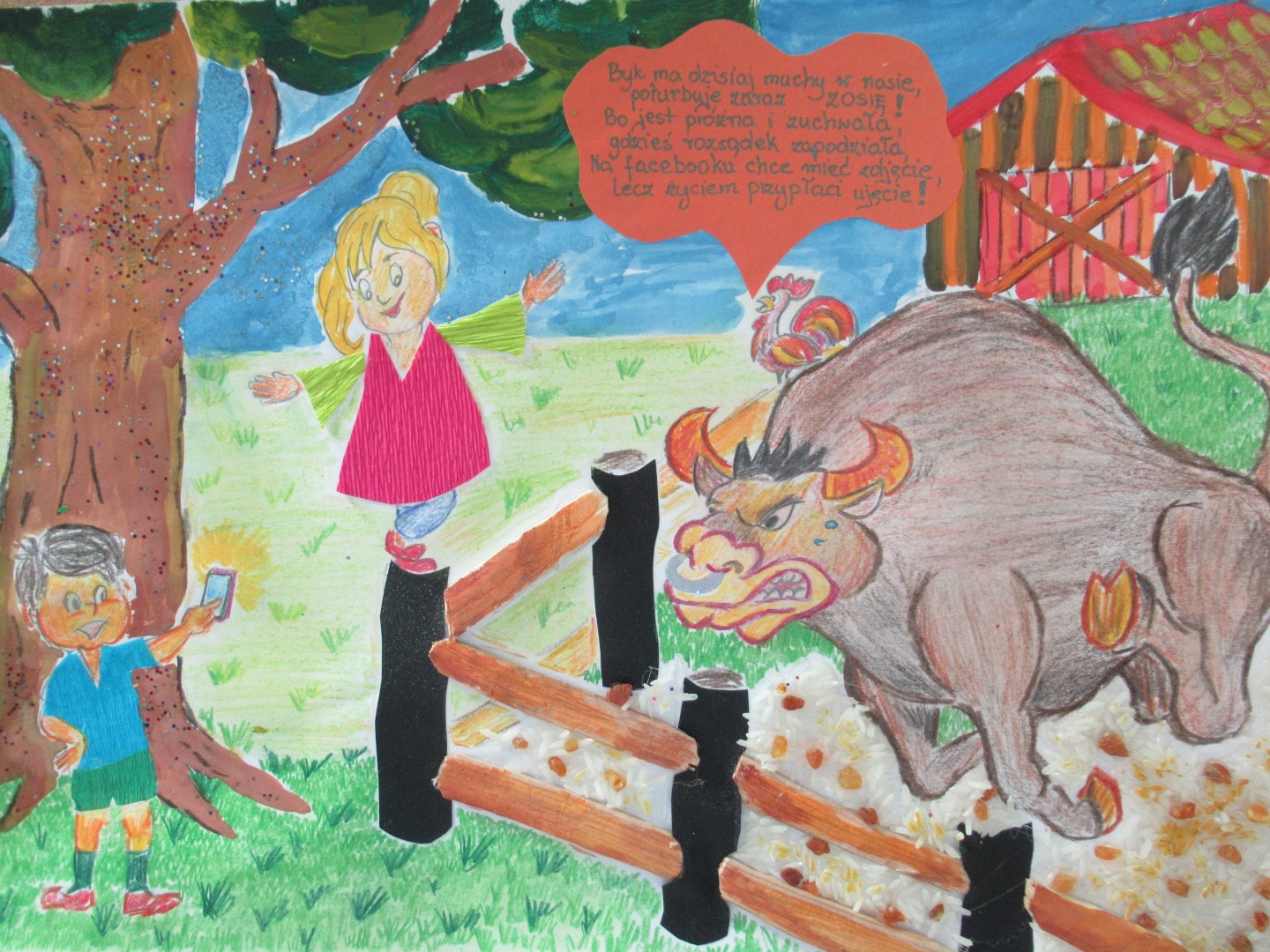 Aby przystąpić do Konkursu należało wykonać pracę plastyczną w formacie A3, w dowolnej technice na temat zapobiegania wypadkom związanym z obecnością zwierząt w gospodarstwach.