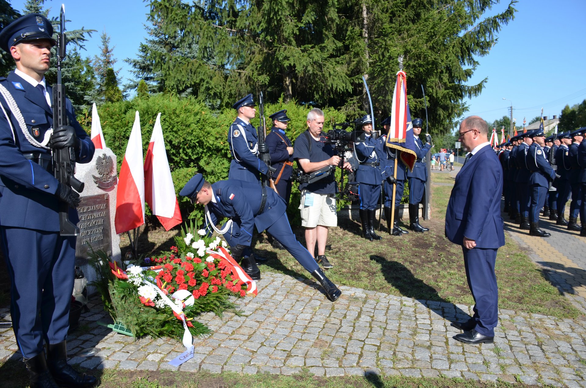 Ceremonii składania kwiatów towarzyszyła policyjna asysta honorowa oraz sygnalista.