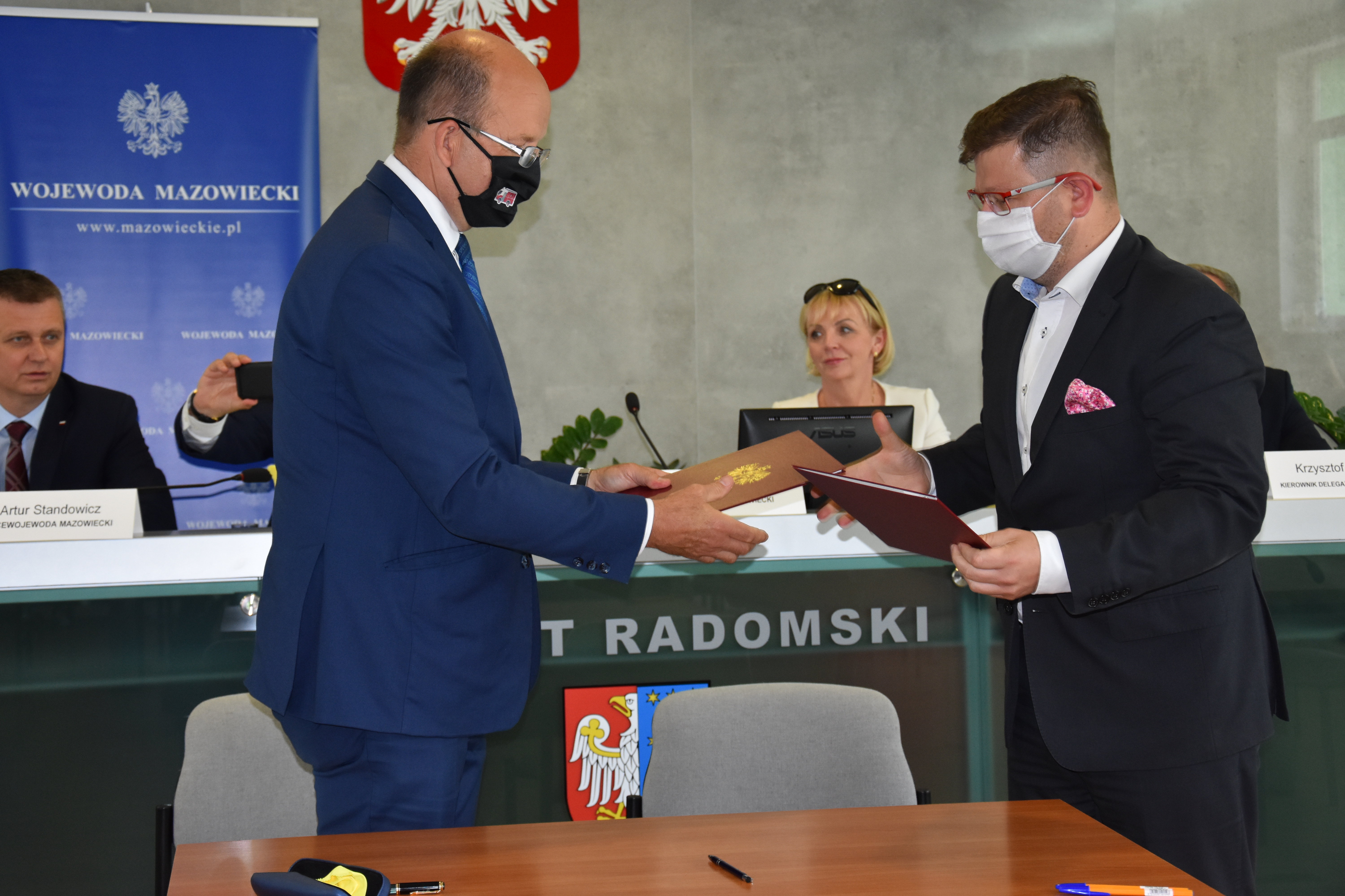 Uroczystość podpisania umów na dopłaty do realizacji zadań przez samorządy z regionu radomskiego odbyła się w Starostwie Powiatowym w Radomiu. W spotkaniu uczestniczyli m.in.: Artur Standowicz Wicewojewoda Mazowiecki, Posłowie na Sejm RP Anna Kwiecień, Marek Suski, Andrzej Kosztowniak, Starosta Radomski Waldemar Trelka oraz Krzysztof Murawski, Kierownik delegatury Mazowieckiego Urzędu Wojewódzkiego w Radomiu.