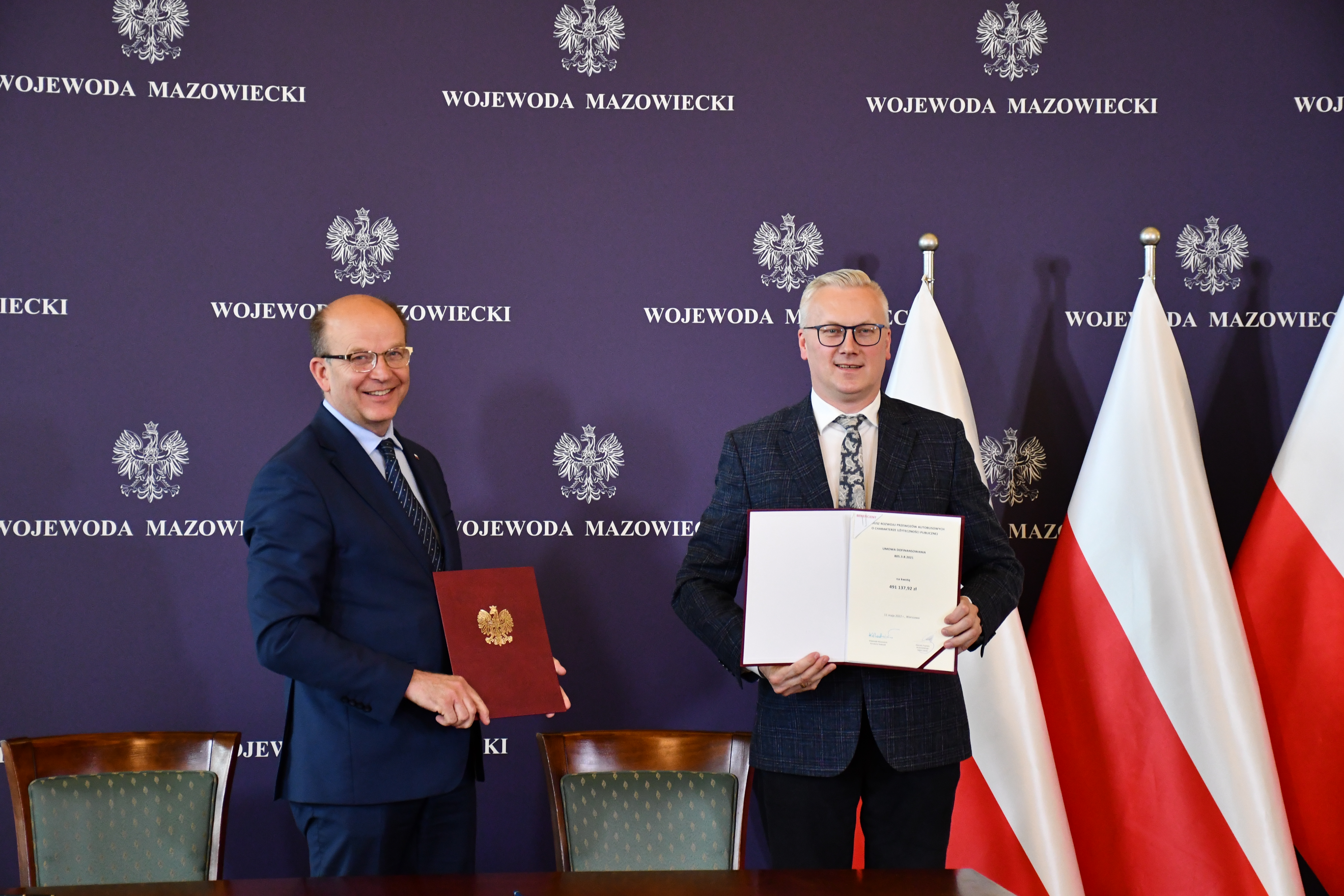 Wojewoda Mazowiecki Konstanty Radziwiłł wziął udział w uroczystości towarzyszącej podpisaniu kolejnych 22 umów z przedstawicielami 12 samorządów z regionów warszawskiego, ciechanowskiego, ostrołęckiego, radomskiego, płockiego oraz siedleckiego na objęcie w 2022 r. dopłatą zadań organizatora transportu publicznego ze środków Funduszu Rozwoju Przewozów Autobusowych. Na ich mocy samorządy te otrzymają dopłatę o łącznej wysokości ponad 21,4 mln zł na uruchomienie 160 połączeń lokalnych, o łącznej długości 5995,1 km. Wydarzenie odbyło się 11 maja br. w Mazowieckim Urzędzie Wojewódzkim w Warszawie. Uczestniczyli w nim również m.in. Poseł na Sejm RP Anna Cicholska, Szef Gabinetu Politycznego Ministra Spraw Wewnętrznych i Administracji Michał Prószyński oraz Wicewojewoda Mazowiecki Artur Standowicz.