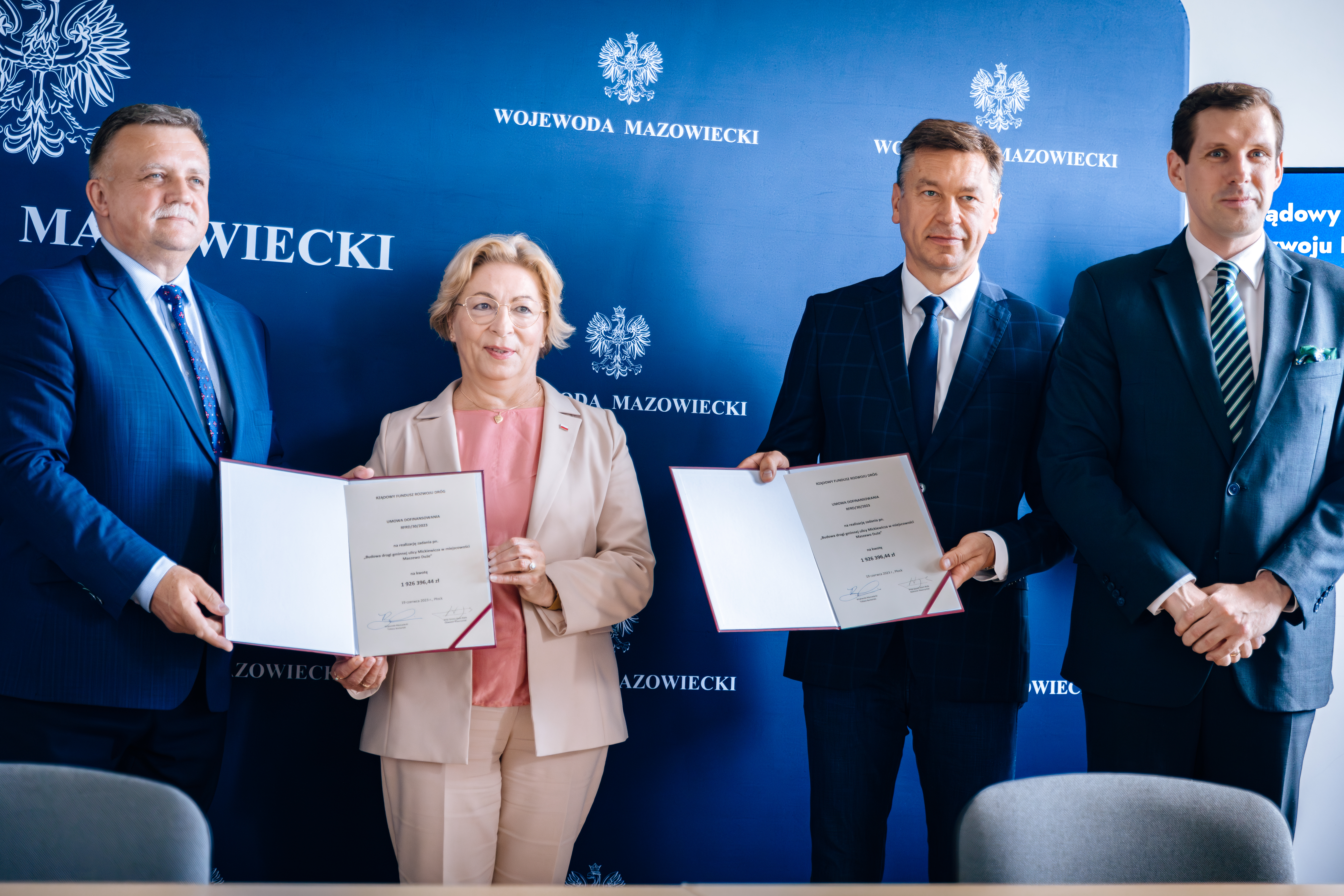 Ponad 26,1 mln zł otrzymają samorządy z województwa mazowieckiego, z regionów: warszawskiego i płockiego, w ramach Rządowego Funduszu Rozwoju Dróg. Łączna długość dróg modernizowanych w ramach podpisanych umów to ponad 8,2 km. Uroczystość podpisania umów z udziałem Poseł na Sejm RP Anny Cicholskiej, Marka Martynowskiego Senatora RP, Wojewody Mazowieckiego Tobiasza Bocheńskiego oraz Marleny Mazurskiej Kierownika Delegatury MUW w Płocku odbyła się 19 czerwca br. w Delegaturze Mazowieckiego Urzędu Wojewódzkiego w Płocku.