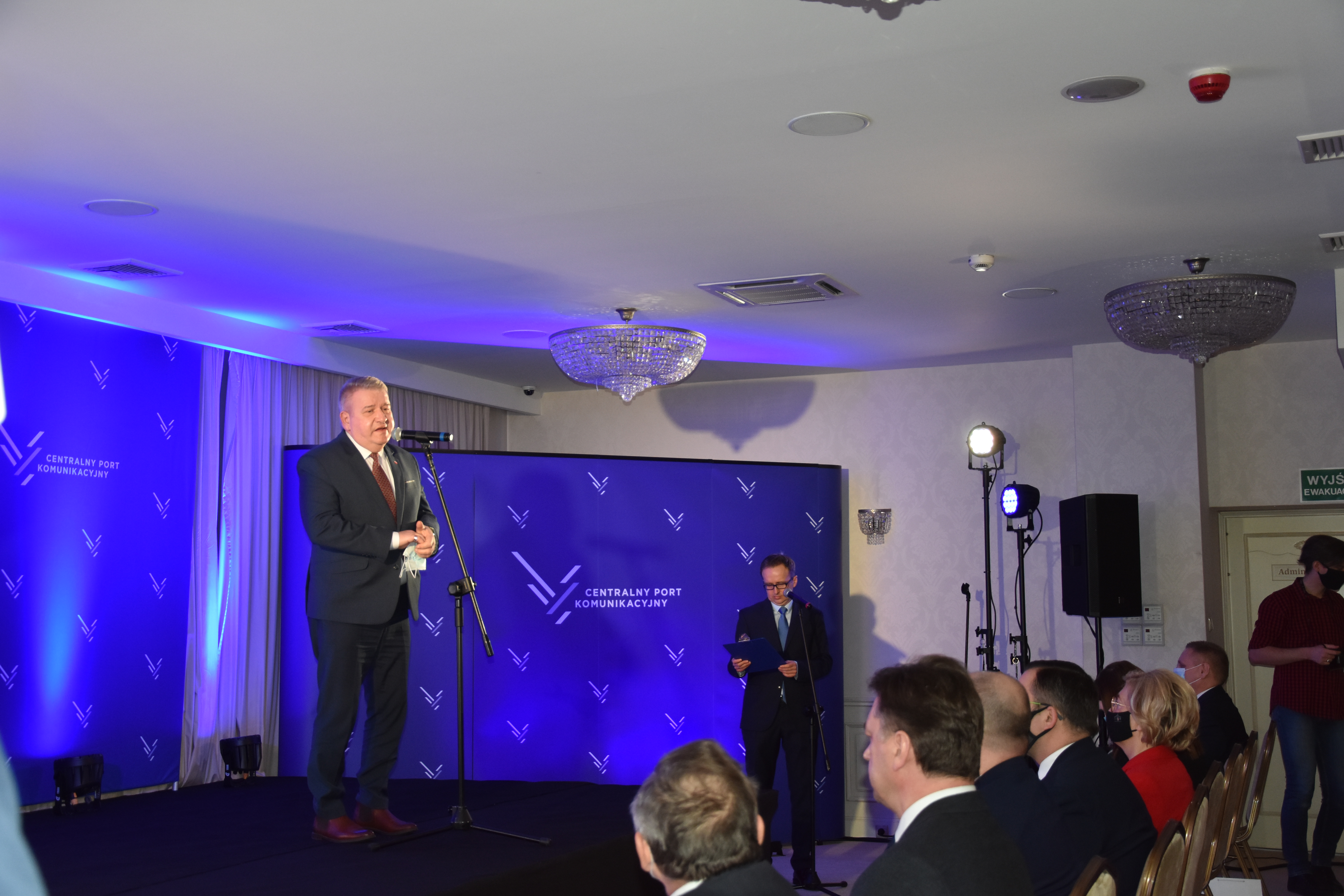 Podczas uroczystości Rzecznik Centralnego Portu Komunikacyjnego Konrad Majszyk przywitał gości, a następnie zostały wygłoszone okolicznościowe przemówienia.