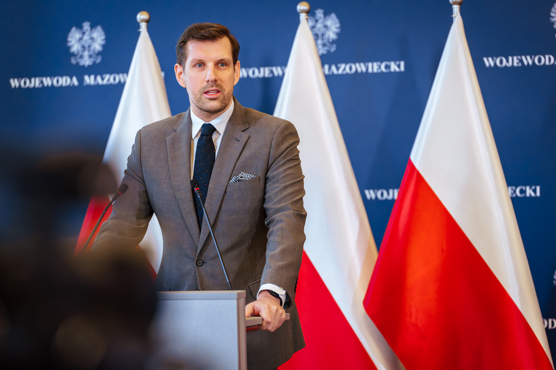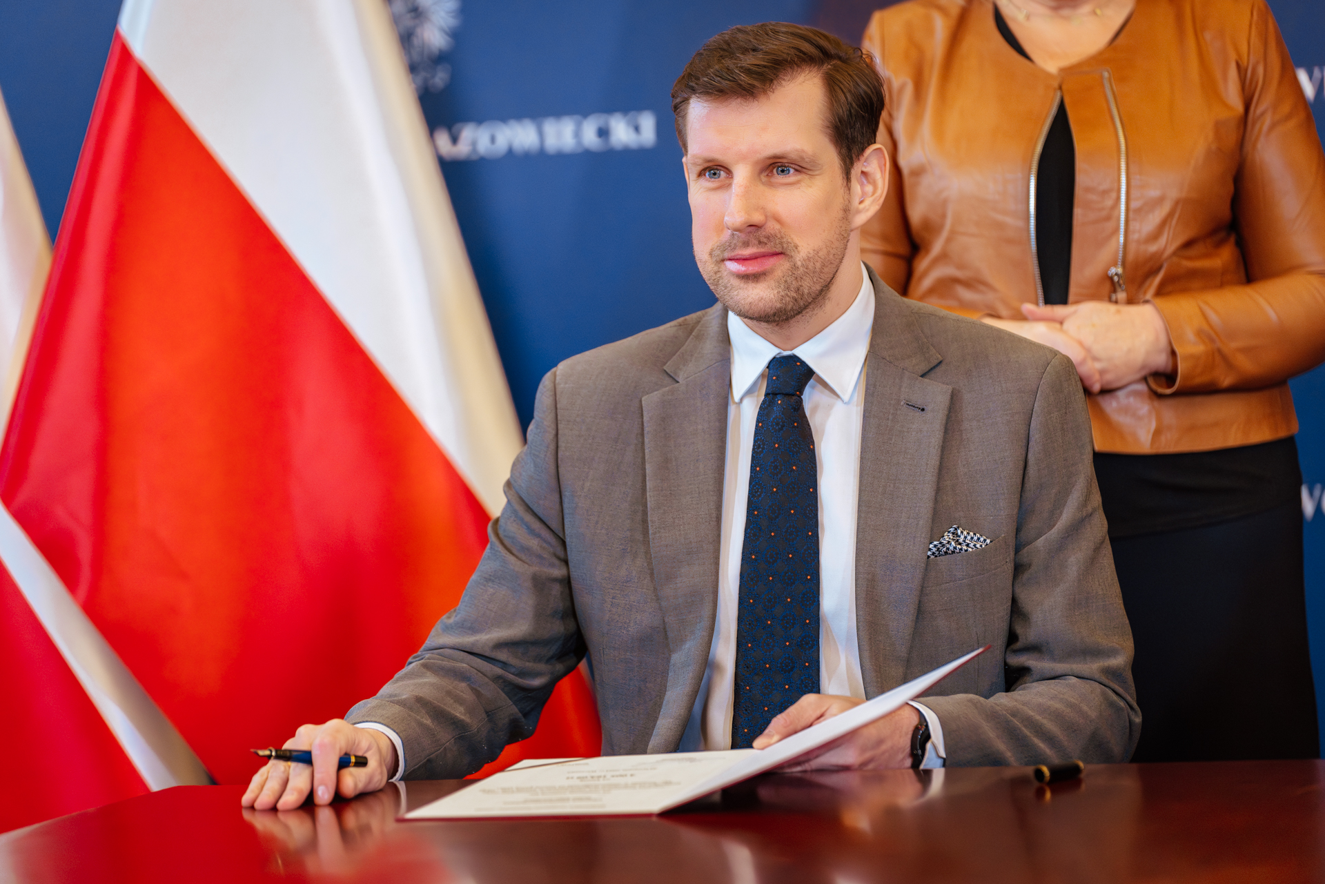 – Myślę, że wszystkich nas łączy misja uczynienia dróg w województwie mazowieckim bezpieczniejszymi. Musimy ze wszelkich sił dążyć do tego, aby było mniej wypadków, kolizji i zdarzeń niebezpiecznych. Z jednej strony odpowiada za to kultura naszego poruszania się po drodze i przestrzeganie przepisów, ale z drugiej strony, aby wymagać tego od wszystkich użytkowników ruchu, musimy przemieszczać się po nowoczesnych, bezpiecznych, przebudowanych drogach. Dlatego po raz pierwszy w 2021 r. i sukcesywnie w 2023 wprowadzaliśmy do Rządowego Funduszu Rozwoju Dróg odpowiedni segment, który służy finansowaniu zwiększenia bezpieczeństwa na drogach powiatowych i gminnych województwa mazowieckiego. W tym roku to łącznie 75 mln zł na inwestycje w przejścia dla pieszych, w chodniki, w ścieżki rowerowe. Niestety, cały czas widzimy, że zdarzają się na naszych drogach wypadki, potrącenia, zdarzenia niebezpieczne. W roku 2023, licząc do 1 listopada, mieliśmy na przejściach dla pieszych w województwie aż 305 wypadków, z czego 24 osoby straciły życie. Naszą ambicją powinno być doprowadzenie tej statystyki do zera, aby przechodzenie przez przejście dla pieszych było bezpieczne, aby każda osoba: dziecko, osoba starsza, osoba niepełnosprawna, rowerzysta, każdy kto jest użytkownikiem drogi, czuł się bezpiecznie. Dzisiaj podpisujemy umowy na 49 mln zł dofinansowania. Zachęcam do składania wniosków w latach przyszłych, bo Rządowy Fundusz Rozwoju Dróg nie kończy się, będzie funkcjonował dalej. W tym miejscu chciałbym Państwu bardzo podziękować za zrozumienie, jak kwestia bezpieczeństwa jest ważna. – powiedział Wojewoda Mazowiecki Tobiasz Bocheński.