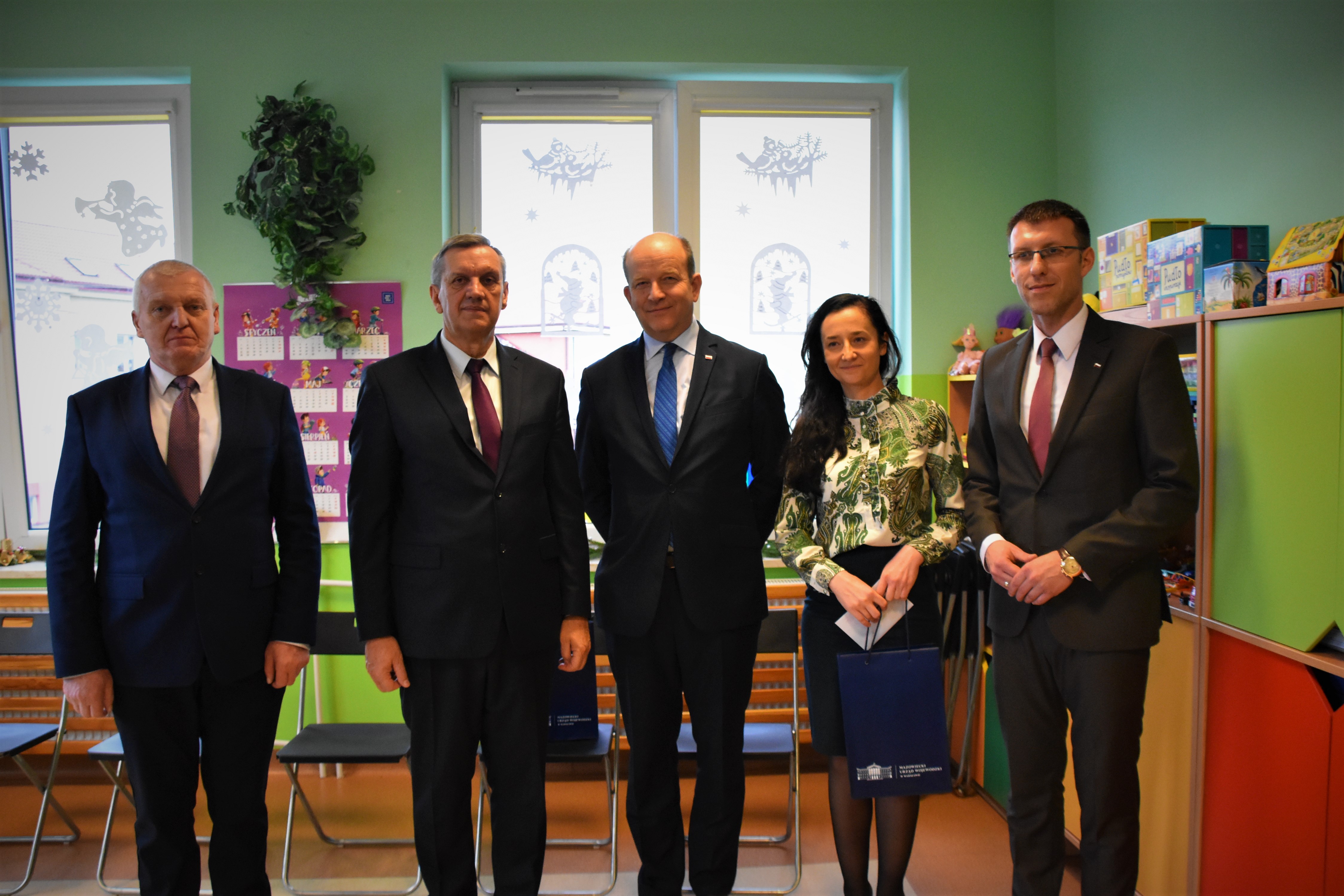 Konstanty Radziwiłł 10 grudnia br. wraz z Marcinem Grabowskim, Kierownikiem delegatury MUW w Ostrołęce i Edwinem Mierzejewskim, Wójtem gminy Troszyn odwiedził również podopiecznych samorządowego Żłobka i Przedszkola w Troszynie. Wojewoda Mazowiecki po zwiedzaniu placówki, spotkał się z wychowankami żłobka i przedszkola, towarzysząc dzieciom w zajęciach dydaktycznych oraz warsztatach bożonarodzeniowych. Na pamiątkę spotkania Wojewoda Mazowiecki wręczył dzieciom mikołajkowe prezenty.