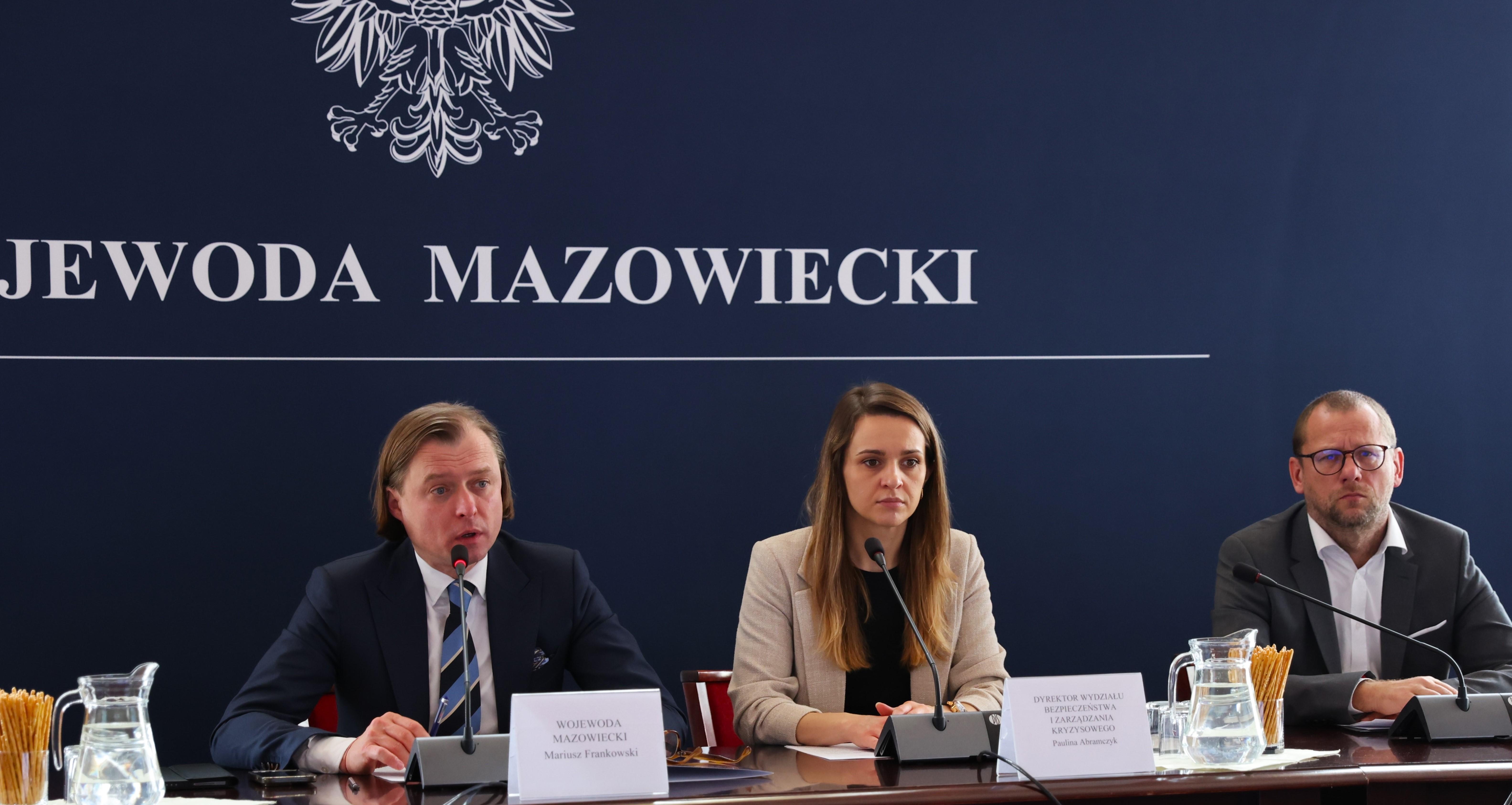Posiedzenie Mazowieckiego Wojewódzkiego Zespołu Zarządzania Kryzysowego otworzył Wojewoda Mazowiecki Mariusz Frankowski, który przywitał uczestników spotkania.