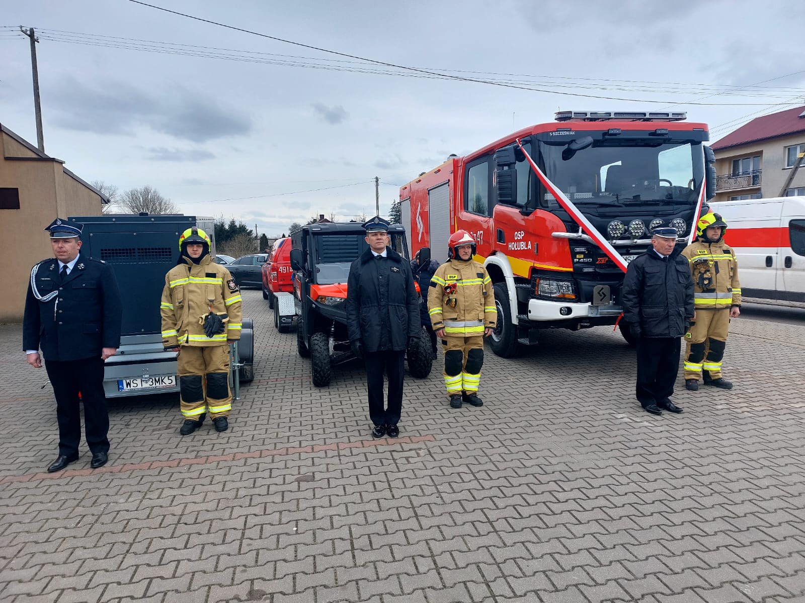 Uroczystość zainaugurowano złożeniem meldunku Zastępcy Mazowieckiego Komendanta Wojewódzkiego Państwowej Straży Pożarnej st. bryg. Rafałowi Zimochockiemu. Wprowadzono poczet sztandarowy jednostki Ochotniczej Straży Pożarnej w Hołubli oraz odegrano i odśpiewano hymn państwowy.