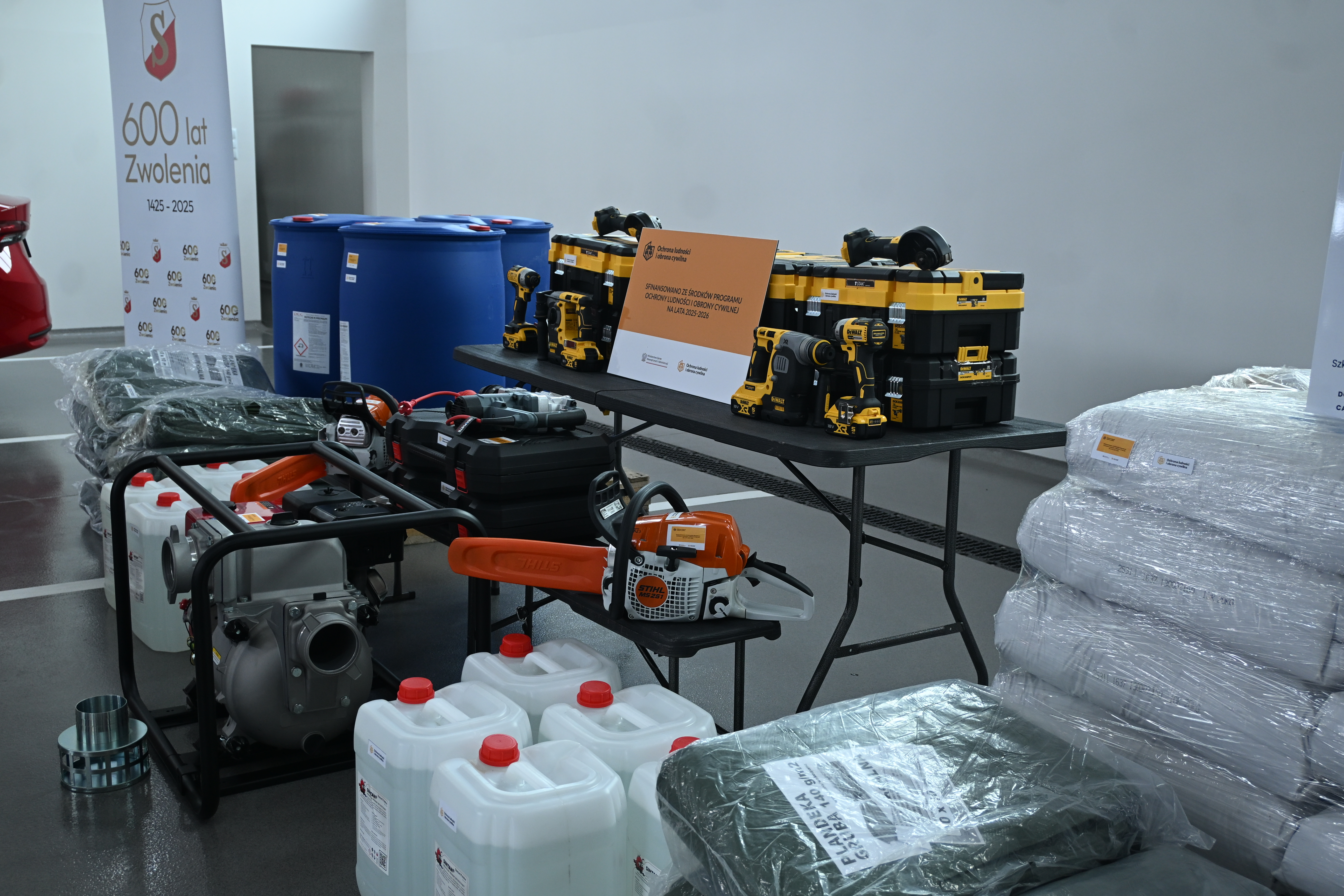 Podczas wizyty zaprezentowano także sprzęt zakupiony w ramach dofinansowania z rządowego Programu Ochrony Ludności i Obrony Cywilnej. Zakres obejmuje zarówno wyposażenie wykorzystywane przy akcjach ratowniczych i medycznych, jak i sprzęt przydatny w sytuacjach zagrożeń, w tym powodziowych. Uzupełnieniem tych działań jest przygotowywana infrastruktura. Obecnie trwa przystosowanie budynku przy ul. Ludowej w Zwoleniu, który docelowo będzie pełnił rolę zaplecza magazynowego dla tego typu wyposażenia.