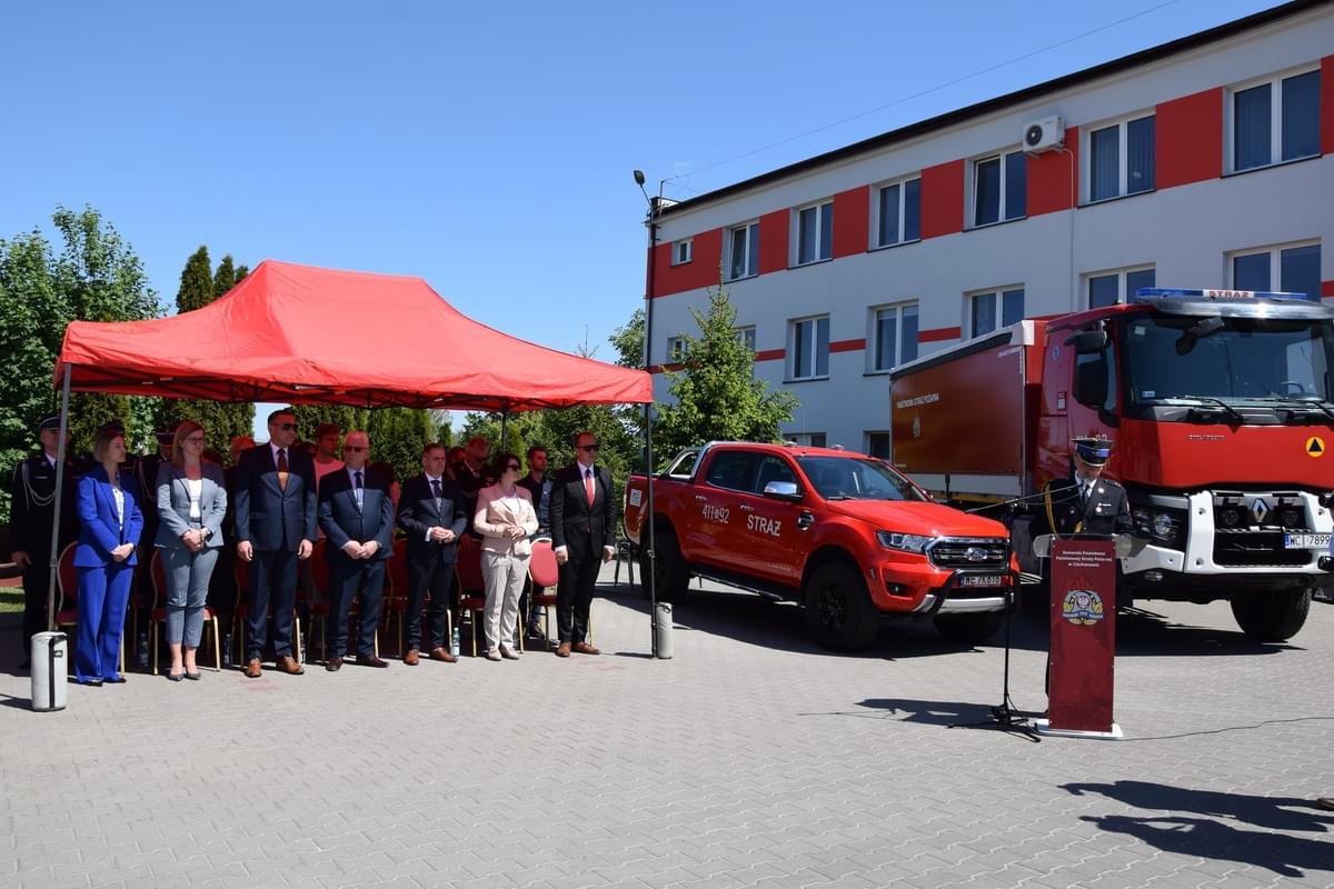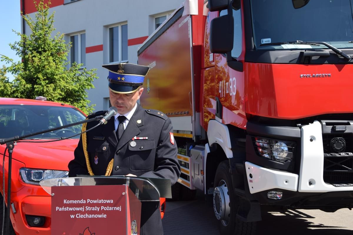 Uroczystość była również okazją do uroczystego przekazania i poświęcenia nowego ciężkiego samochodu ratowniczo-gaśniczego na rzecz Komendy Powiatowej Państwowej Straży Pożarnej w Ciechanowie. Starosta Ciechanowski Jan Andrzej Kaluszkiewicz za działalność na rzecz poprawy stanu ochrony przeciwpożarowej powiatu ciechanowskiego wyróżnił 5 funkcjonariuszy pamiątkowym grawertonem oraz listem gratulacyjnym.