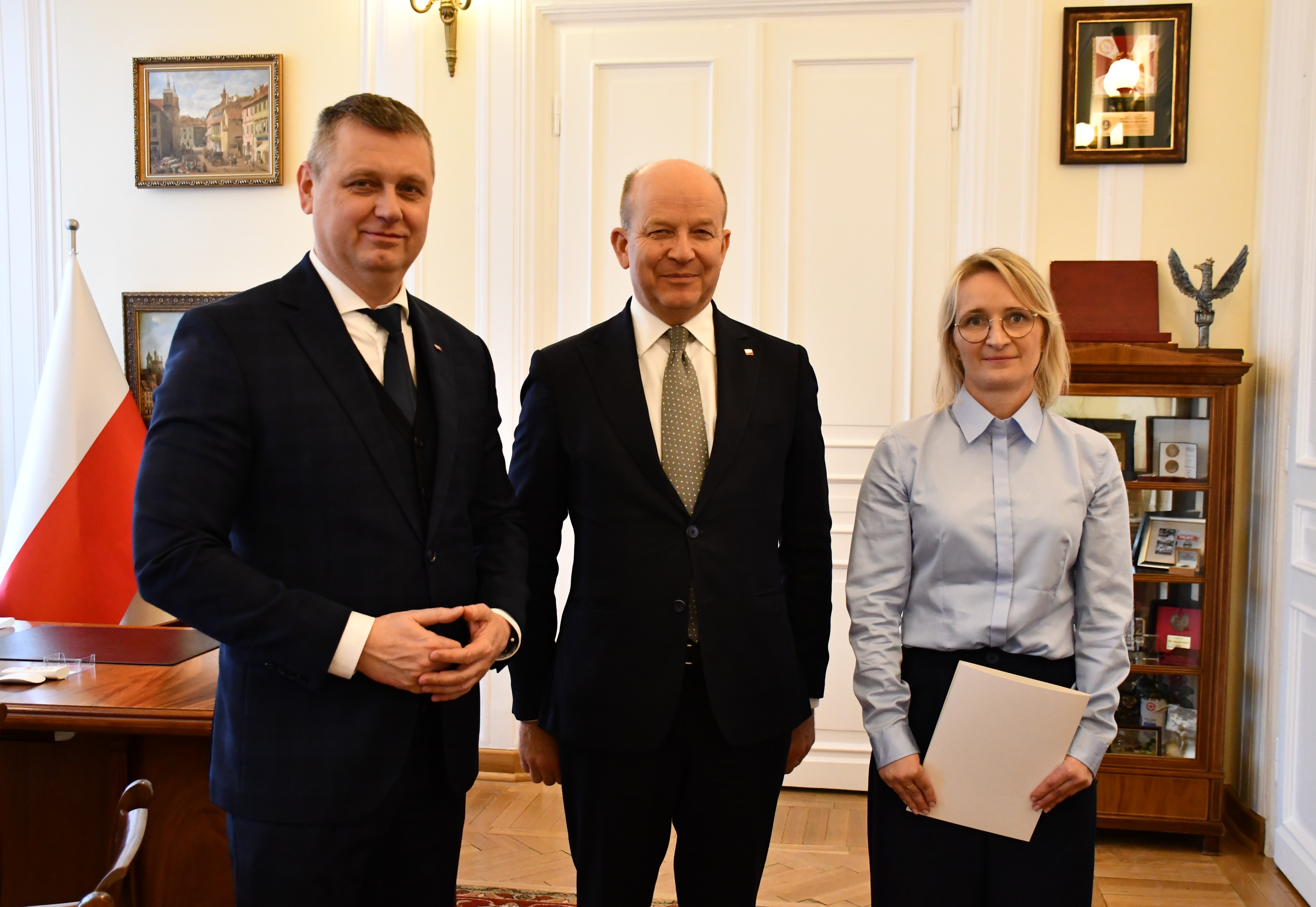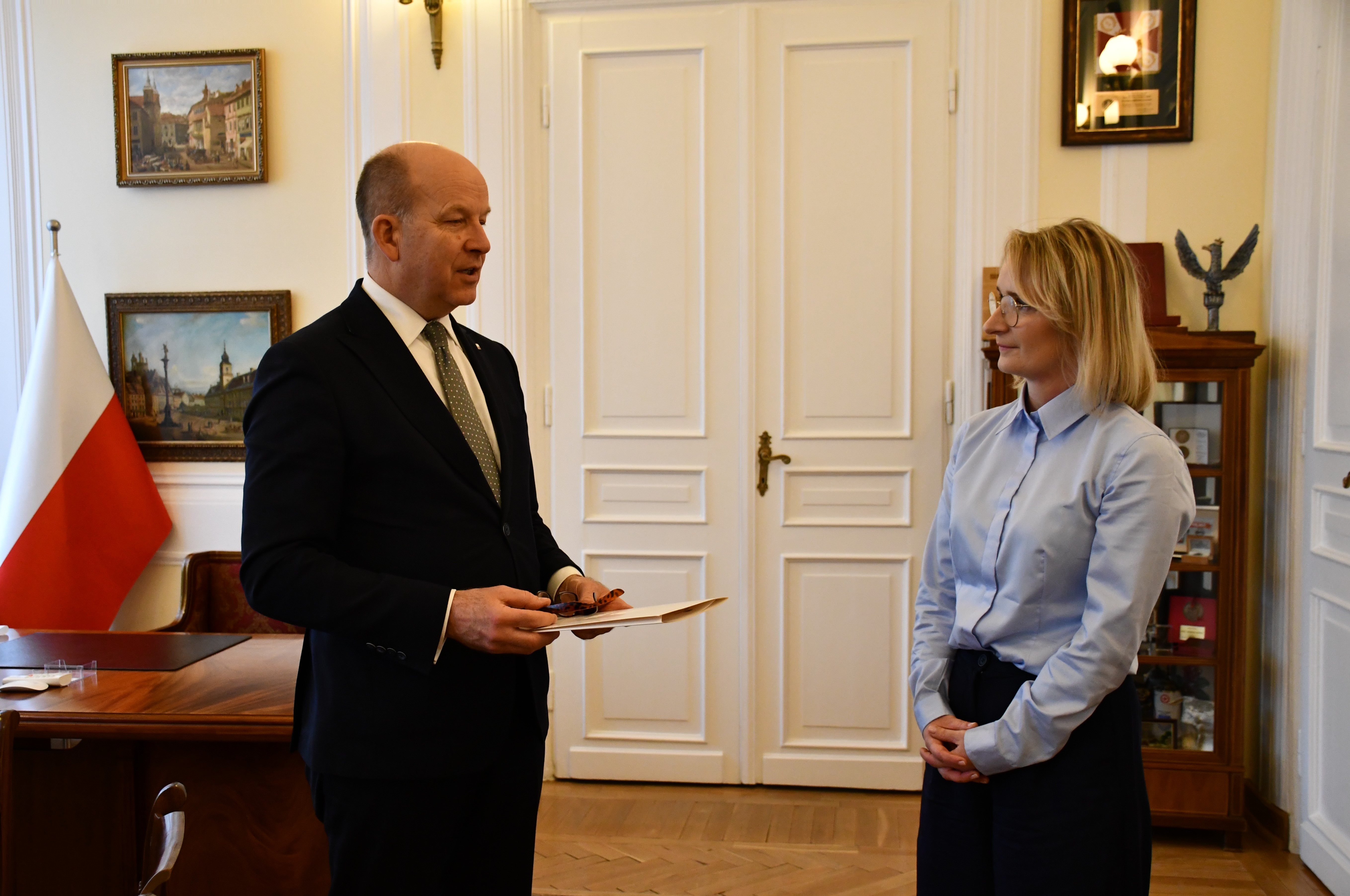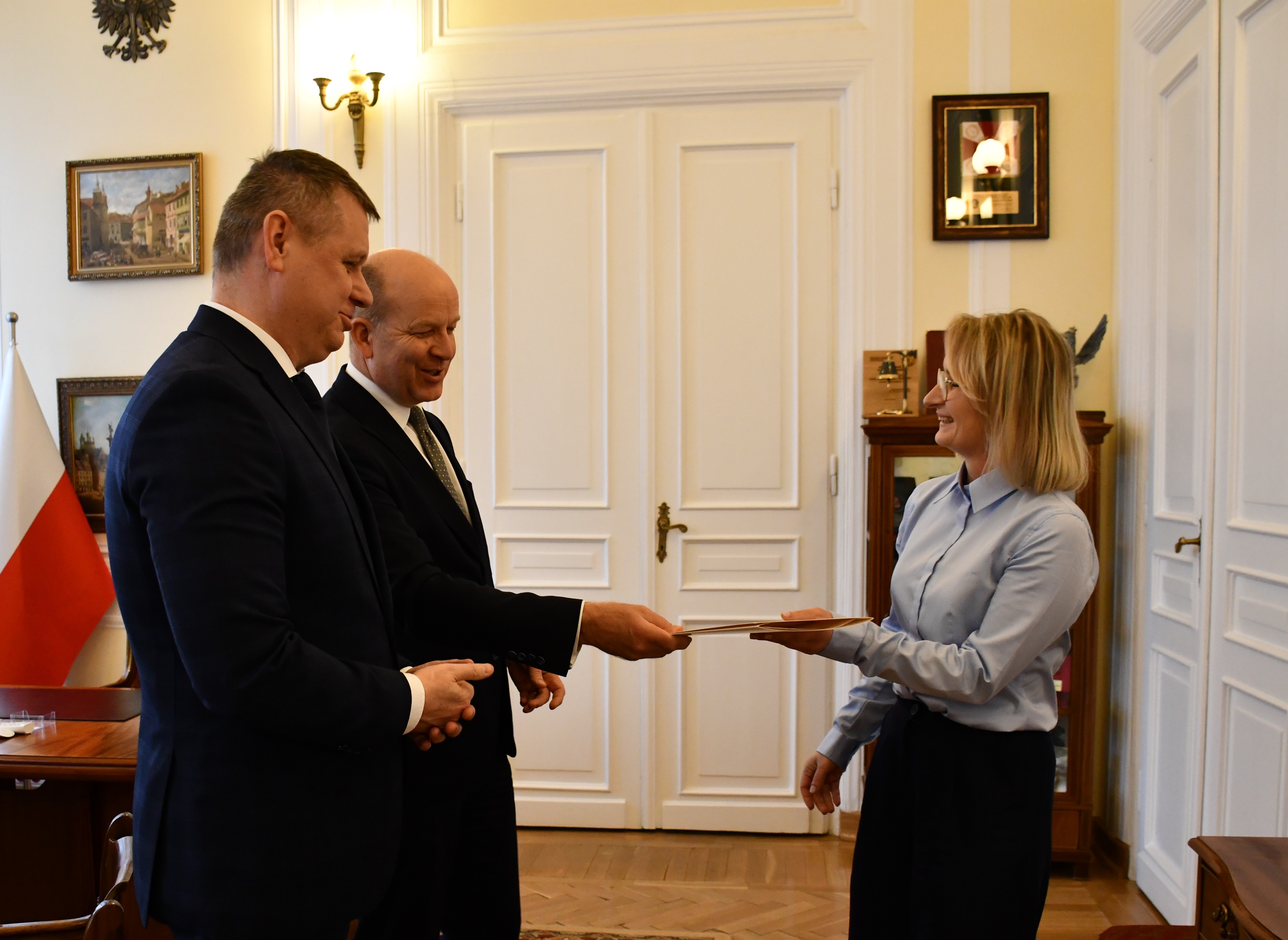 Wojewoda Mazowiecki Konstanty Radziwiłł, w piątek 3 marca br., wręczył powołanie na Mazowieckiego Wojewódzkiego Inspektora Jakości Handlowej Artykułów Rolno-Spożywczych Pani Ewie Piszczek. W spotkaniu uczestniczyli również Wicewojewoda Mazowiecki Artur Standowicz oraz Dyrektor Biura Wojewody Zuzanna Zacharewicz.