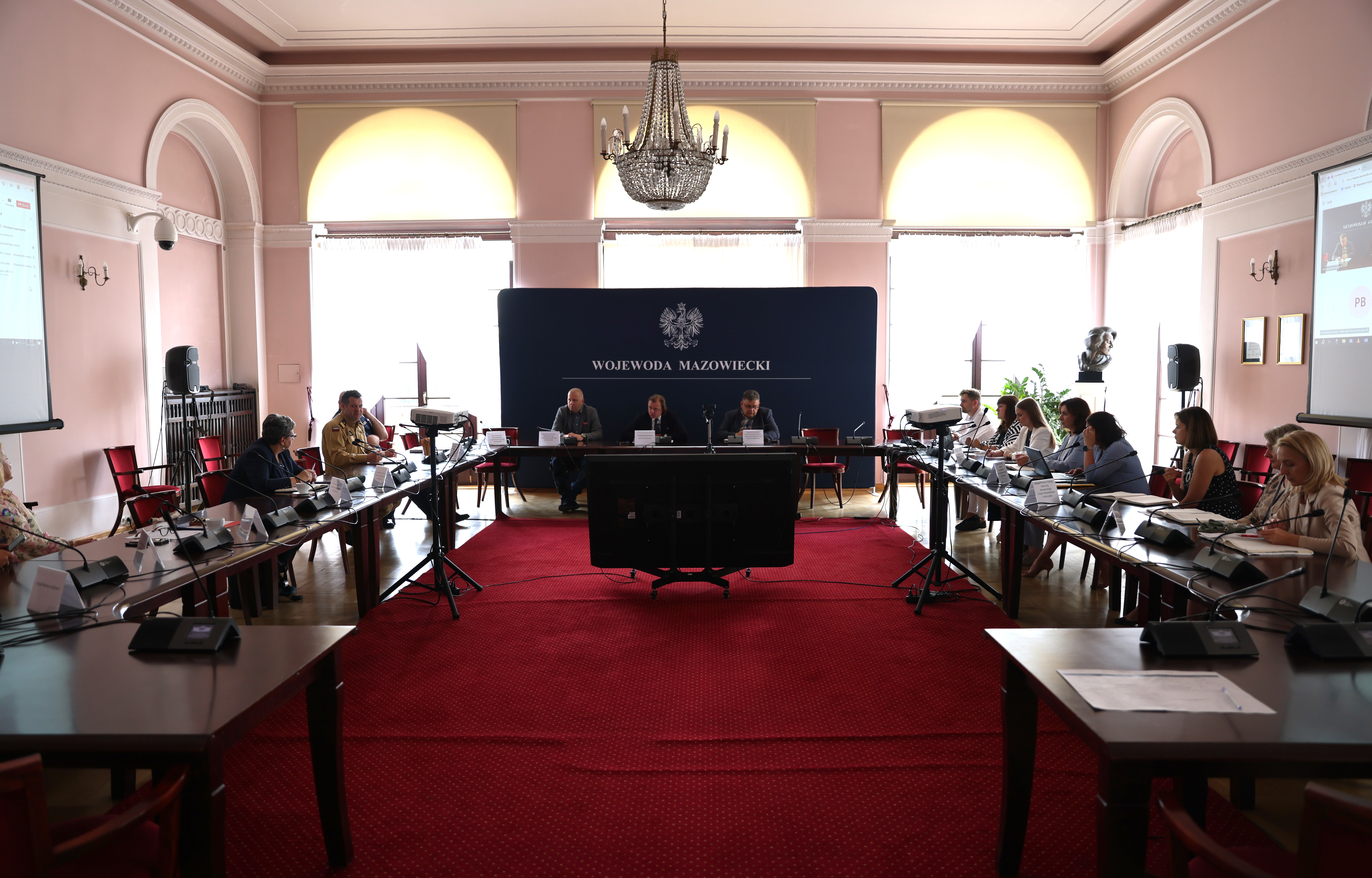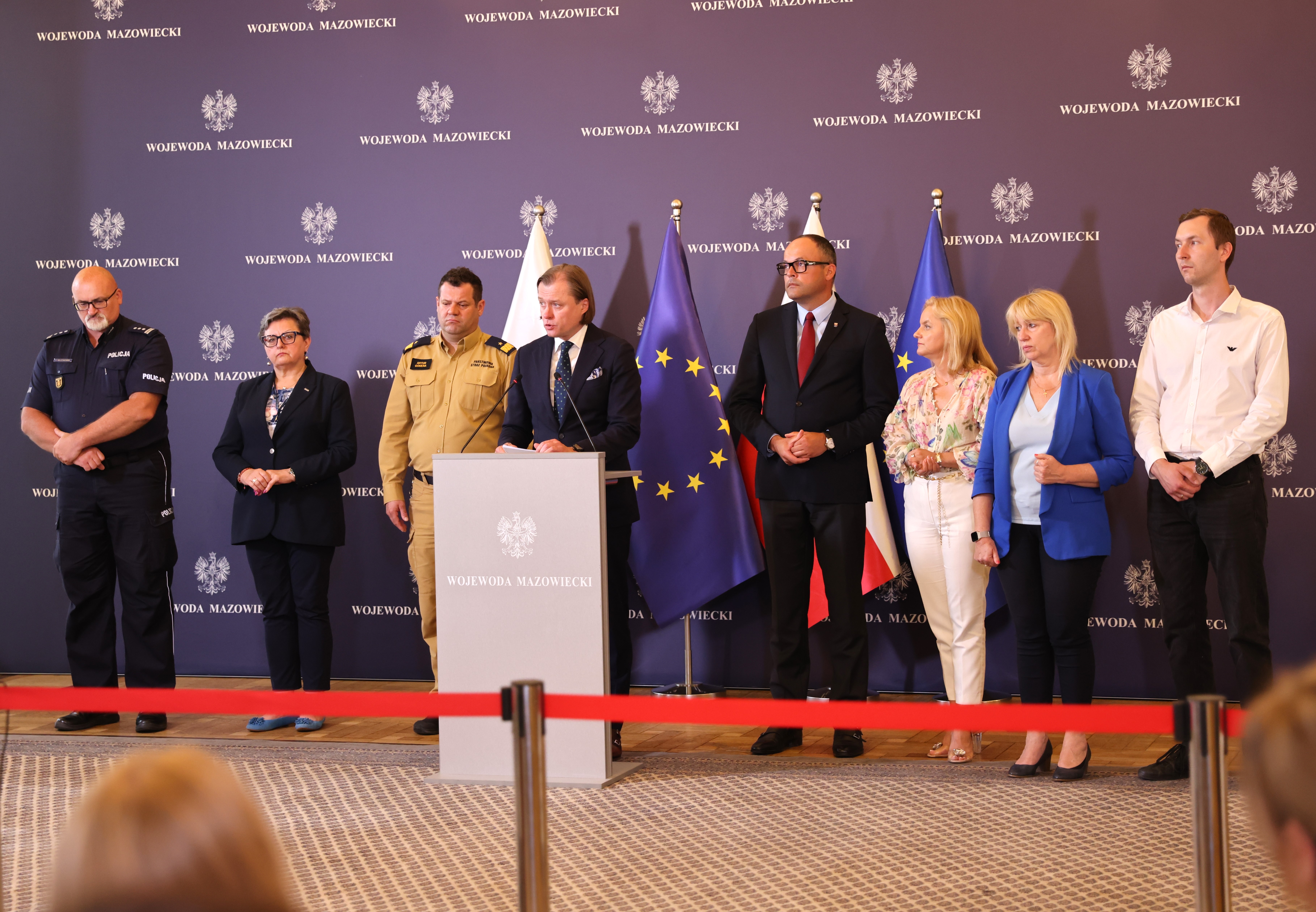 Dotychczasowe działania służb podczas nadzwyczajnego posiedzenia Mazowieckiego Wojewódzkiego Zespołu Zarządzania Kryzysowego podsumowali: Mazowiecki Komendant Wojewódzki Państwowej Straży Pożarnej nadbrygadier Artur Gonera, Komendant Stołeczny Policji inspektor Dariusz Walichnowski, starosta wołomiński Arkadiusz Werelich, burmistrz miasta Ząbki Małgorzata Zyśk, Zastępca Dowódcy 6 Mazowieckiej Brygady Obrony Terytorialnej podpułkownik Arkadiusz Kawka, Mazowiecki Wojewódzki Inspektor Nadzoru Budowlanego Marzena Dębowska, Mazowiecki Kurator Oświaty Wioletta Krzyżanowska, Powiatowy Inspektor Nadzoru Budowlanego w Wołominie Paweł Mędrzycki, dyrektorzy wydziałów i biur Mazowieckiego Urzędu Wojewódzkiego w Warszawie.